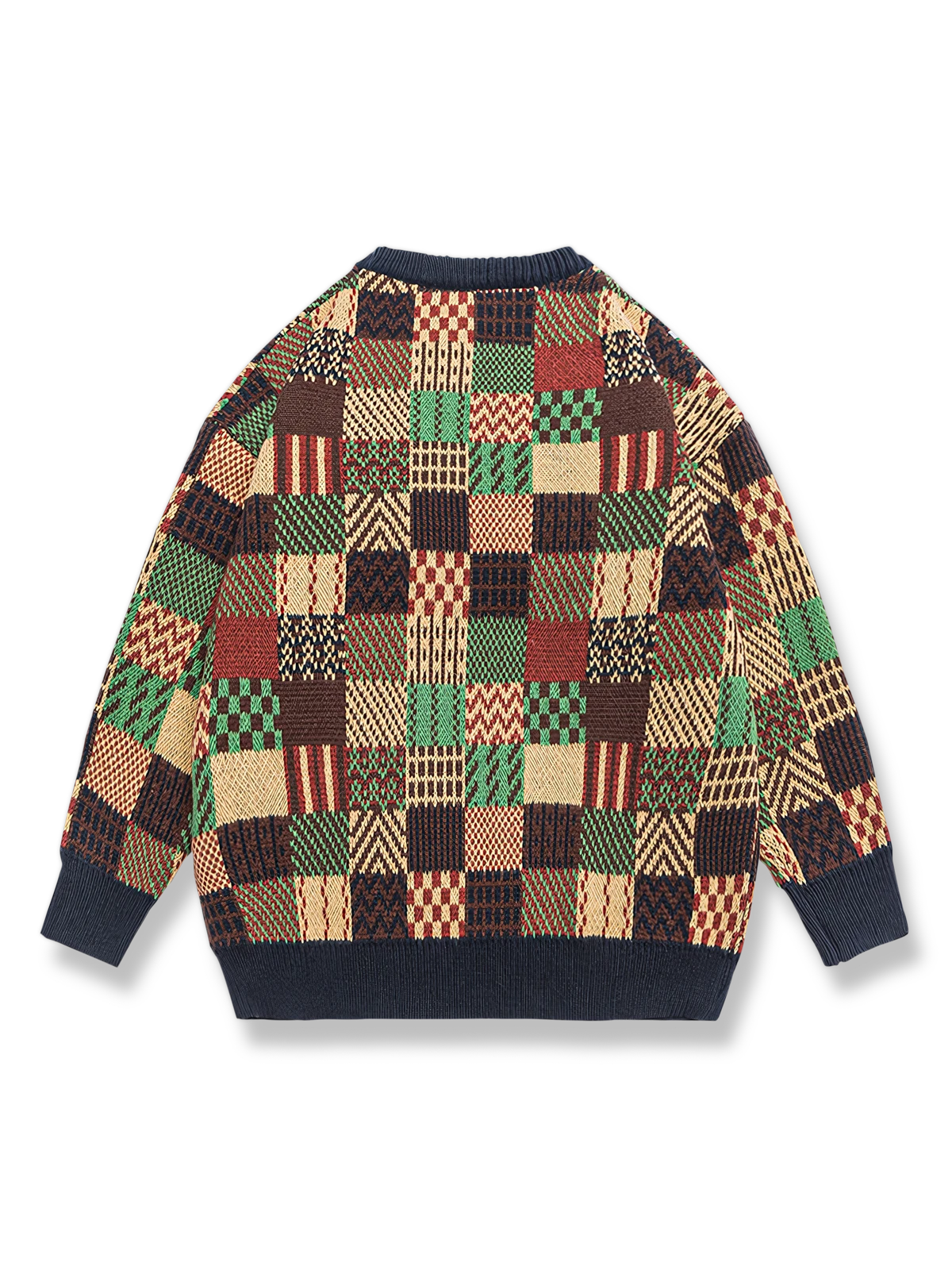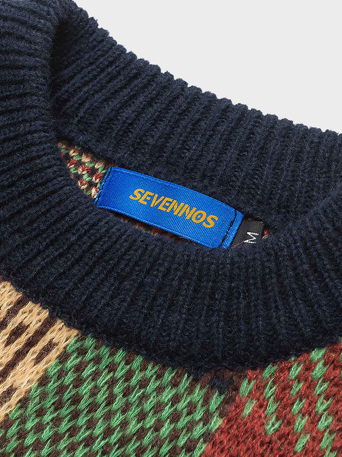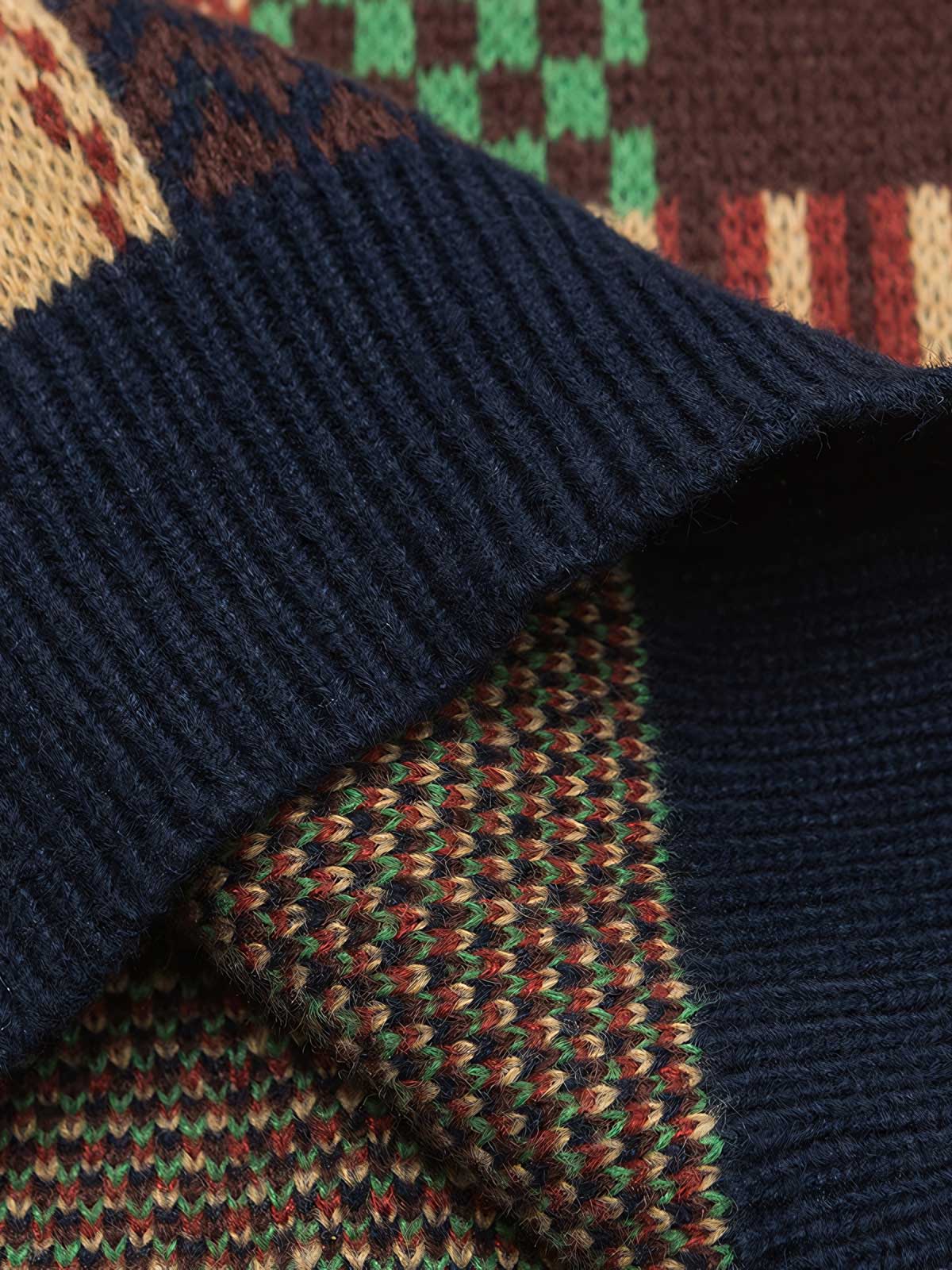 このカラーブロックチェック柄のクルーネックセーターは、レトロスタイルのデザインを採用しています。20世紀半ばに流行した幾何学的美学を表現するチェック柄が特徴です。伝統的なニット技術と現代の流行のカラーブロッキングを組み合わせ、ファッションの復古と新旧の融合を体現しています。