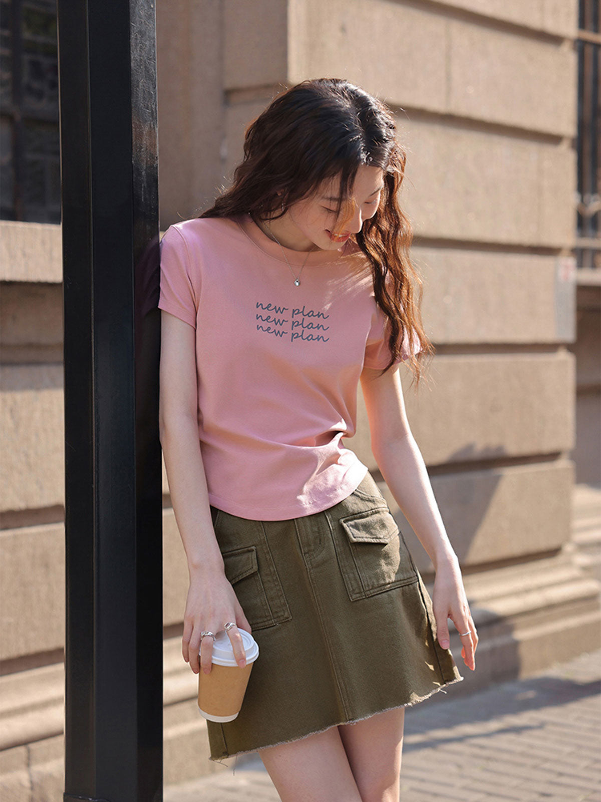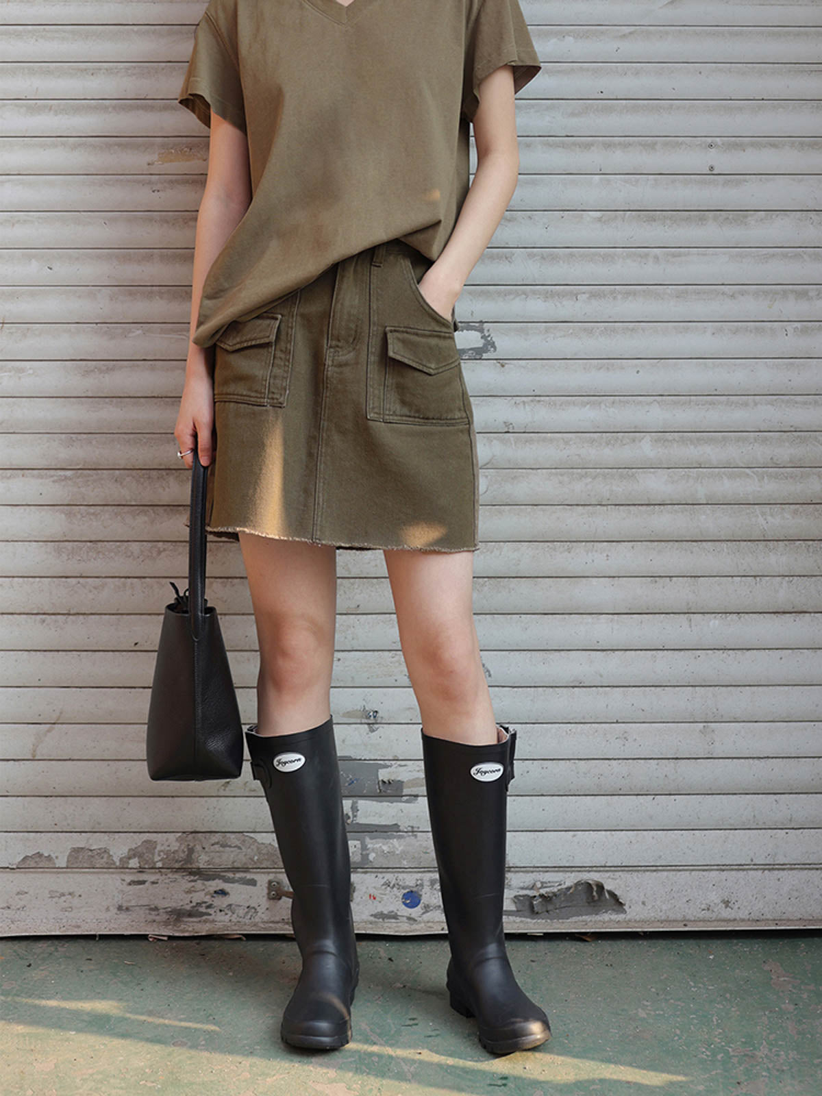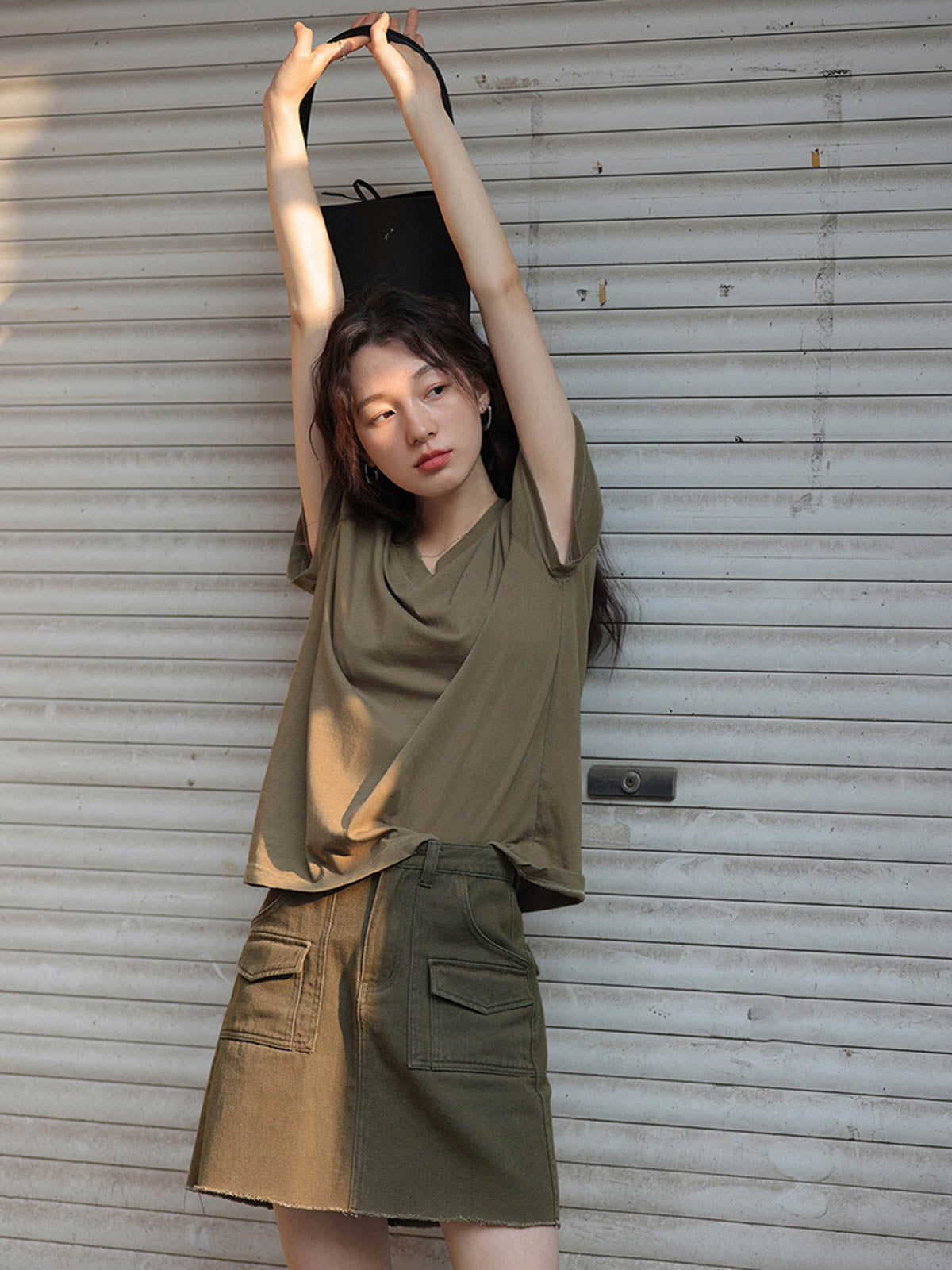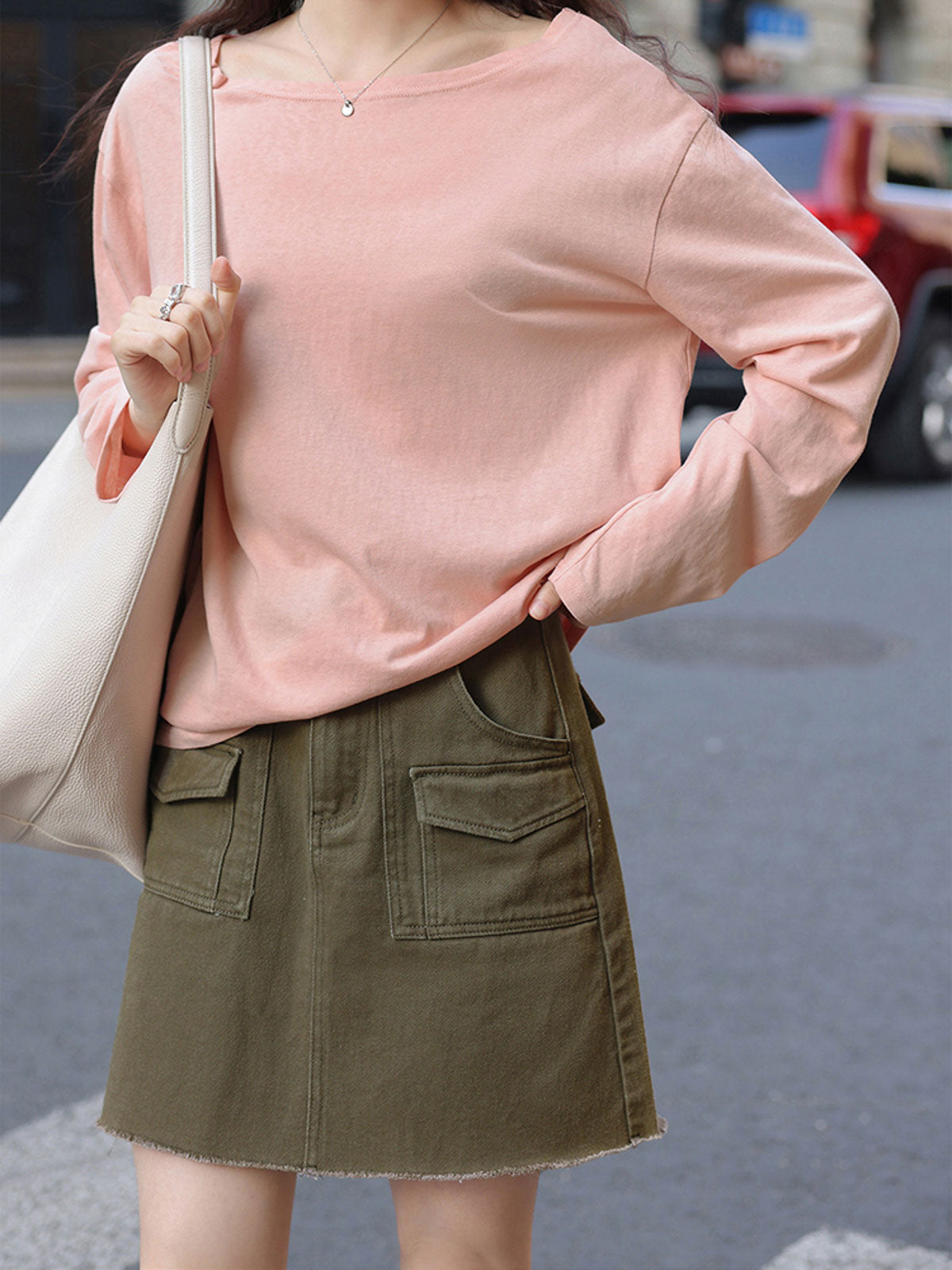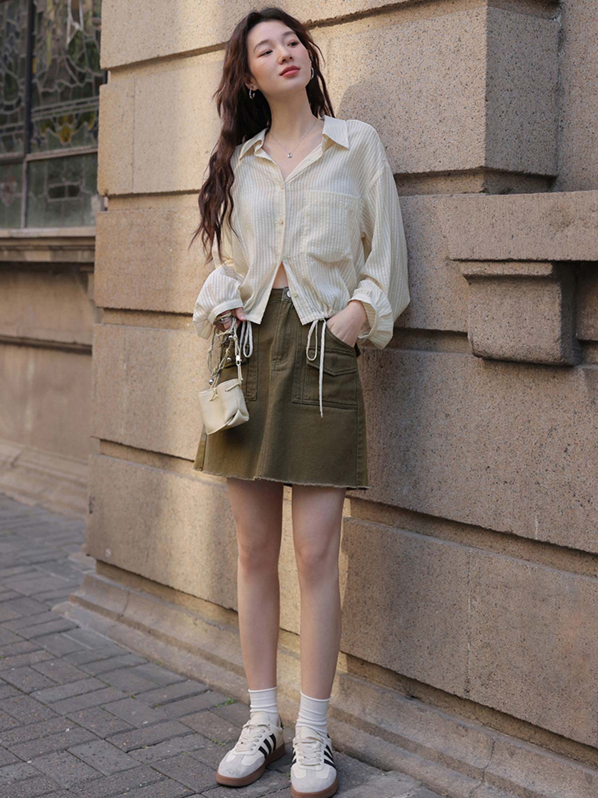 おしゃれなヴィンテージワークポケットデニムミニスカート。快適でどんなスタイルにも合わせやすい。