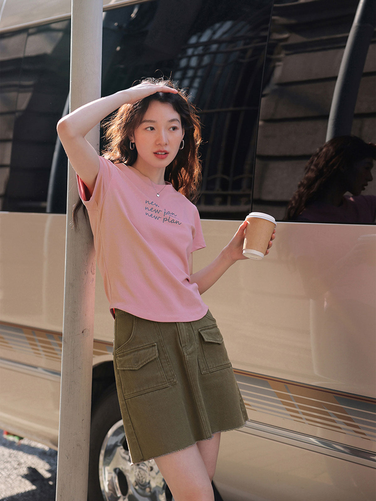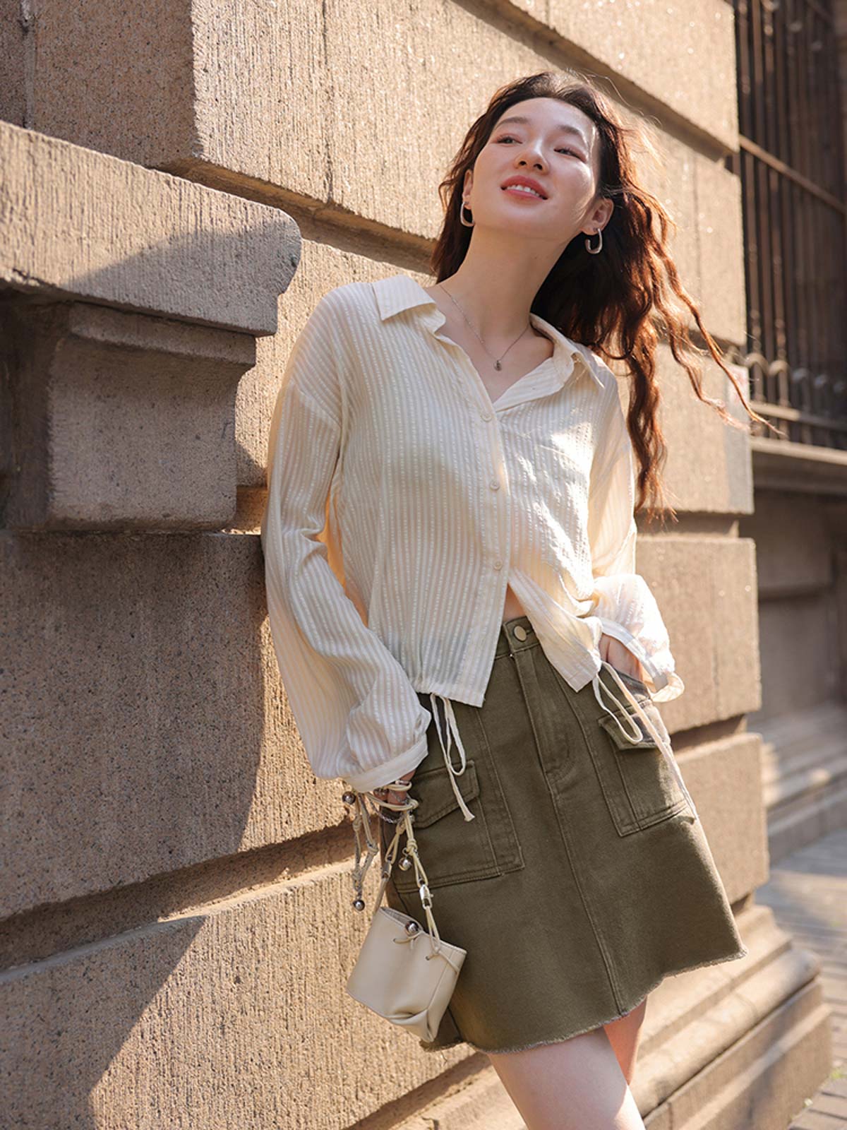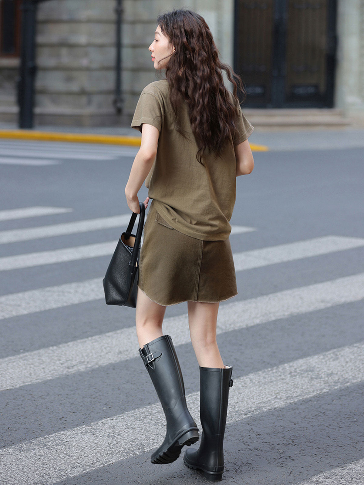 このデニムミニスカートはヴィンテージデザインを採用しており、ブラウンカラーが濃厚なヴィンテージ感を演出します。ハイウエストのAラインシルエットがウエストラインを強調し、スタイルを整えます。ゆったりとしたフィット感で快適な着心地を提供し、立体的なカットがヒップラインをスリムに見せます。両サイドにはワークスタイルの斜めポケットがデザインされ、スタイルにアクセントを加えます。背面には装飾的なフラップポケットがあり、ヘムはフリンジカットでカジュアルな雰囲気をプラス。95%コットンと5%ポリエステルの快適でしっかりとしたデニム素材を使用しており、耐久性とスタイルの幅広さを兼ね備えています。カラフルなトップスやカジュアルな装いと合わせて、ファッショナブルなスタイルを楽しめます。