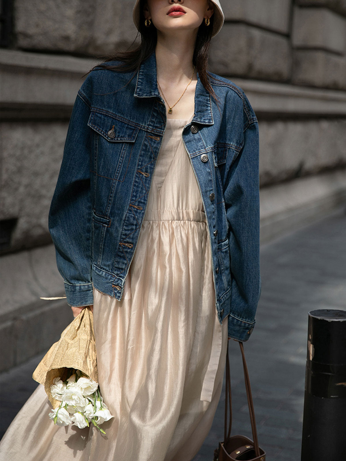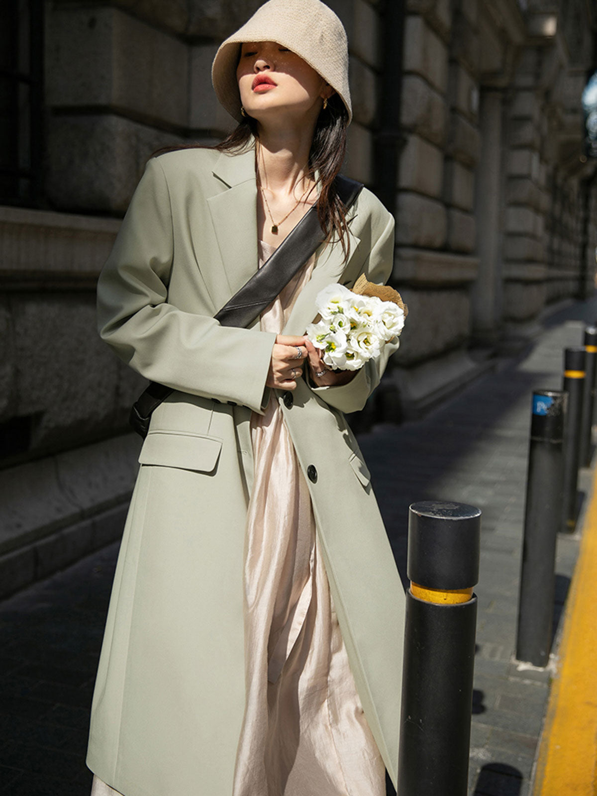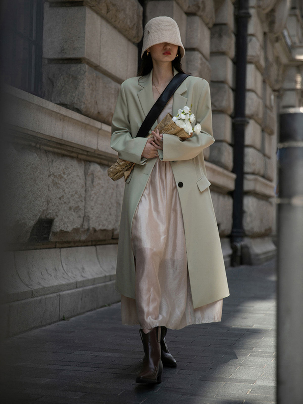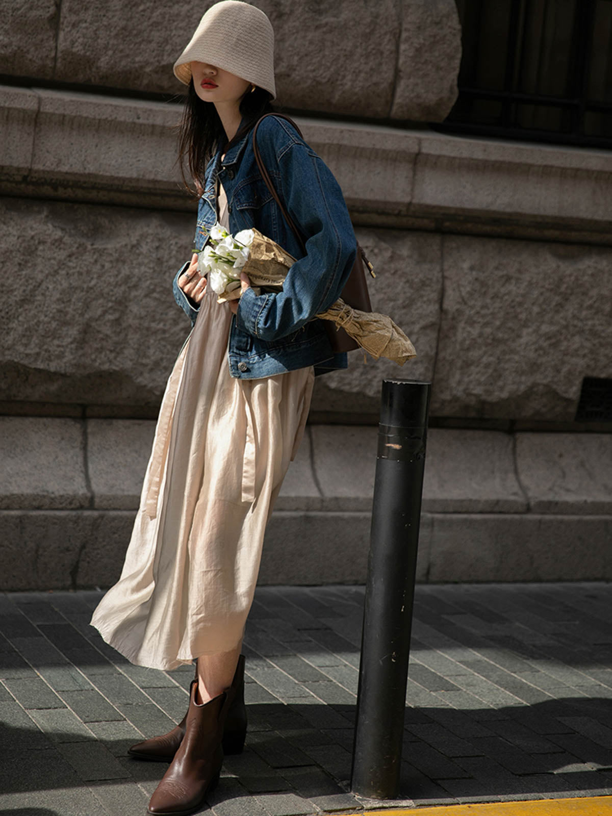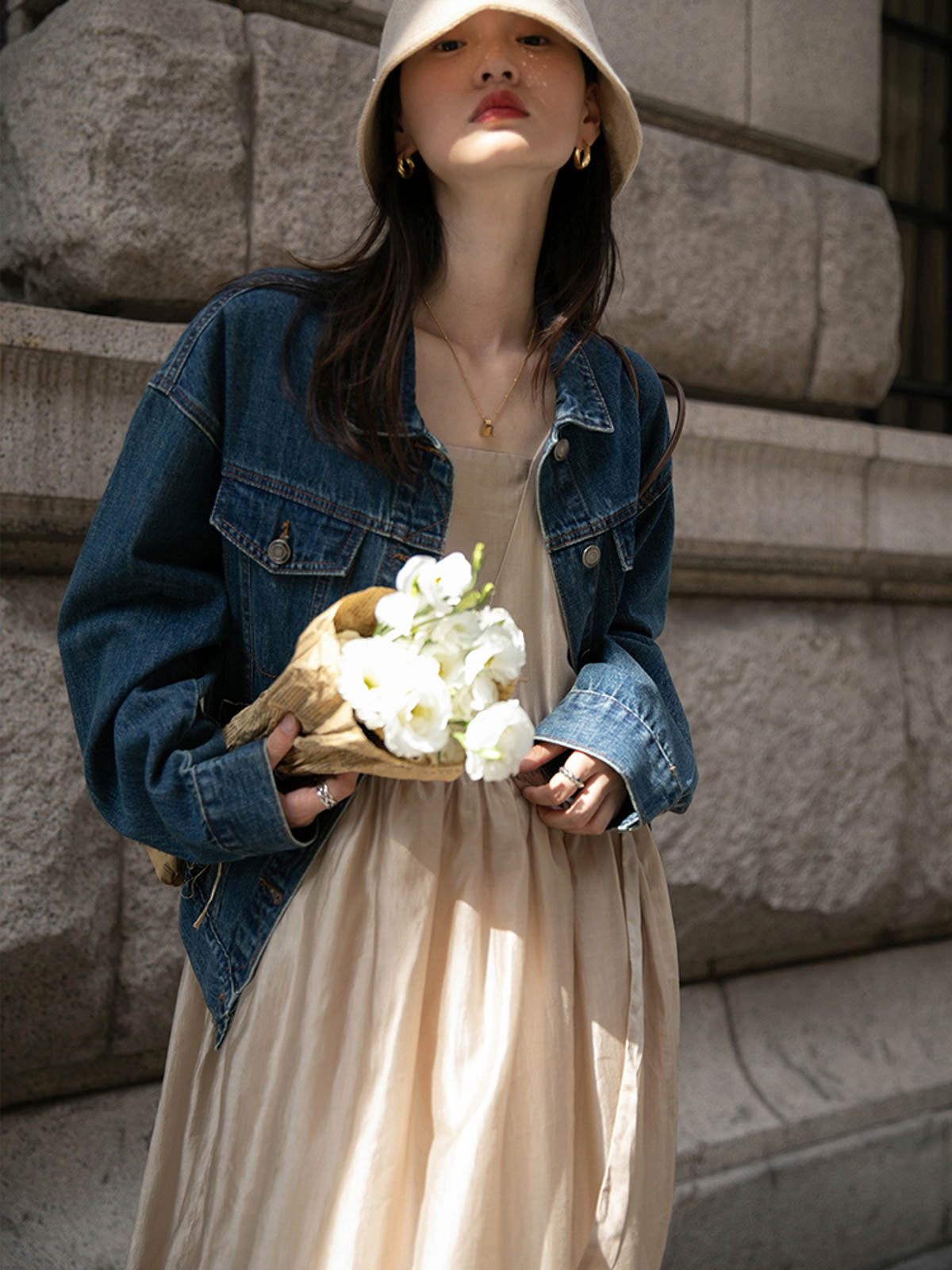 このドレスは、柔らかく穏やかなヌードピンクの色調が特徴で、静かで上品な雰囲気を作り出します。胸元のトライアングルパッチがトラピーズネックラインを形成し、独特のデザインが視覚的な深みを加えます。ウエスト部分にはシャーリングディテールがあり、純色に豊かな視覚効果を与え、前後にタイの装飾が施されています。これによりウエストを引き締め、サイドで結ぶことで可愛らしくスリムなシルエットを実現します。素材は84%テンセルと16%ポリエステルの混紡で、ウォッシュ加工を施した後、柔らかくふんわりとした手触りになり、快適で通気性に優れています。光の下で微細な光沢感を放ち、重くならず、夏には単独で、春秋にはジャケットと合わせてエレガントなスタイルを楽しむことができます。