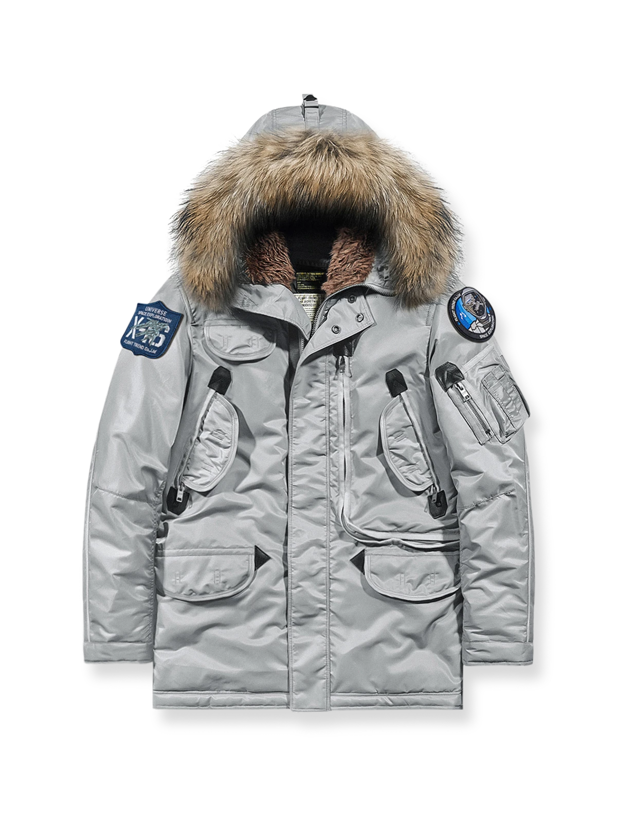 宇宙飛行士や宇宙ステーションをモチーフにした刺繍と、取り外し可能なワッペンが特徴のN-3Bフライトジャケット。洗練されたデザインと機能性を兼ね備え、宇宙の要素が織り交ぜられた刺繍がユニークで注目を集めます。