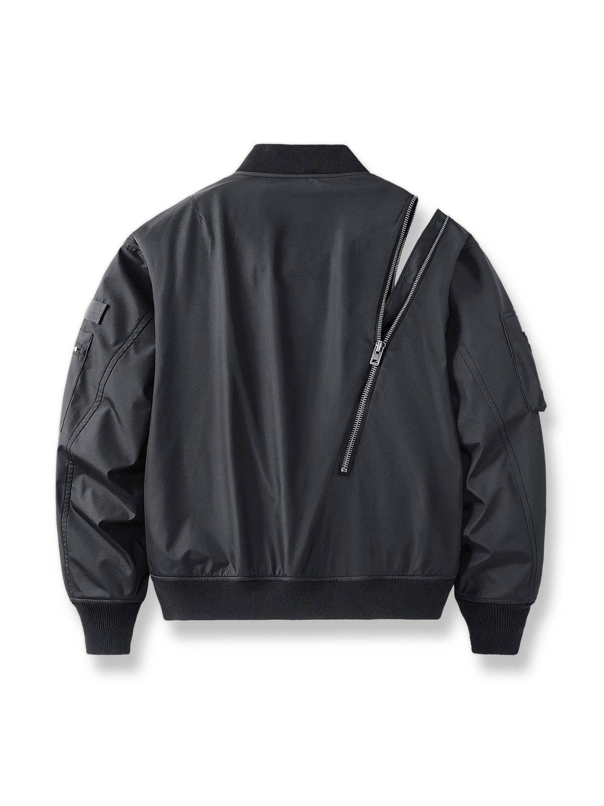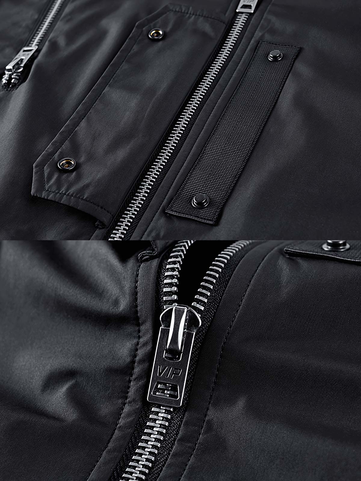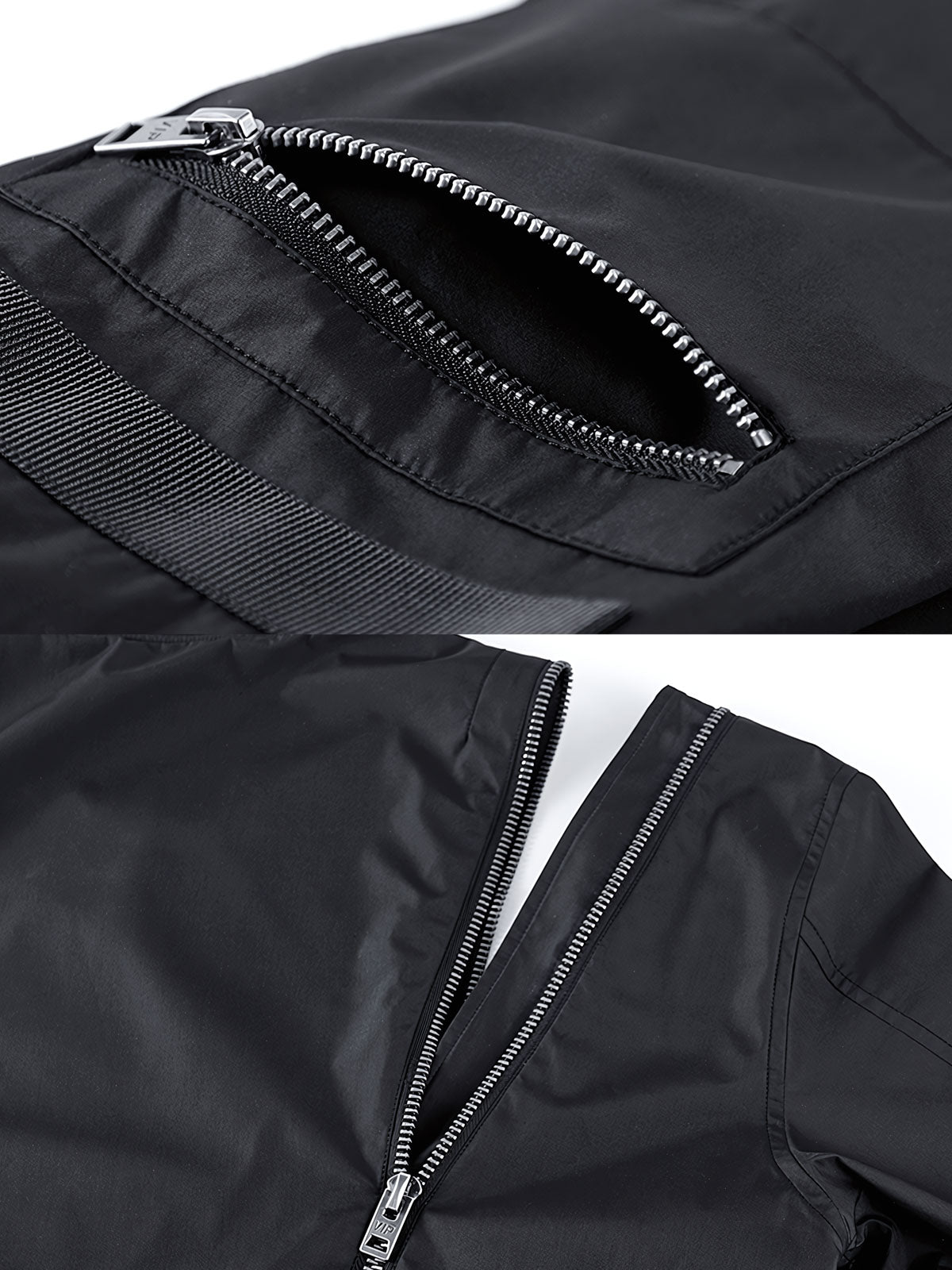 複数のジッパーポケットと貼りポケットを備えており、機能性と実用性を強調しています。耐摩耗性と防風性に優れた合成素材を使用しており、さまざまな屋外や都市環境に適応し、実用的かつスタイリッシュです。