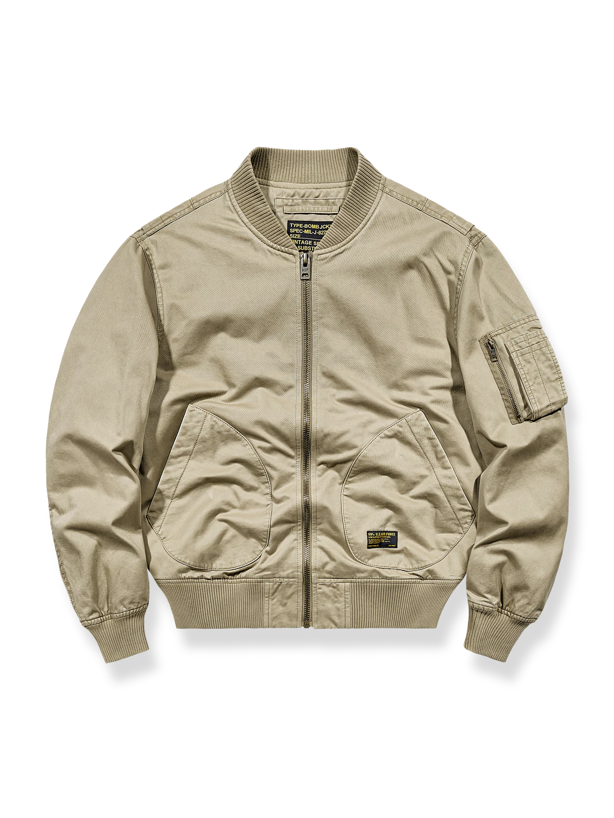 MA-1パイロットジャケットは20世紀50年代に起源を持ち、アメリカ空軍と海軍のパイロットや地上スタッフの標準制服として設計されました。このジャケットは、飛行中の暖かさと快適さを提供し、十分な動きの自由を確保する目的で最初に作られました。そのクラシックなデザインは数十年にわたって進化し、軍用服装の象徴となるとともに、ファッション界にも浸透し、ストリートファッションやカジュアルウェアの重要な要素になりました。