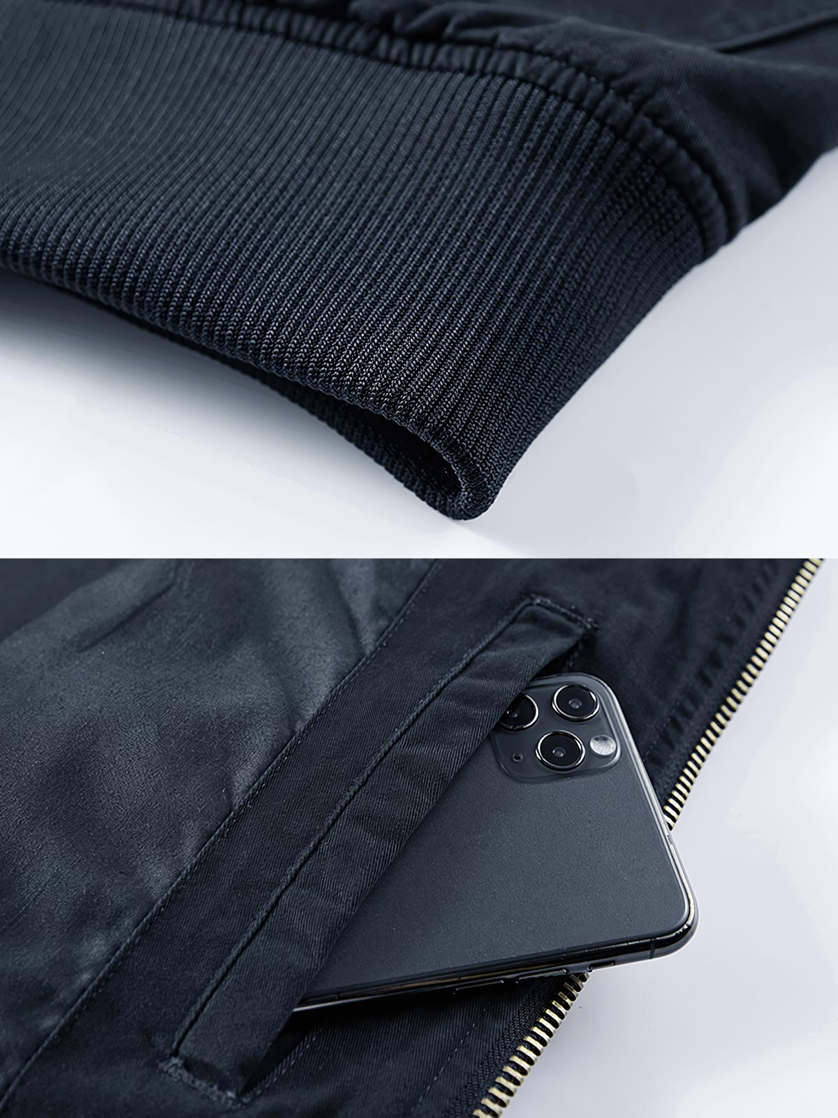 ジャケットの素材は高密度ナイロンを使用し、耐摩耗性があり、ある程度の防水性能を備えており、不安定な屋外天候に対応しています。伝統的なMA-1ジャケットの「ペンポケット」は袖に残されており、実用性を高めています。また、ジャケットの内側には追加の収納スペースを提供するポケットがあり、ディテールのコントラストカラーのラインはファッション性を強化しています。