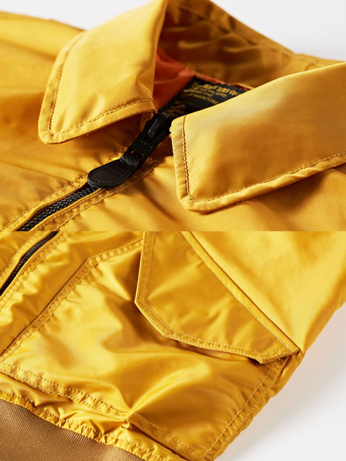 CWU-45/Pフライトジャケットは、MA-1フライトジャケットのアップグレード版であり、軍用服から現代化への移行を反映しています。袖口や裾のリブデザインなどの細部は保温性を強化しています。実用的なポケットデザインは追加の収納スペースを提供するだけでなく、全体の実用性も高めています。また、襟のフリップアップデザインはスタイルの変化を加え、着用者により精悍な印象を与えます。