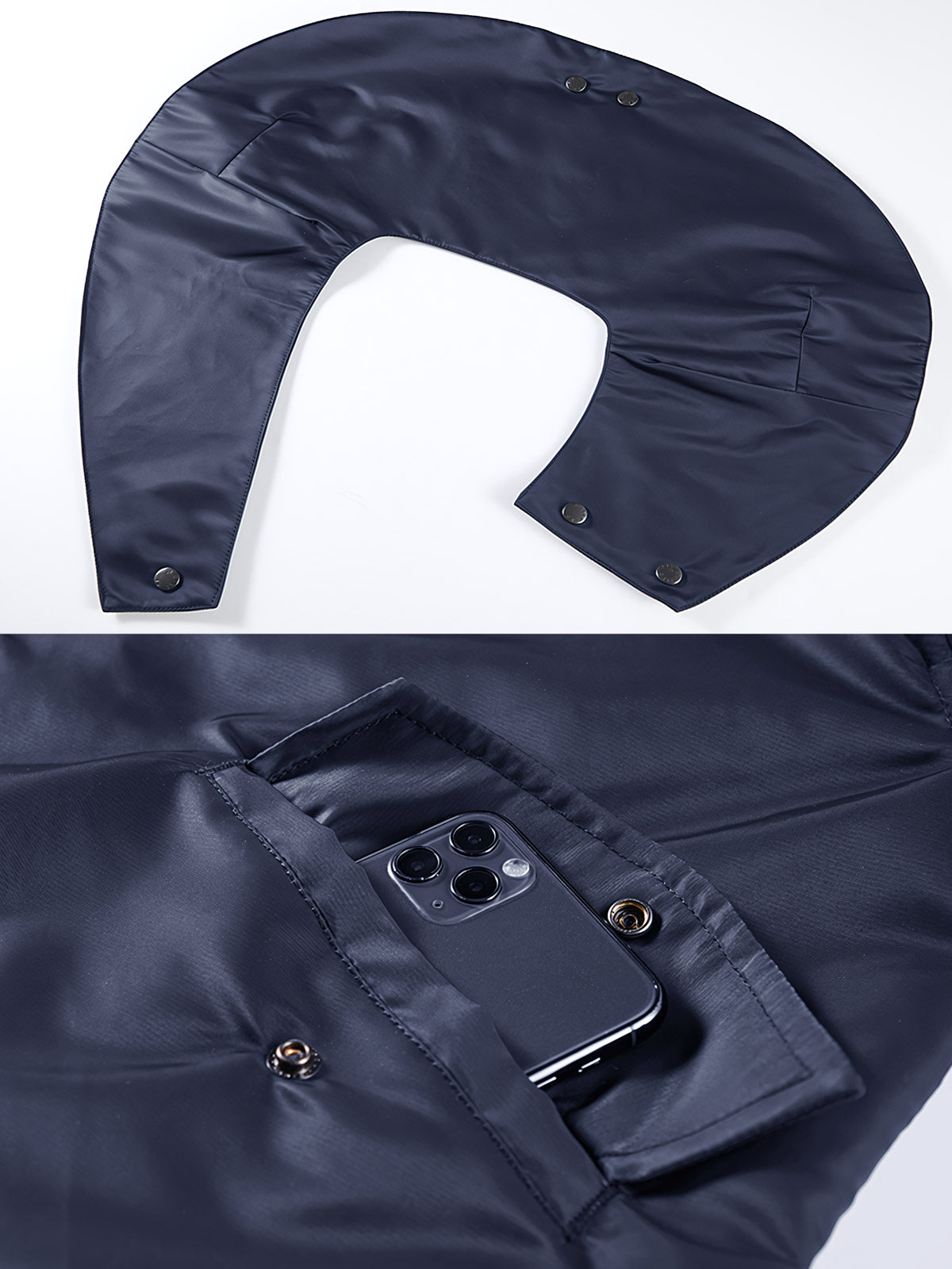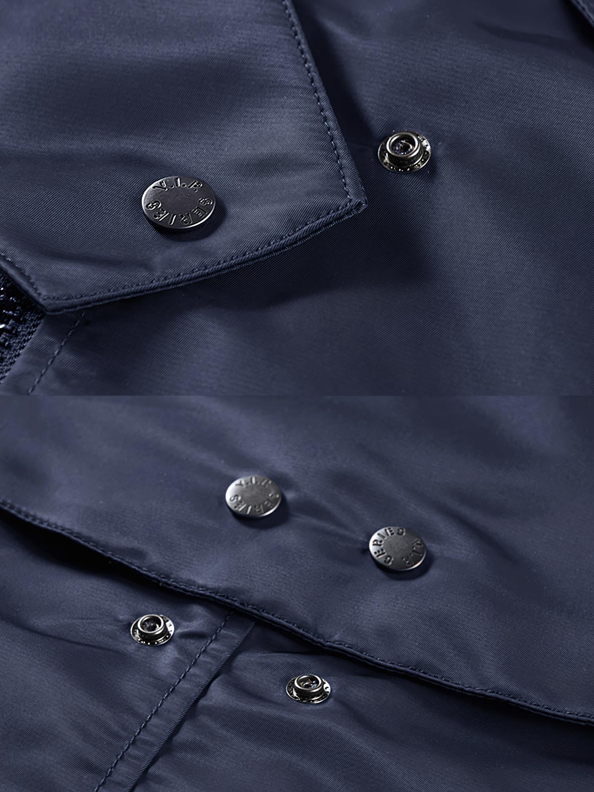 このジャケットのデザインの詳細、例えば取り外し可能なボタン襟は、高い調整性と便利性を提供するだけでなく、粗野な美学的特徴を加えています。