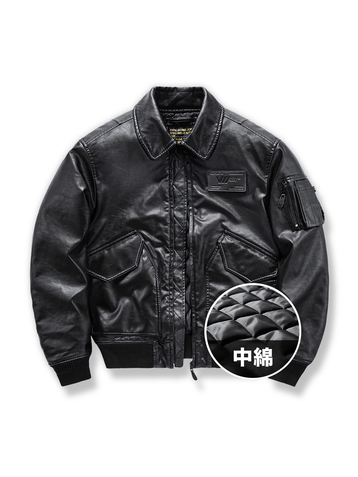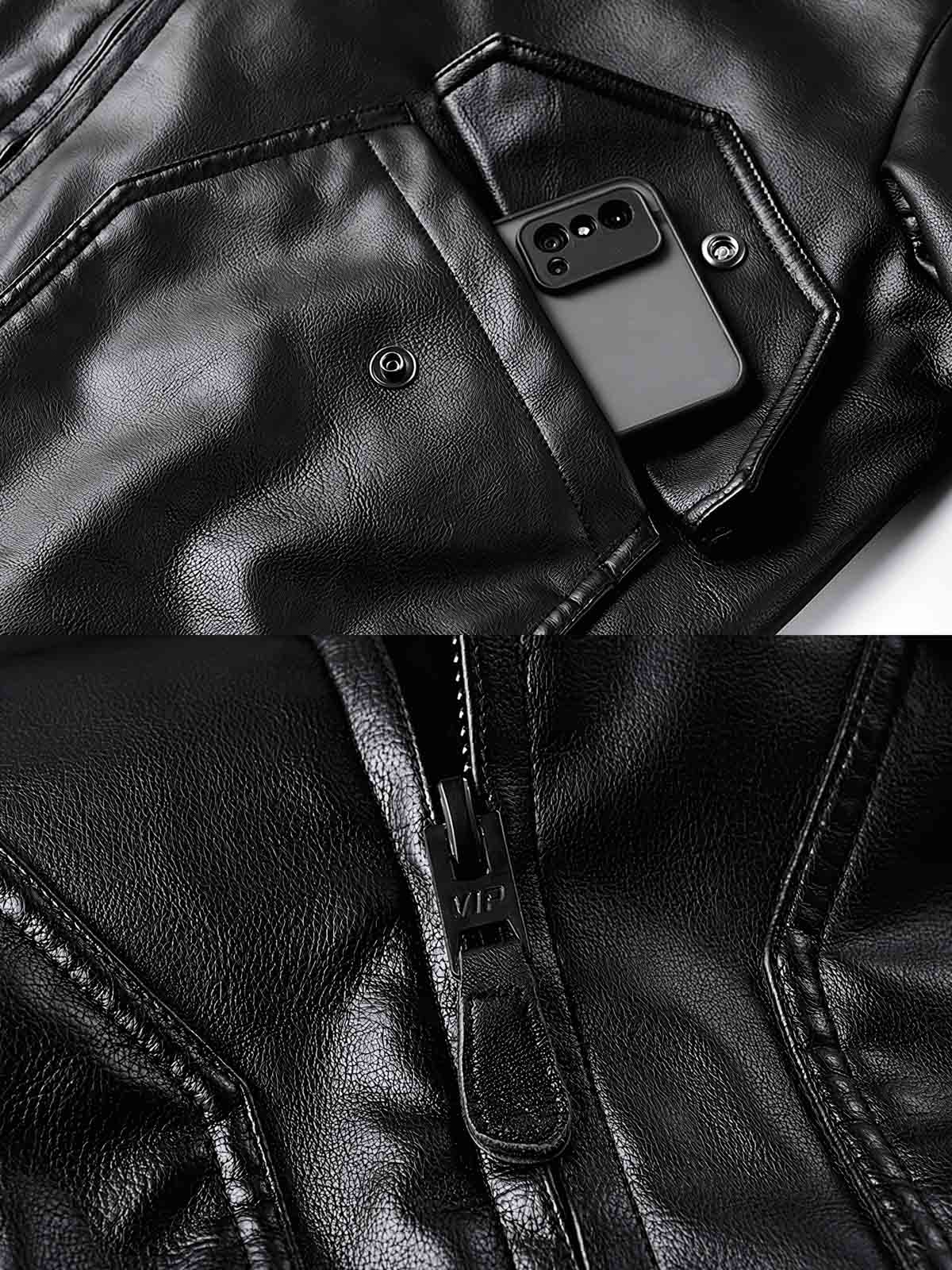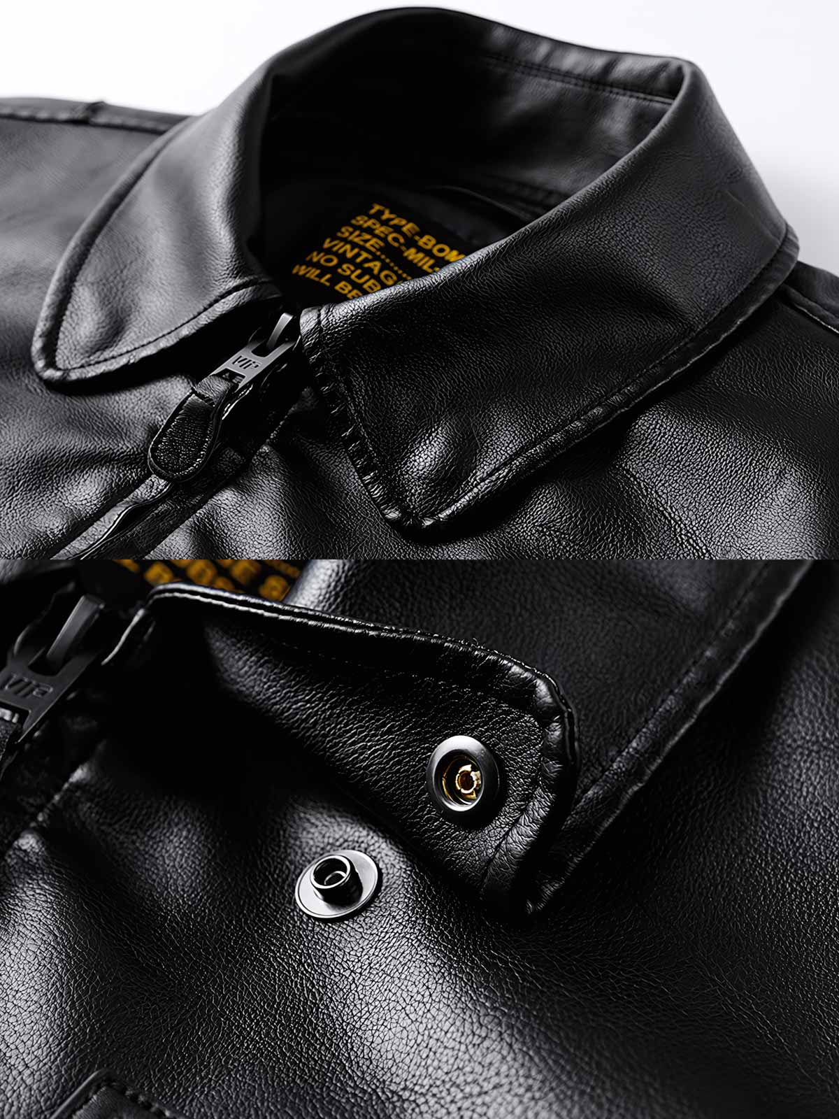 ジャケットのレザー外装は耐久性があり、ある程度の防水機能を備えています。機能的なポケットと実用的なジッパーがその実用性を高め、軍用バッジやエンブレムのディテールはユニークなミリタリー感を加えています。