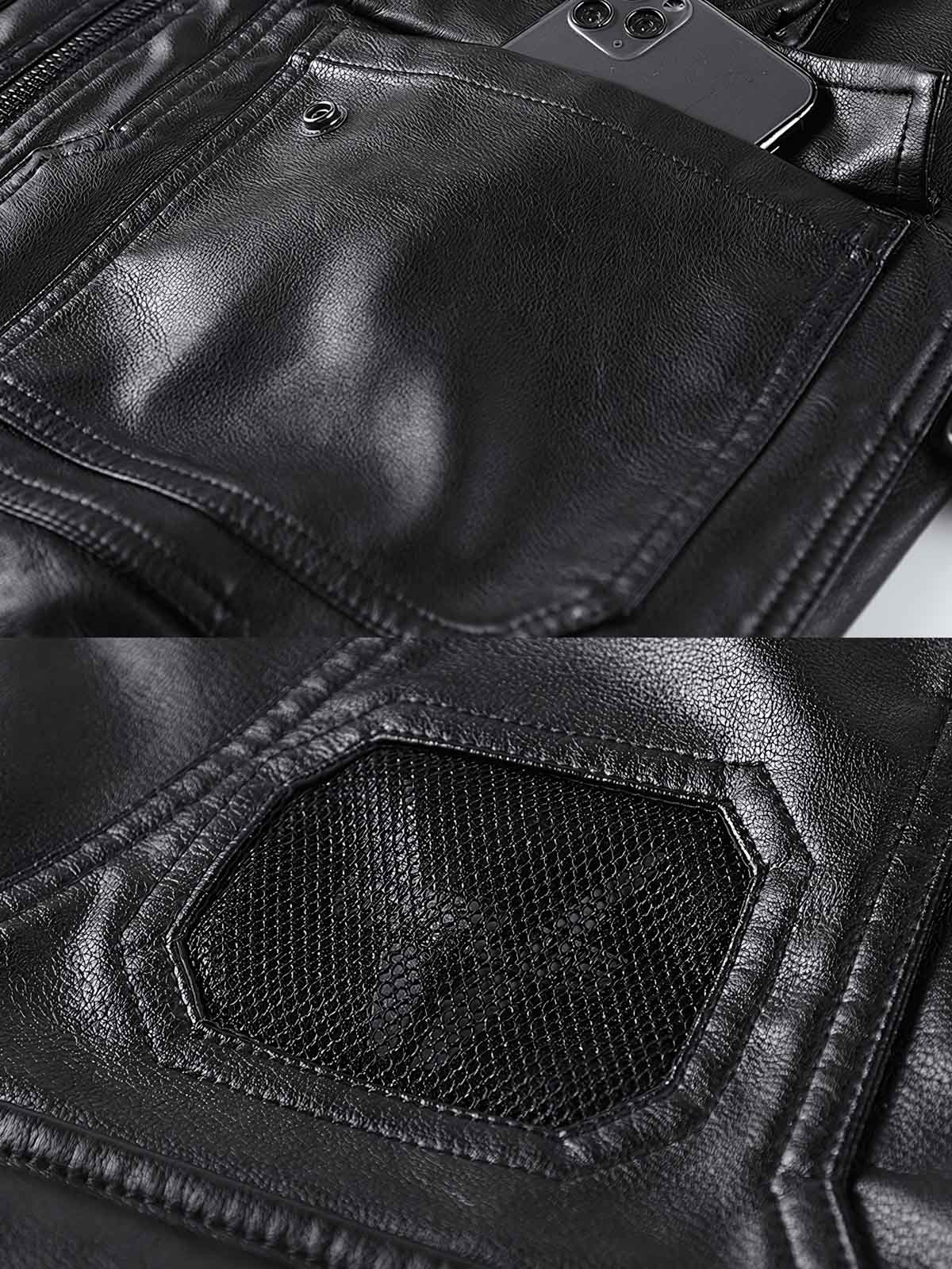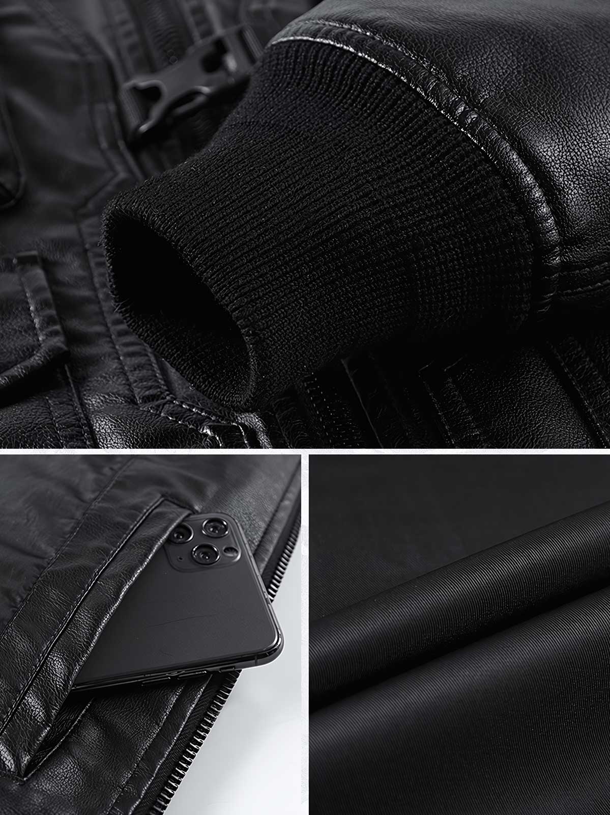 ジャケットのフォルスレイヤーデザインは、内側のコットンウェアの快適さと外側のレザージャケットの耐久性を組み合わせています。このデザインは、着用の層の感覚を増やしながら、さらなる保温性を提供します。