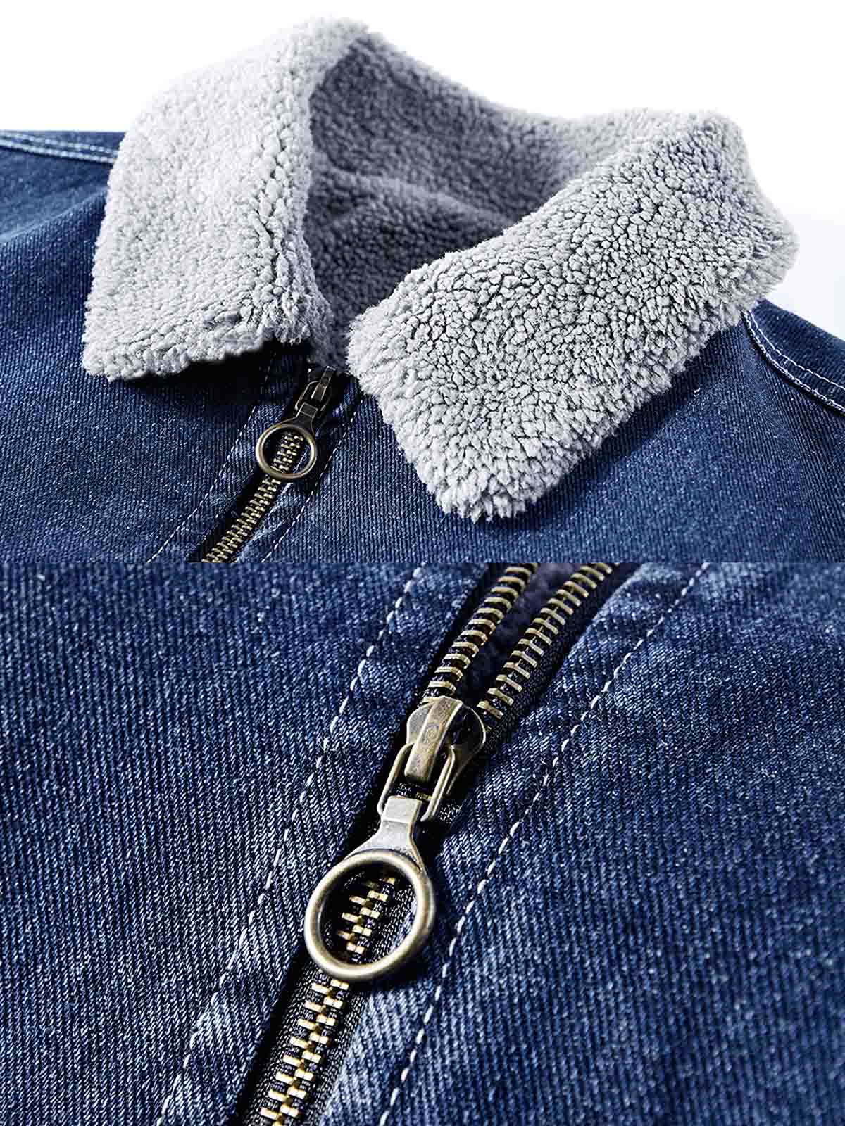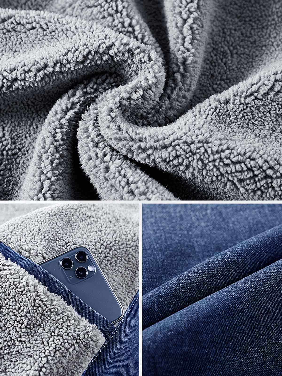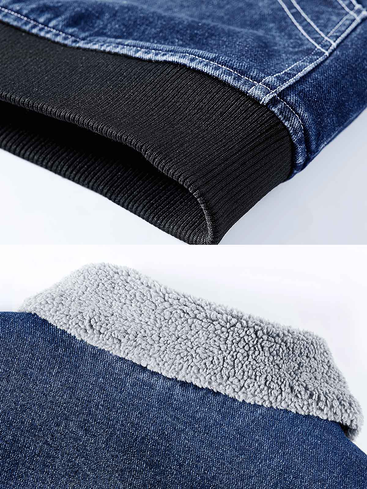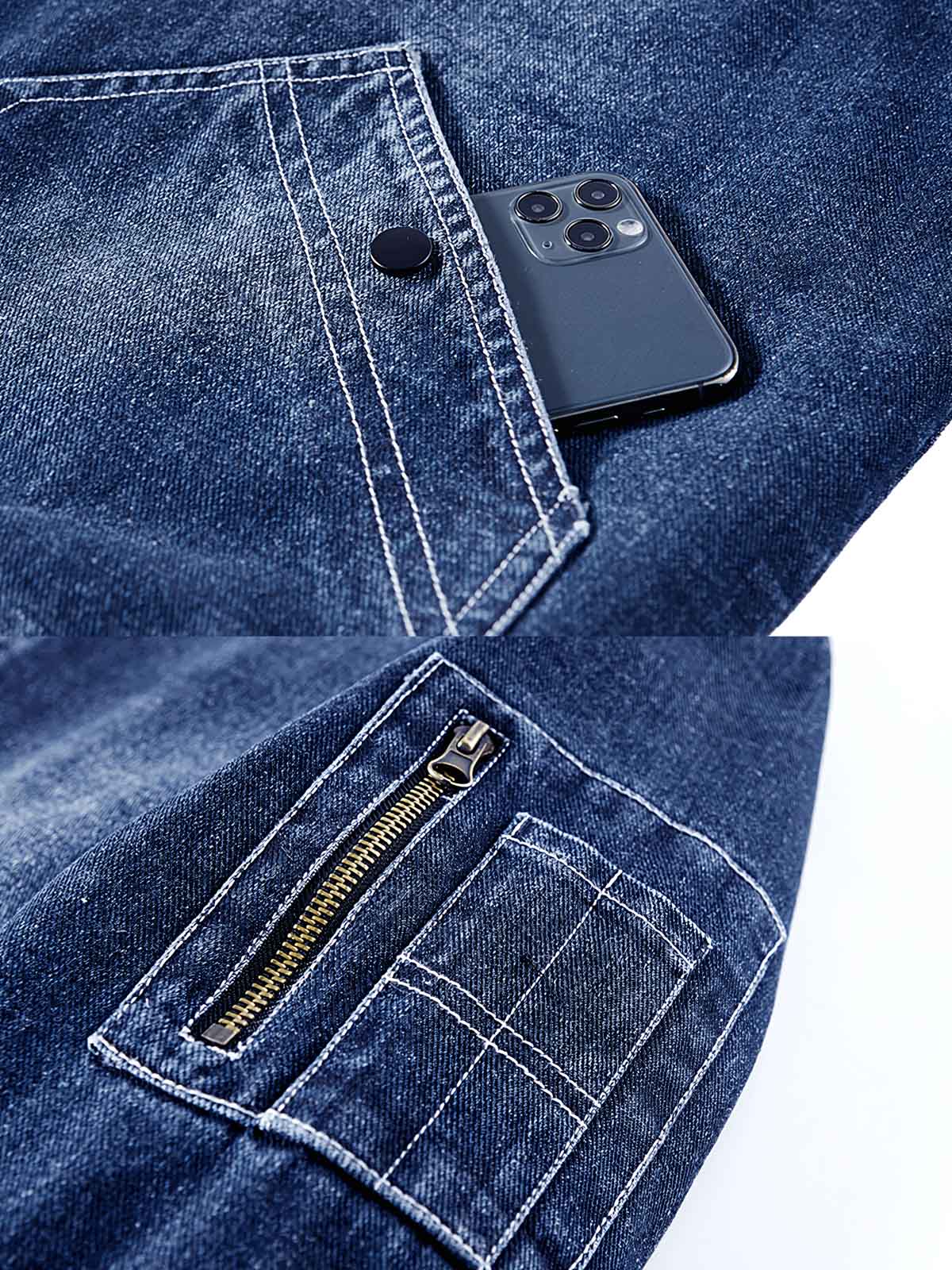 素材の選択では、耐久性がありお手入れが簡単なデニム生地を使用しており、秋冬に適しています。内側には裏起毛が施されている可能性があり、保温性を向上させています。
