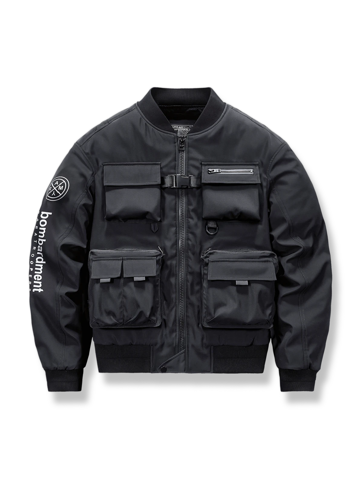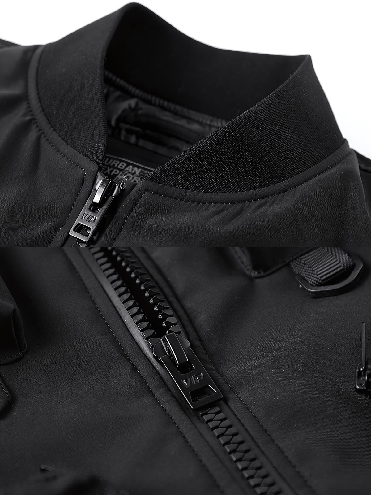 フライトジャケットは、20世紀初頭の軍用パイロットジャケットに起源を持ち、パイロットに保温と飛行操作の便宜を提供することを目的としています。この現代のフライトジャケットは、クラシックなMA-1のシルエットを保持しつつ、機能主義の要素を加えています。多機能ポケットや調整ストラップなどが加わり、実用性を高めるとともに、現代のファッショントレンドにも合致しています。