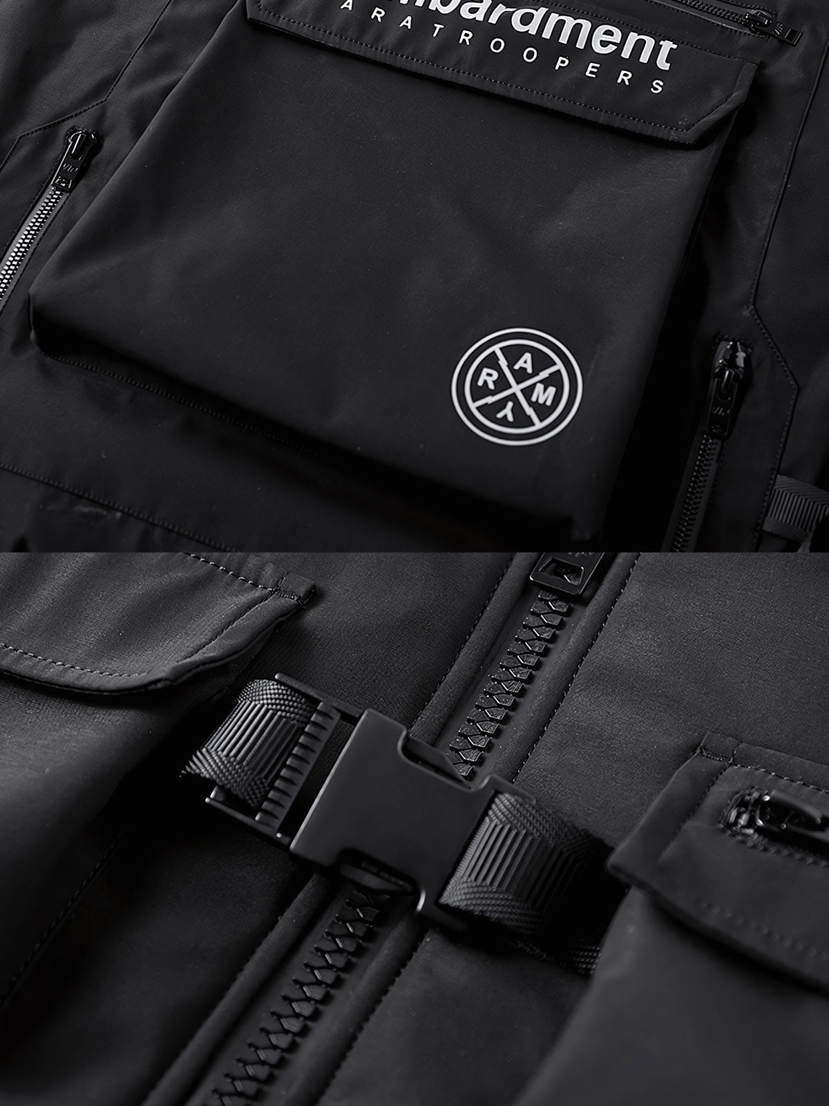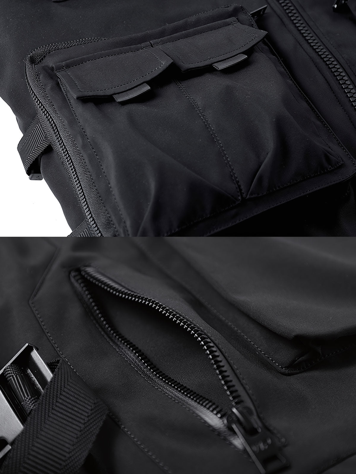 外層には高密度の合成繊維素材を使用しており、風を防ぎ水をはじく機能を持ち、変わりやすい気候に対応しています。胸元と腕部分のポケットデザインは、収納スペースを増やすだけでなく、視覚的な層をもたらしています。ジャケットのファスナーやボタンは、耐久性があり操作しやすい高品質の金属を使用しています。