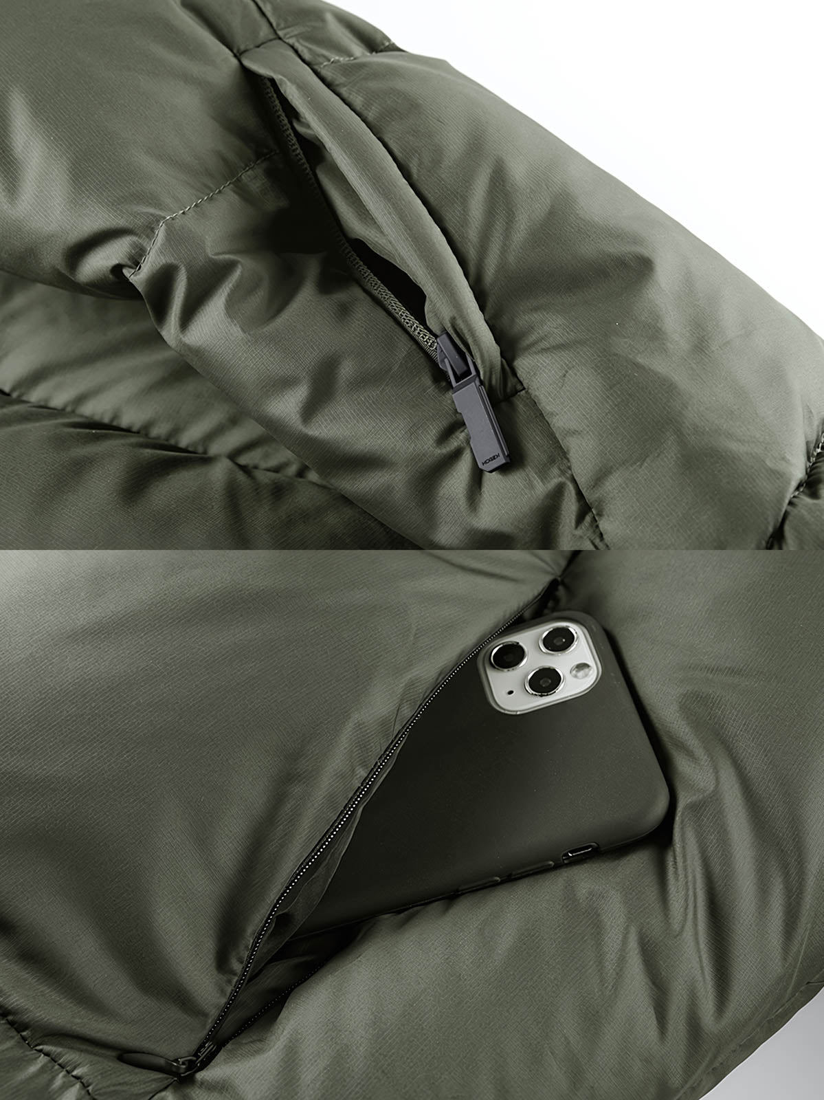 ダウンジャケットは軽量の詰め物を使用しており、優れた保温性を保ちながら体積を増やしすぎないようにしています。そのフィット感は、活動に対応する十分なスペースを提供しつつ、モダンなファッショナブルなシルエットを保持しています。