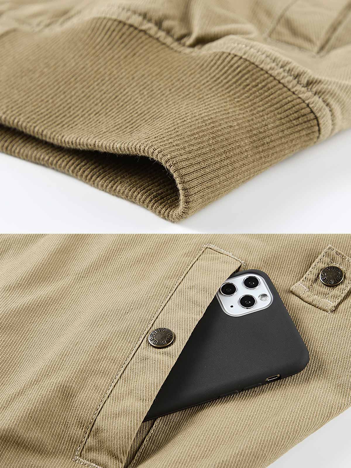 高品質のコットン素材を使用した厚手のジャケットは、寒い天候での外出時に十分な保温を提供します。袖口と裾の精密な処理は保温性を強化し、冷たい風の侵入を防ぎます。