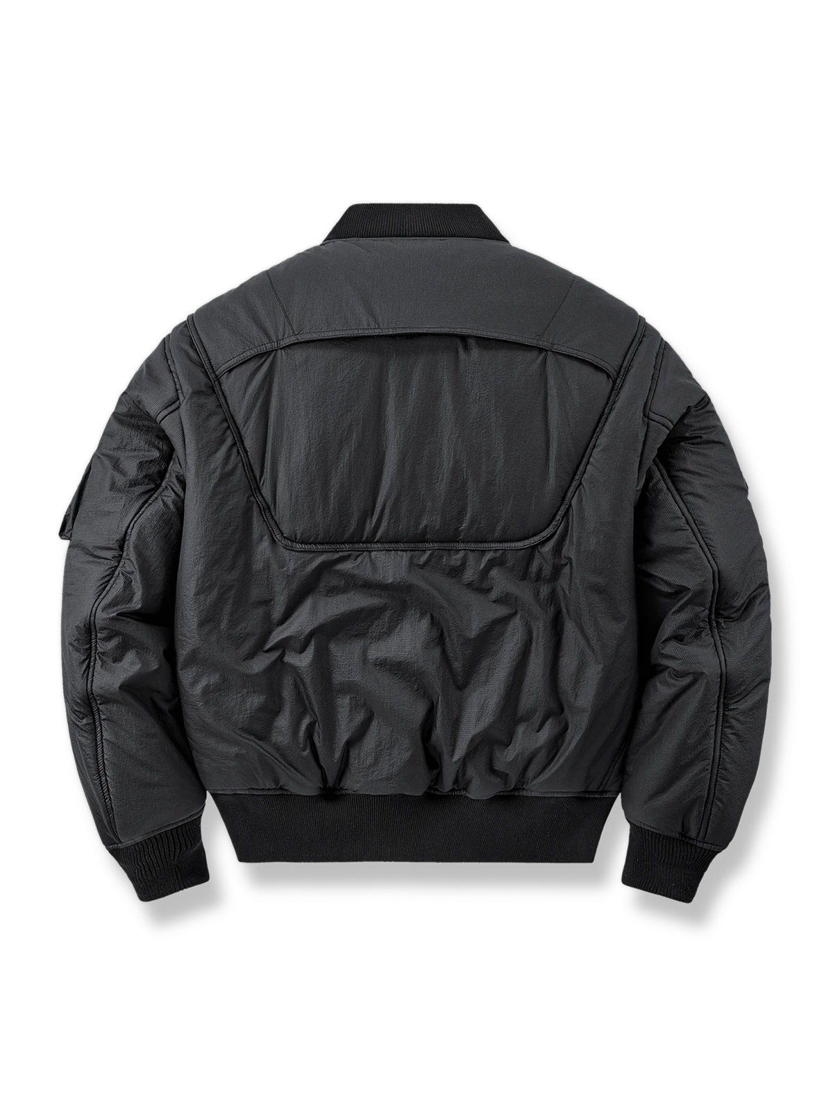 このコットンジャケットは、軍事服装からインスピレーションを得ており、機能主義の特徴を持っています。実用的なポケットのデザインと、ラインに重点を置いたカットは、1950年代のパイロットジャケットの機能性を反映し、現代の都市探検家のイメージに合致しています。