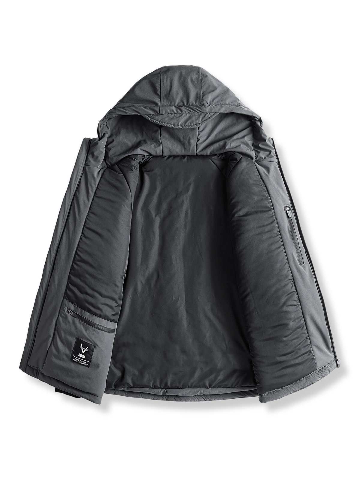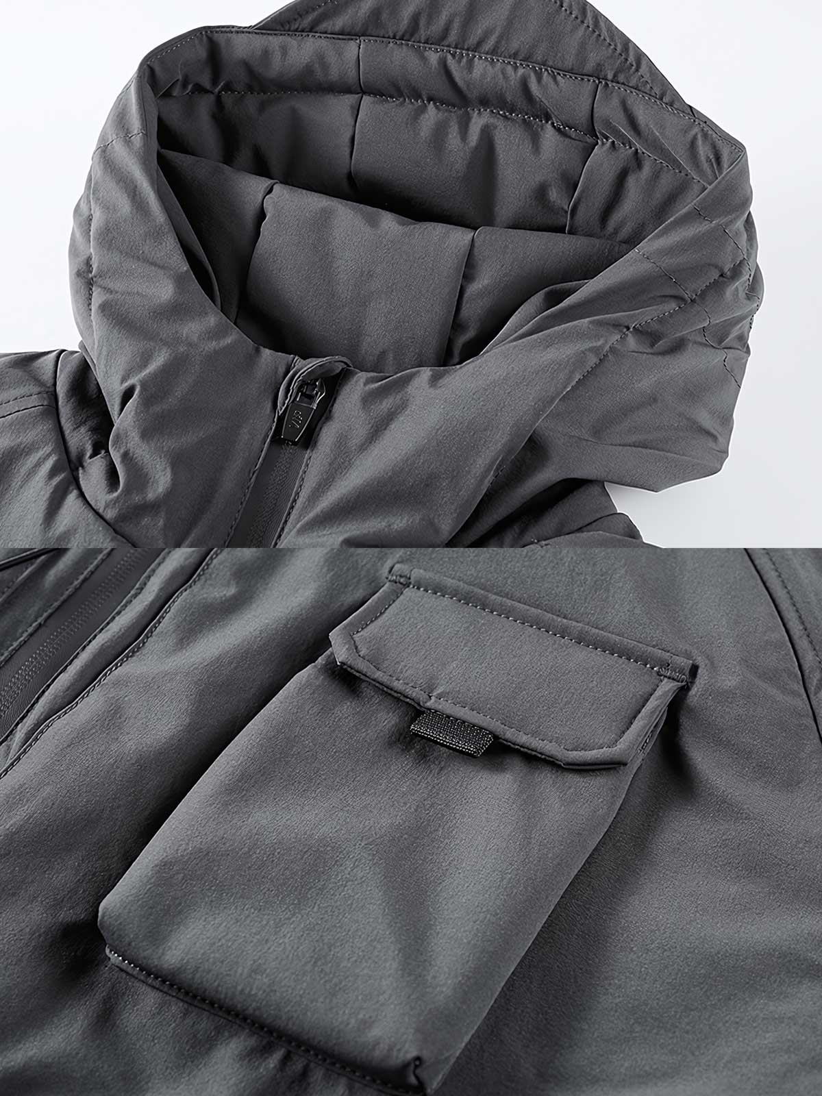 ゆったりとしたフィット感と豊富な充填材料は、暖かく快適な着用体験を提供し、活動の自由度を確保します。フード部分は追加の保護を提供し、冷たい風や軽い雨の環境に適しています。