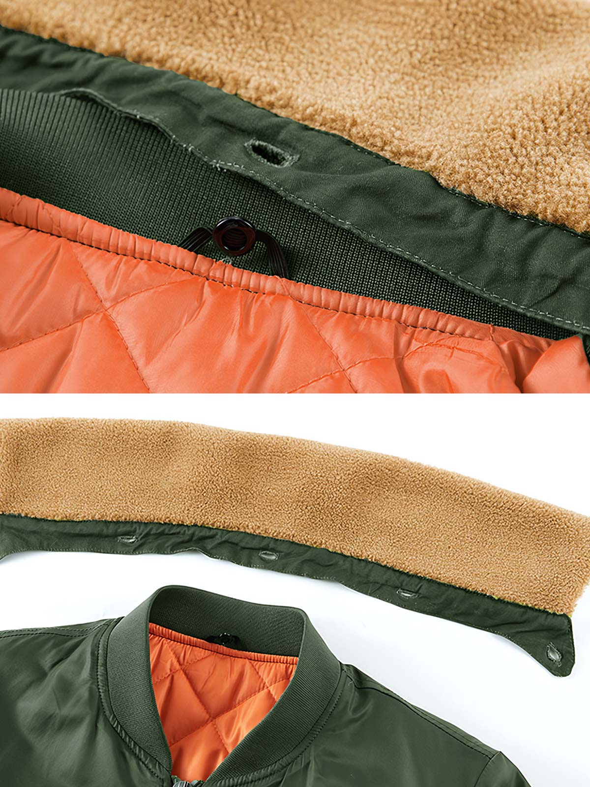 ジャケットのデザインは保温性と動きやすさを考慮しており、厚手の素材は良好な保温効果を提供します。取り外し可能なファーカラーにより、さまざまな着こなしが可能です。伸縮性のある袖口と裾は保温性を高め、日常活動を容易にします。
