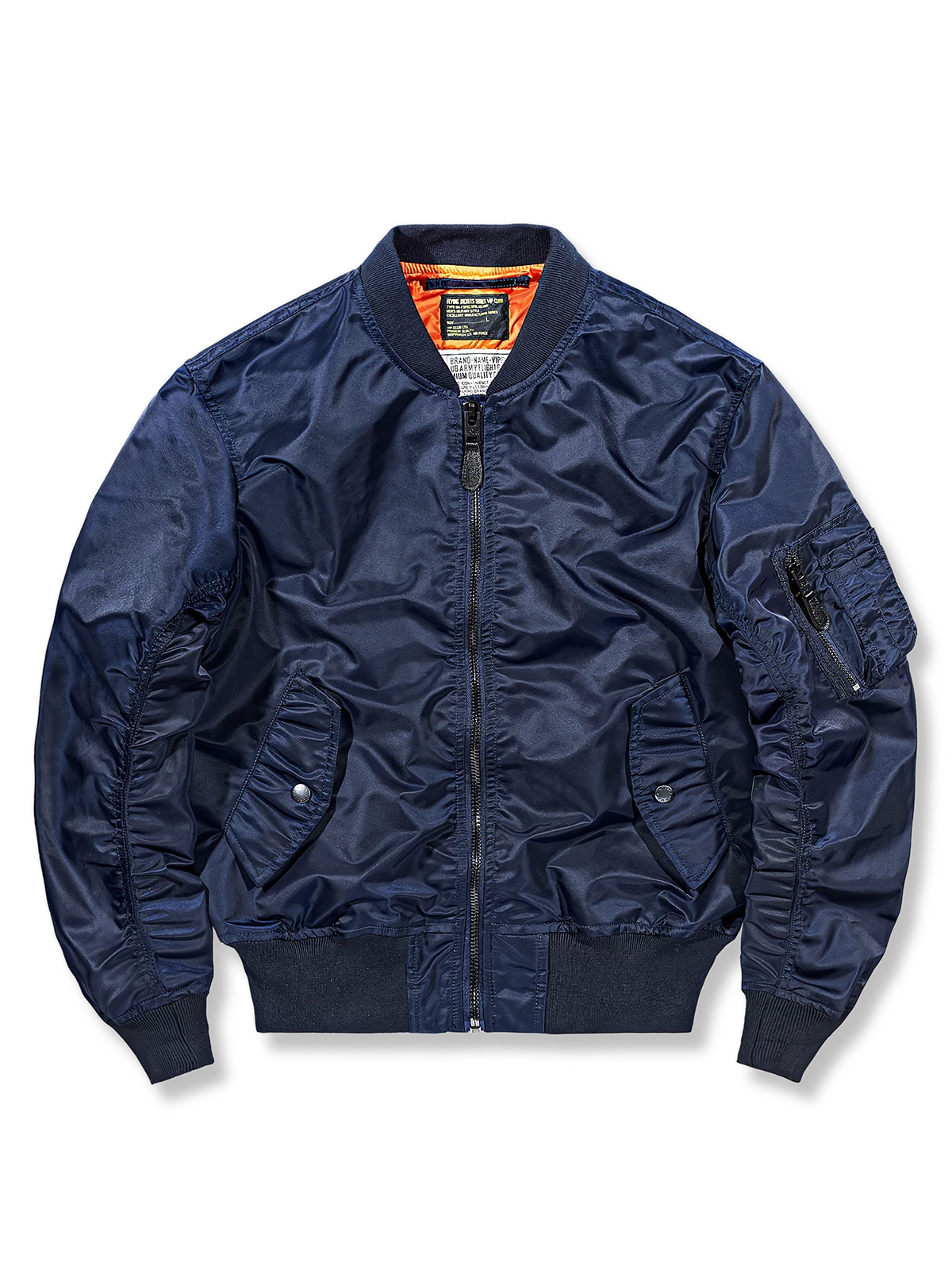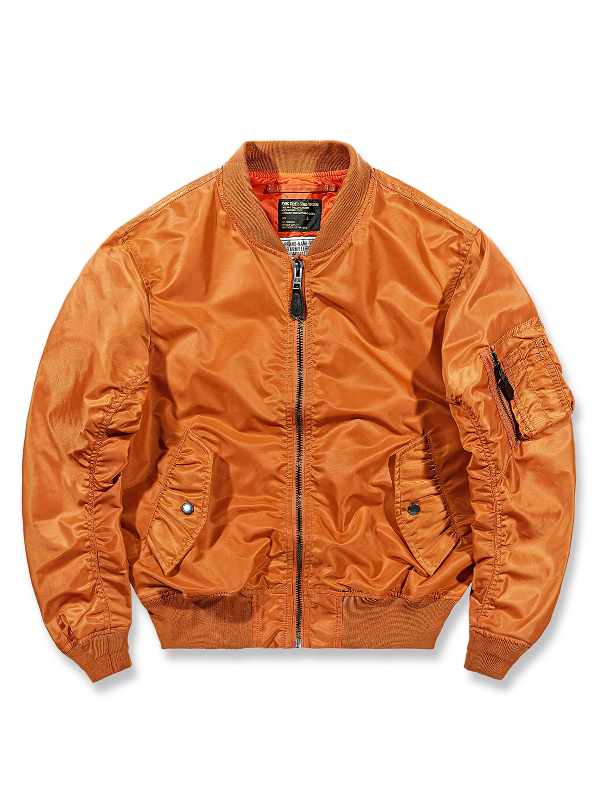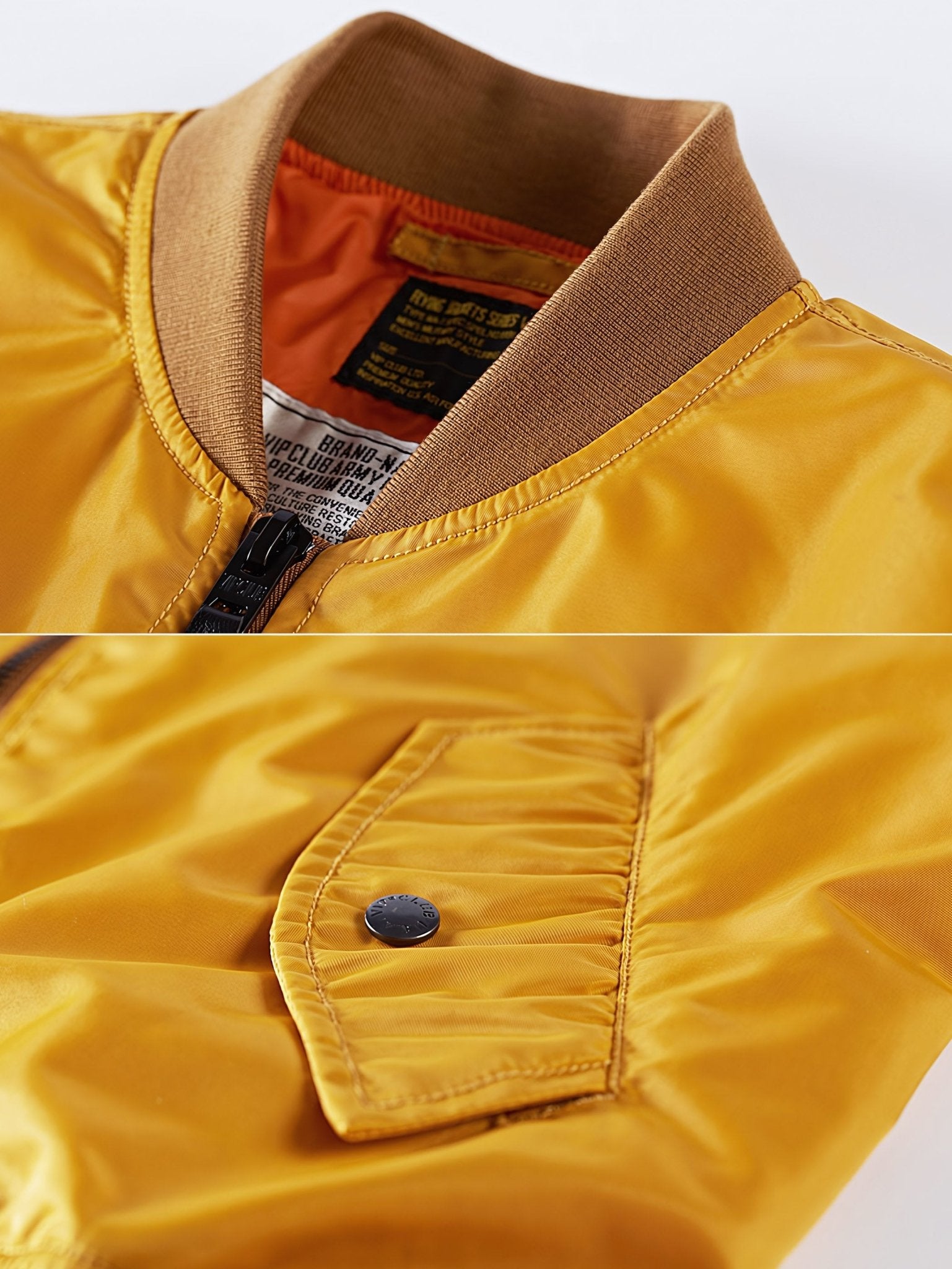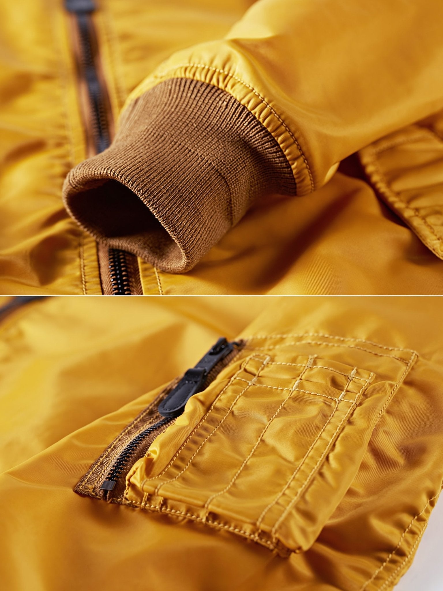 このMA-1フライトジャケットの裏地は、レスキューオレンジの色合いをしています。袖口にはポケットが付いており、美しさに加え機能性も備えています。サイドポケットのデザインは小物を持ち運ぶのに便利で、ジャケットの実用性を高めます。