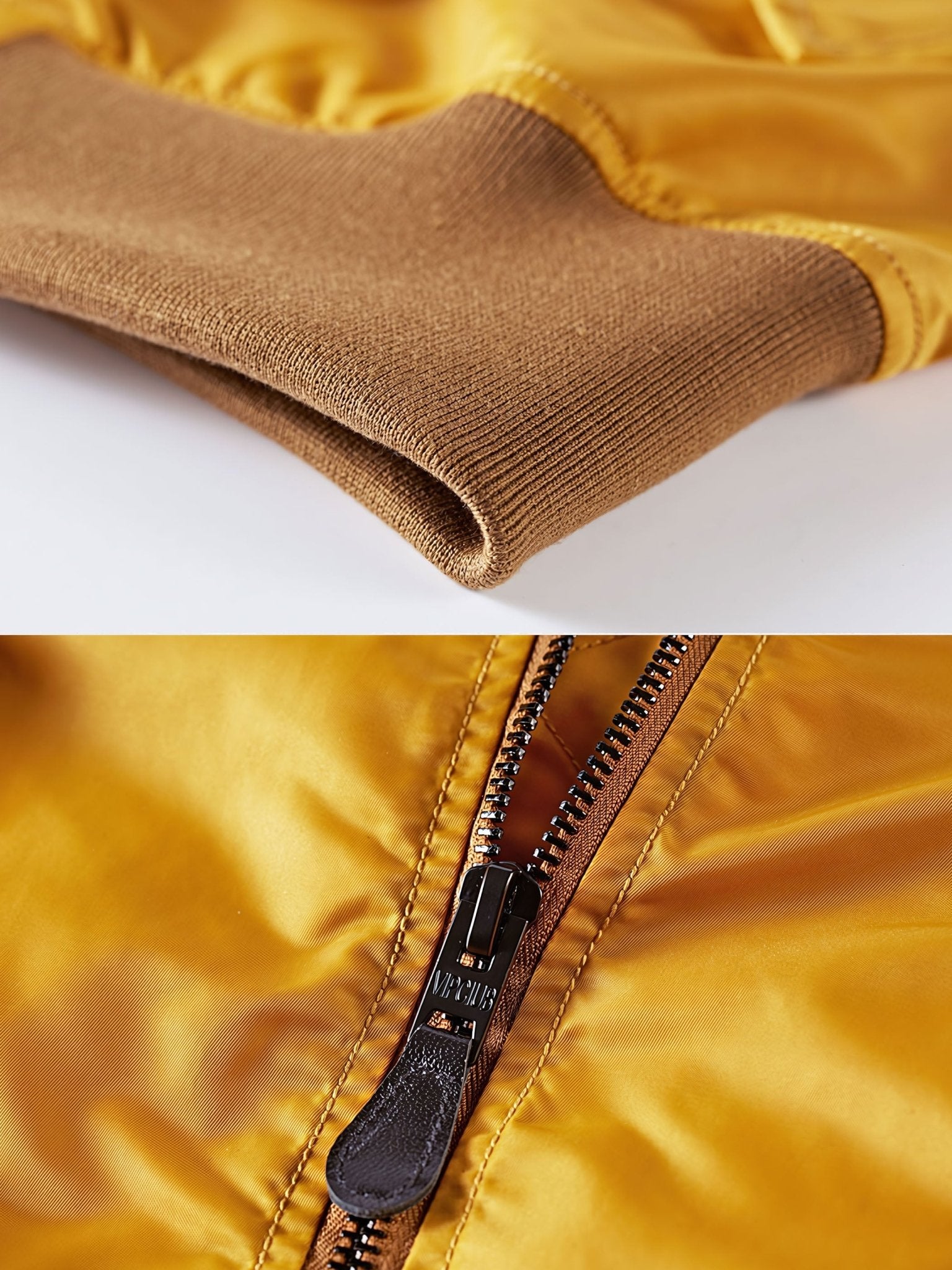 防水加工ナイロン生地は摩耗に強く風を防ぐ性能を持っており、優れた保温性を提供します。この生地はジャケットの快適さと耐久性を確保し、さまざまな場面で着用するのに適しています。