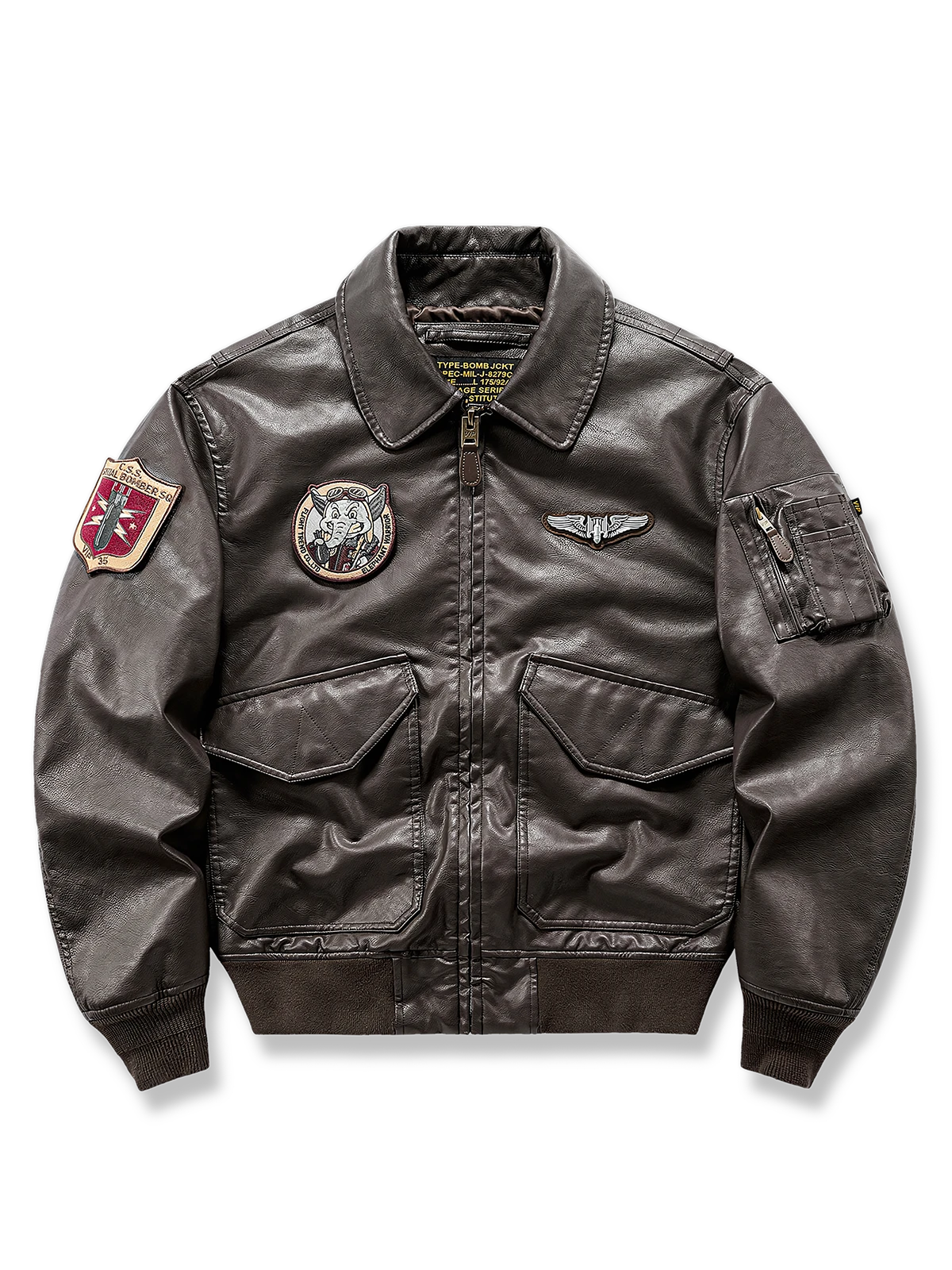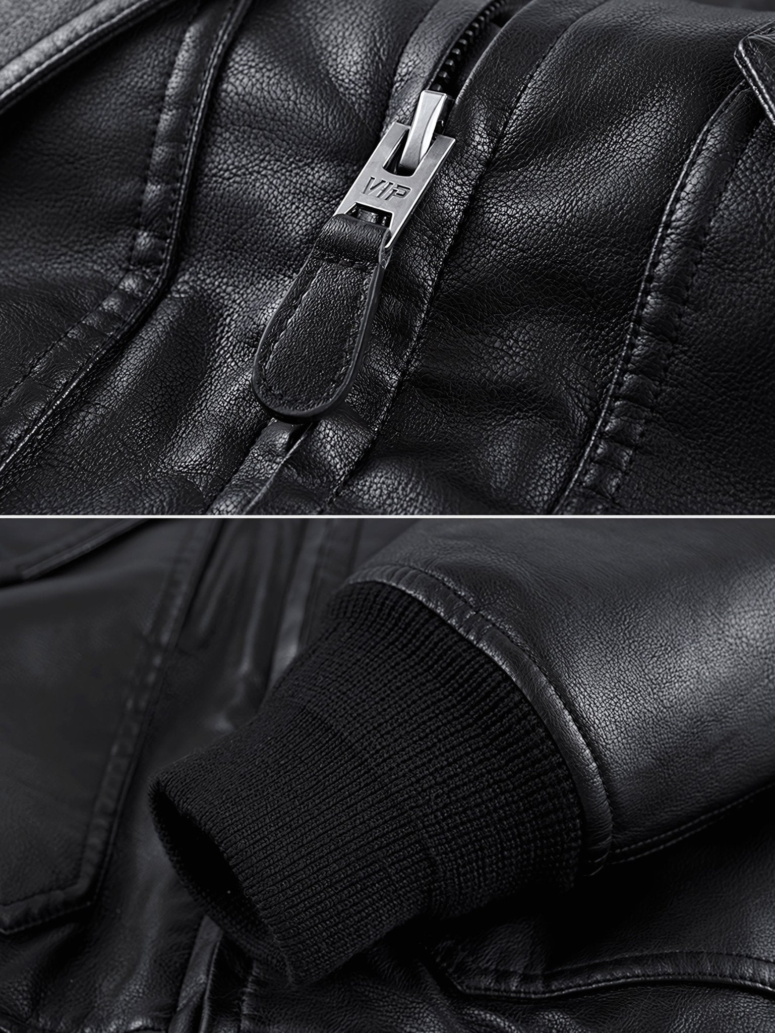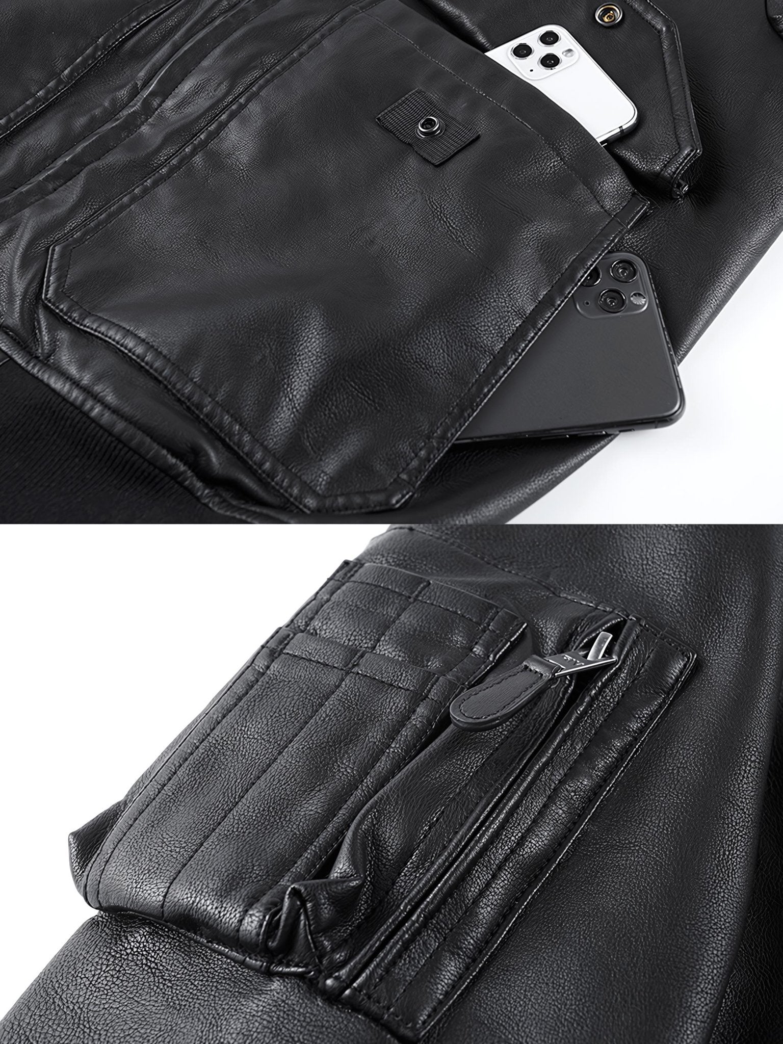 皮革製のジャケットは多くのバイカーライダーの選択肢であり、袖にはエンブレムがついています。また、サイドポケットのデザインは小物を持ち運ぶのに便利で、ジャケットの実用性を高めます。