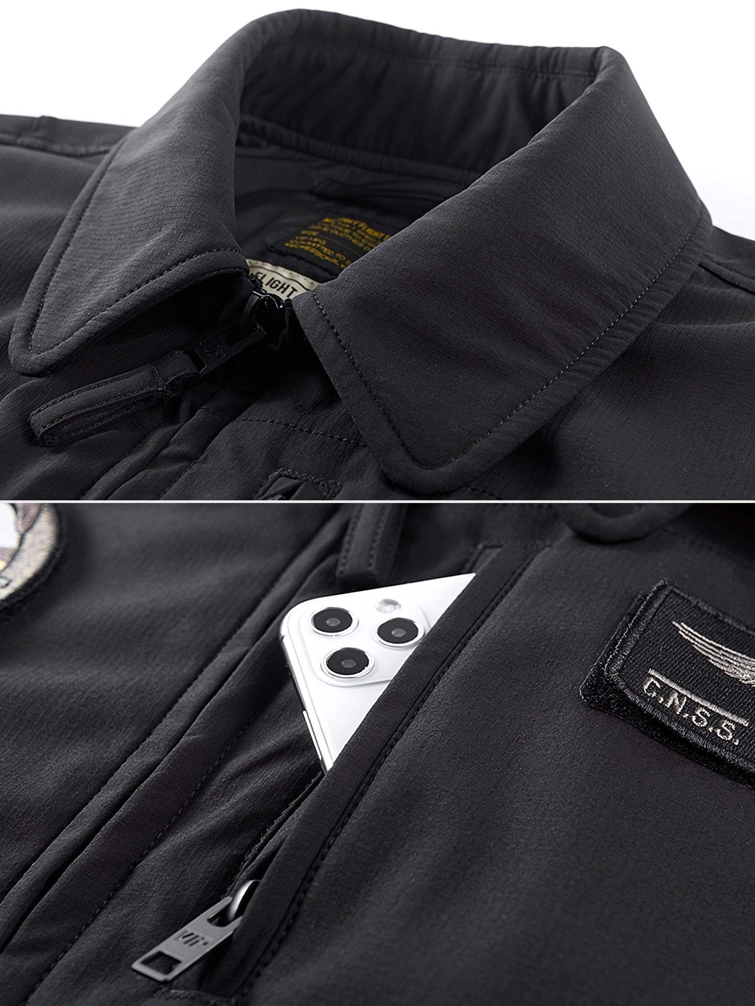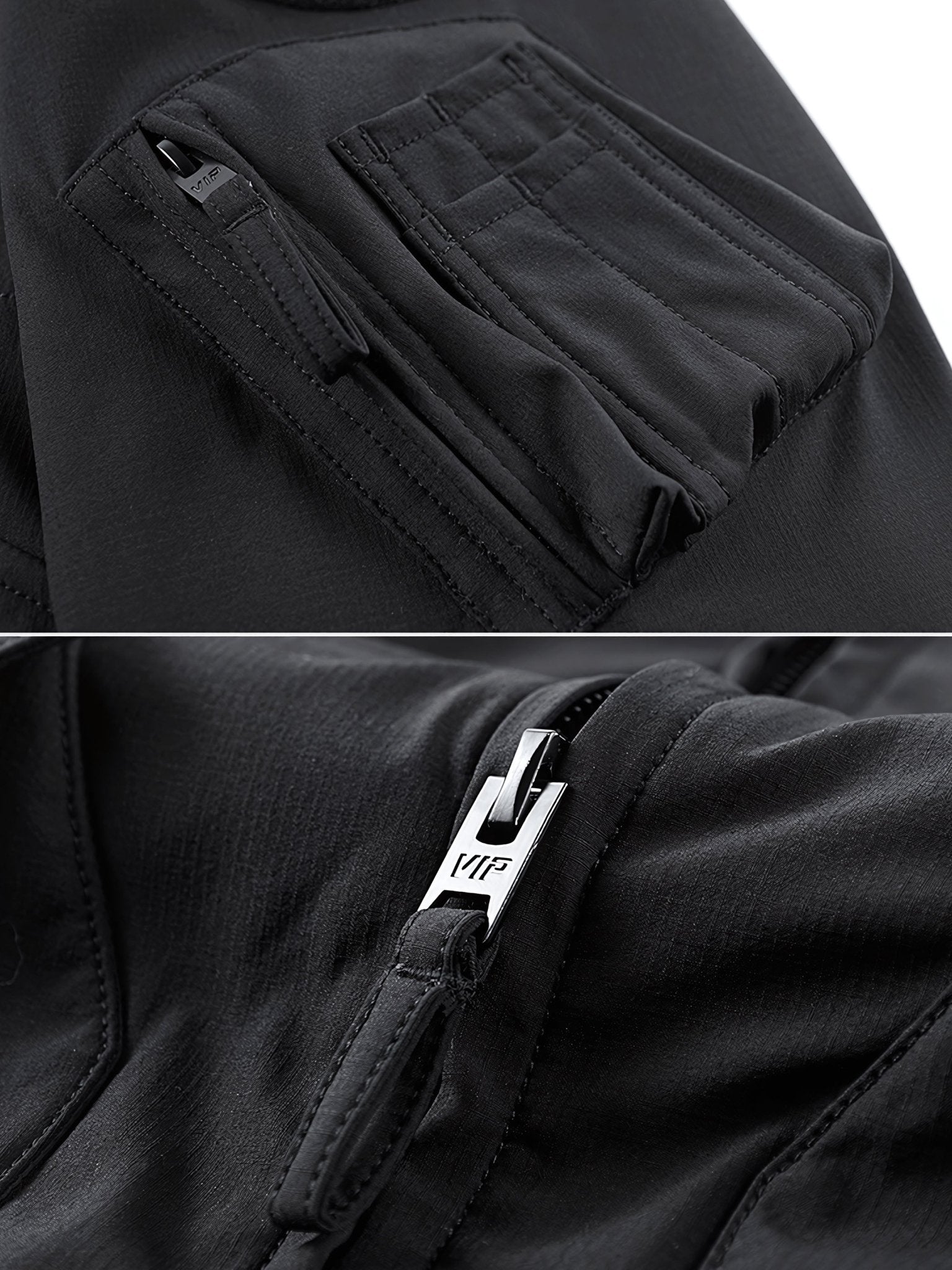 袖口にはポケットが備わっており、美しさだけでなく機能性も兼ね備えています。サイドポケットのデザインは、小物を持ち運ぶのに非常に便利で、ジャケットの実用性を高めています。また、取り外し可能なマジックテープは、簡単にアームパッチを取り付けたり外したりでき、着用者のスタイルに合わせてカスタマイズすることができます。