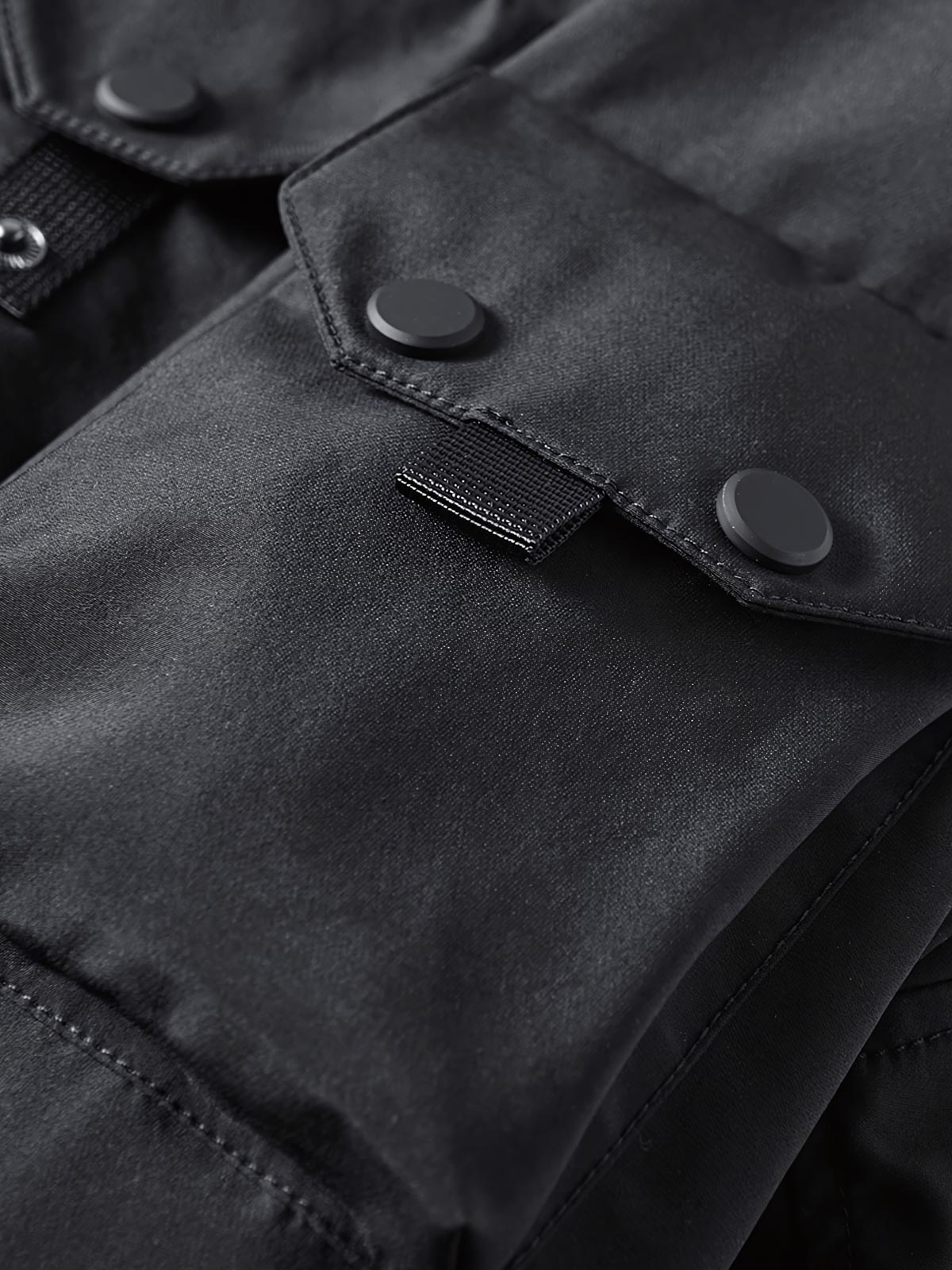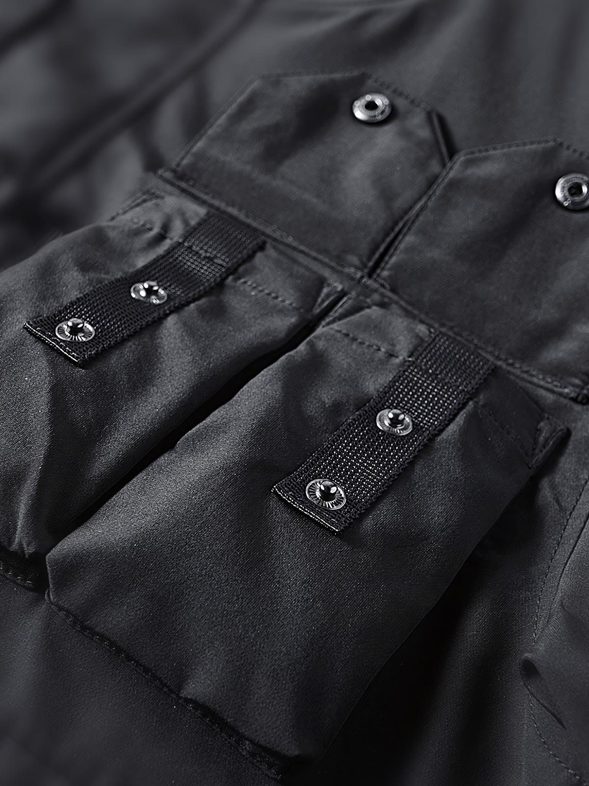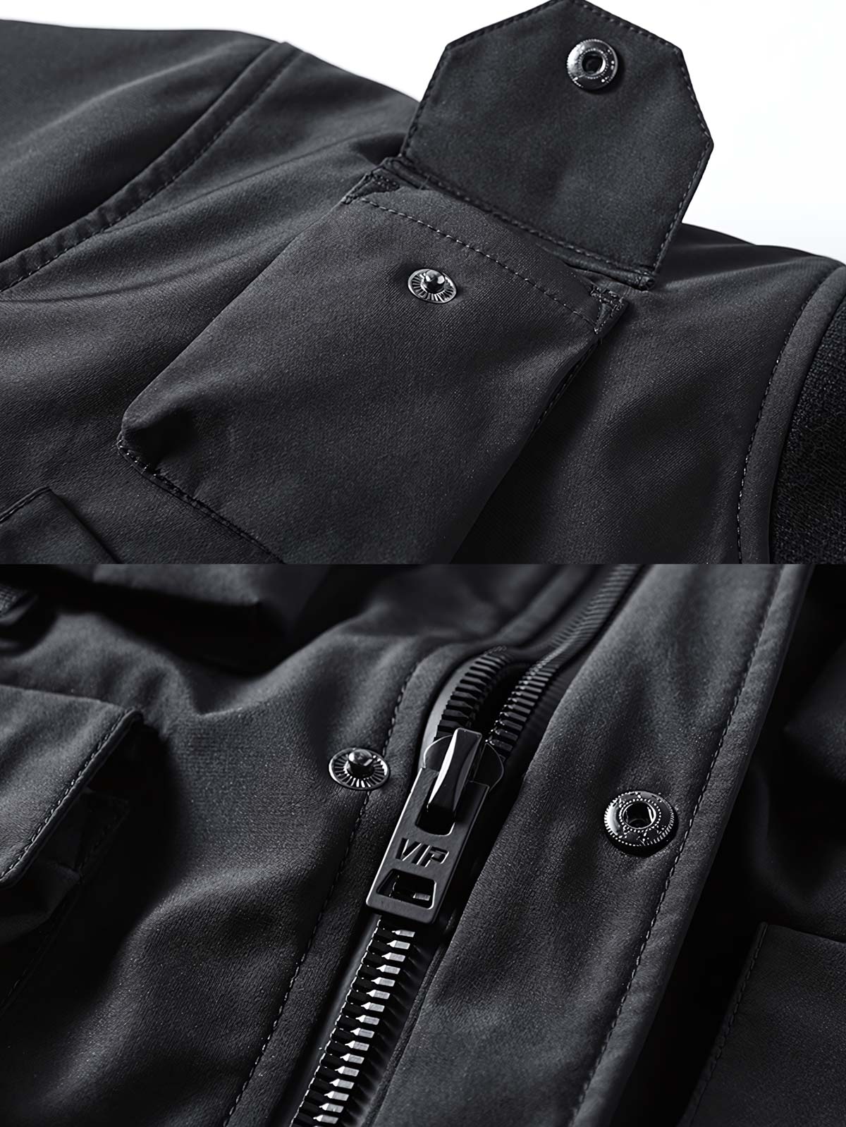耐久性があり防風性のポリエステル素材を使用し、精密な縫製技術により長持ちします。多機能ポケットのデザインは実用性を重視しており、単色調とシンプルなラインは全体の調和と美観を保持しています。