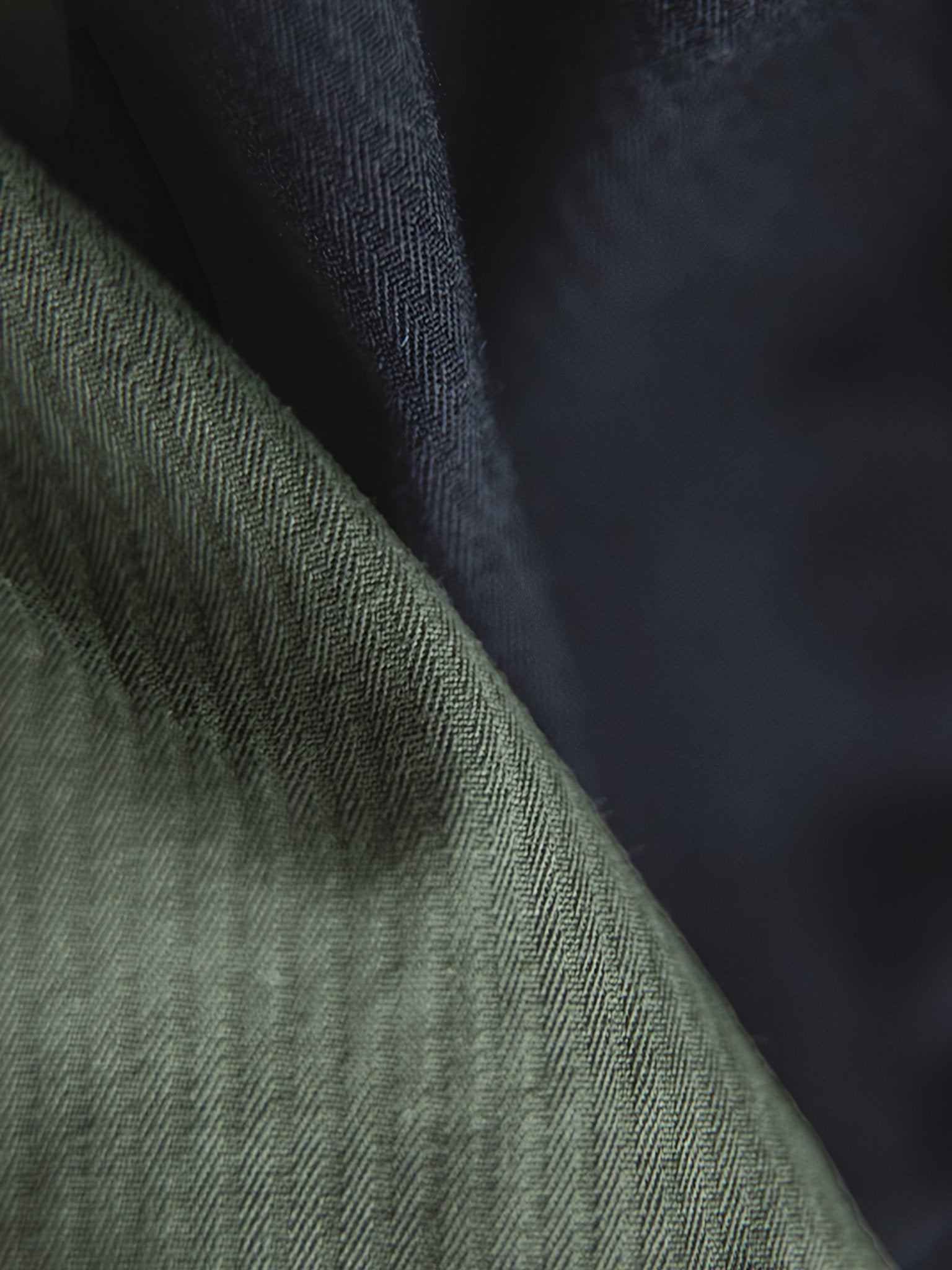 ヘリンボーン生地を使用し、武骨さがあり耐久性に優れます。高い保温性を持ち、長く愛用できるアイテムです。ただし、中綿入りではないため、注意が必要です。コーディネートでは、スキニーやキレイめアイテムとの相性が良く、ワイドパンツとも合わせやすいです。また、ロンT、スウェット、パーカー、シャツなどとの組み合わせも楽しめます。