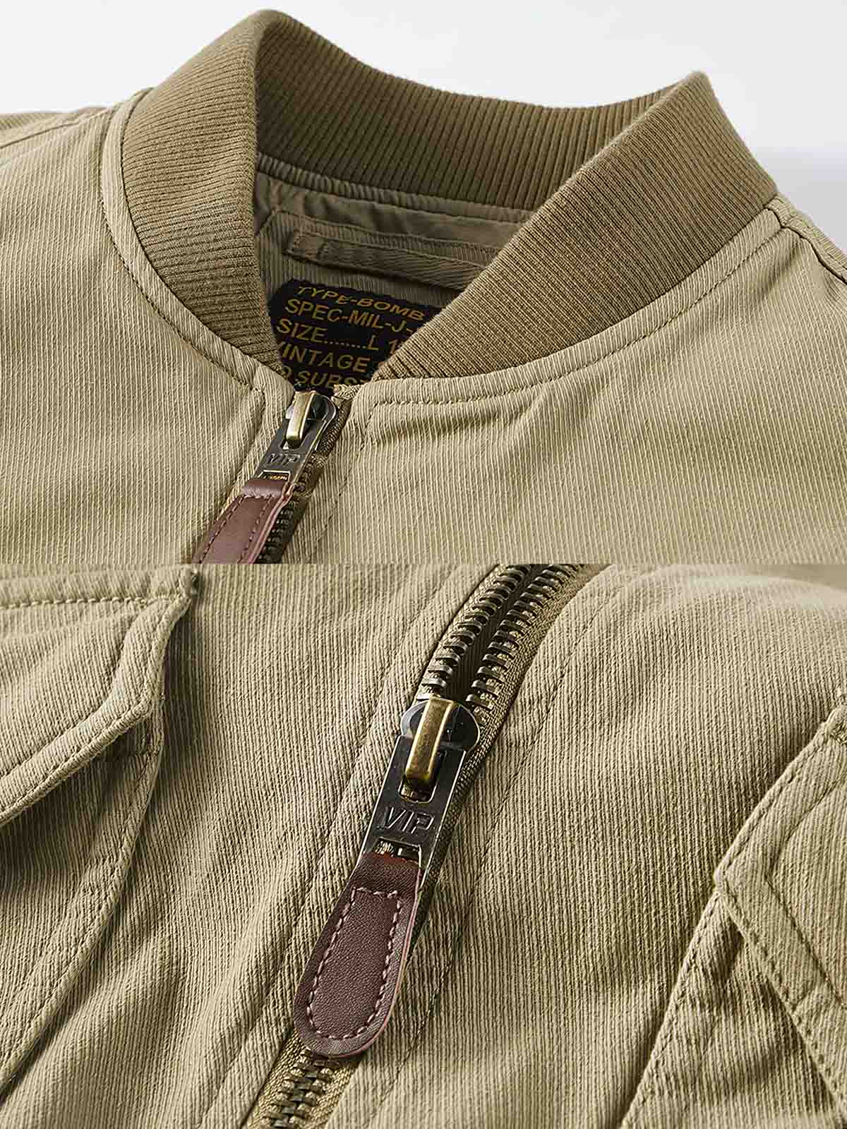 ジャケットは高密度防風素材で作られており、ある程度の防水性能があり、春秋の着用に非常に適しています。精細な刺繍バッジと慎重に配置されたポケットは、ディテールへの厳格な注意と工芸への敬意を反映しています。