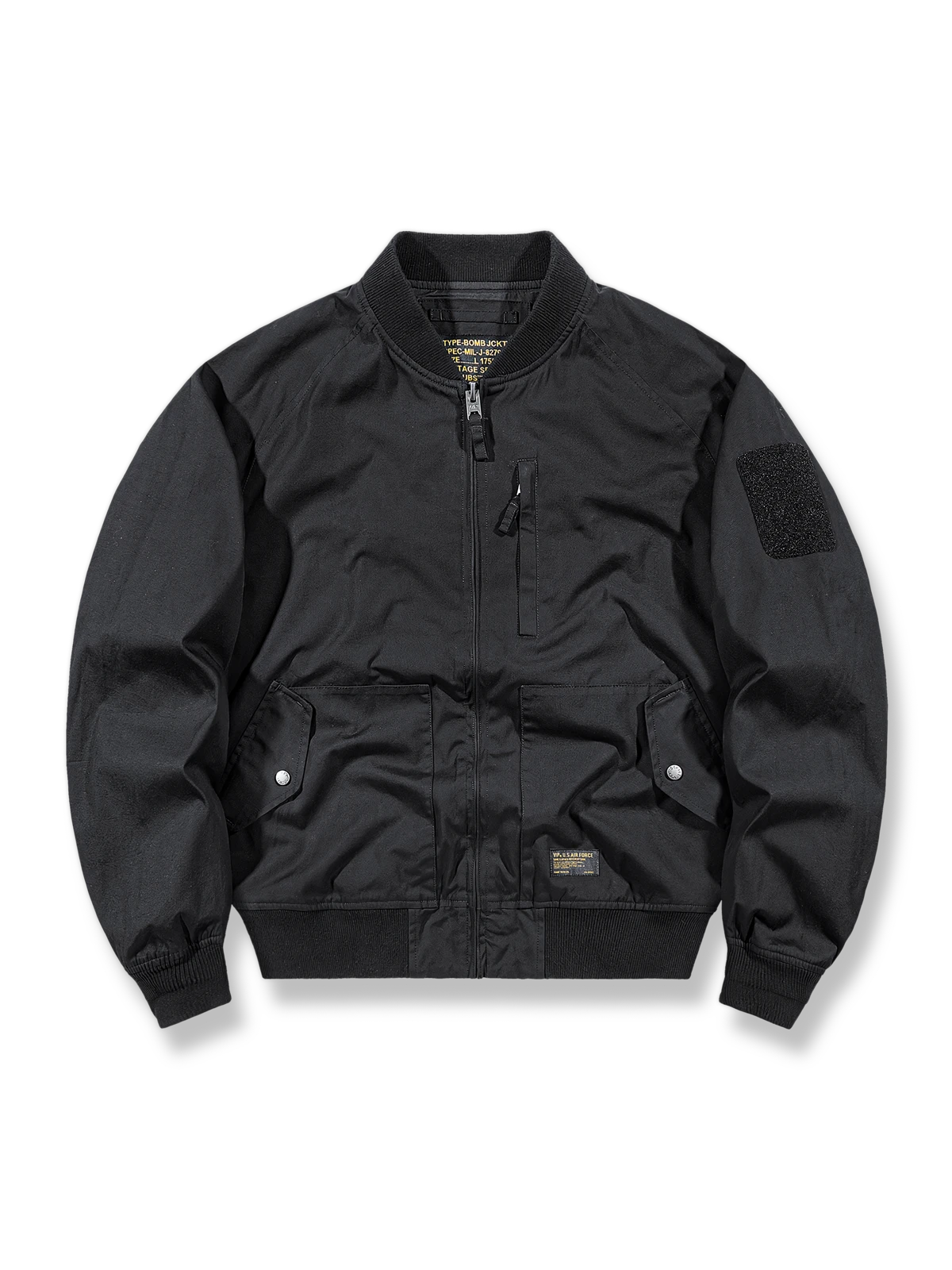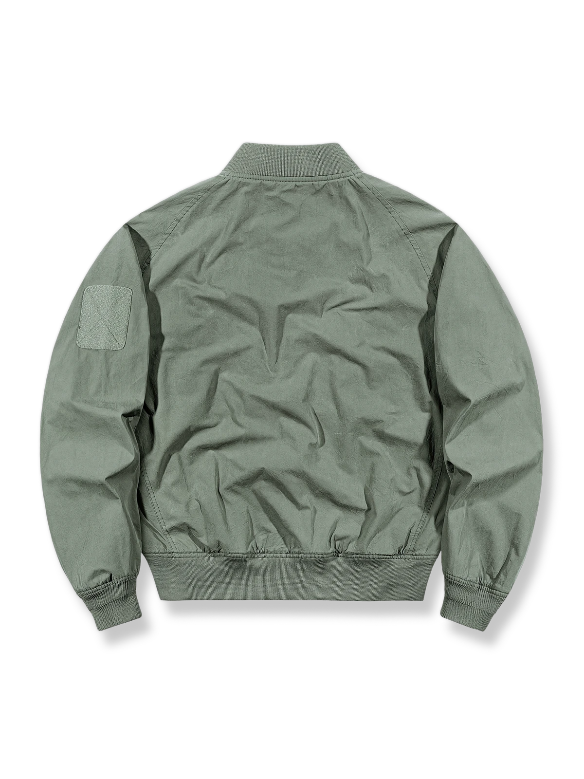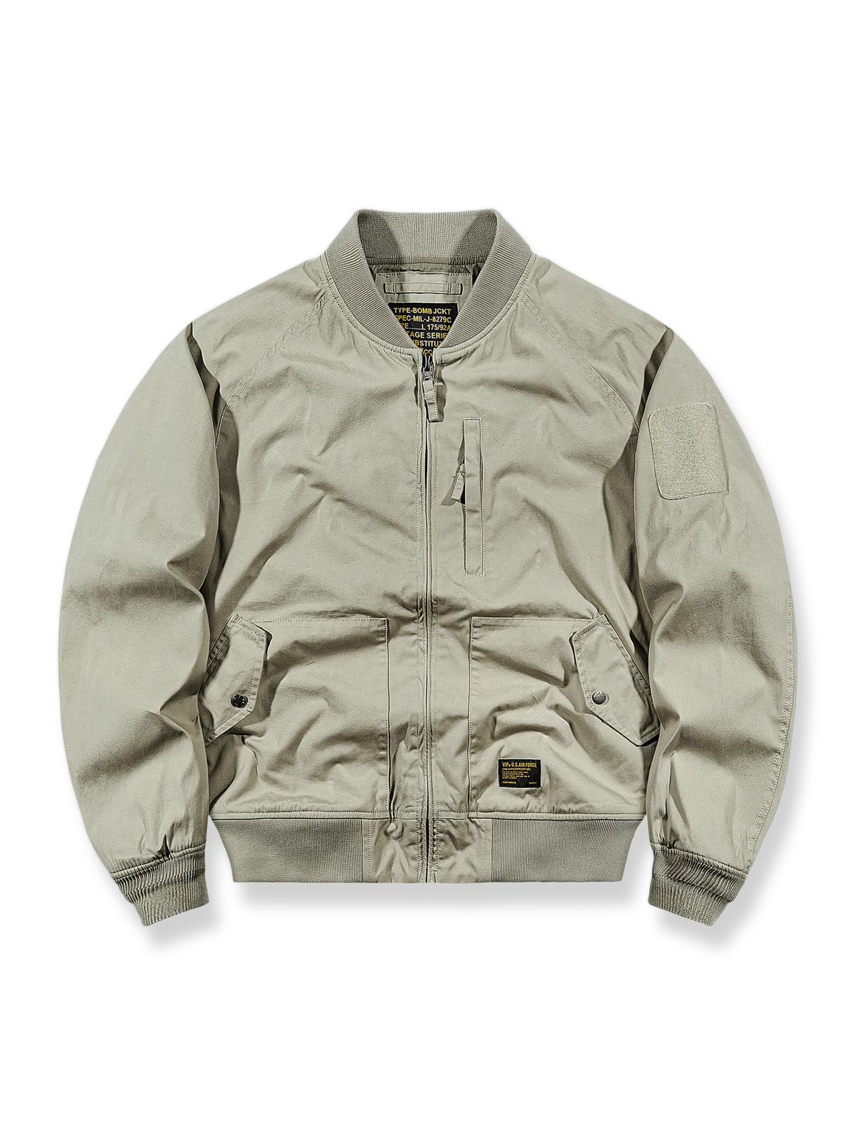 このパイロットジャケットは、クラシックな軍事スタイルを踏襲し、特に第二次世界大戦時のアメリカ軍のパイロットジャケットから着想を得ています。ジャケットは、標準的なフライトジャケットのカットを採用しており、風を防ぎ保温するためのタイトなウエストと袖口のデザインが特徴です。肩と背中の部分はゆったりとしており、着用者に良好な動きの自由度を確保しています。