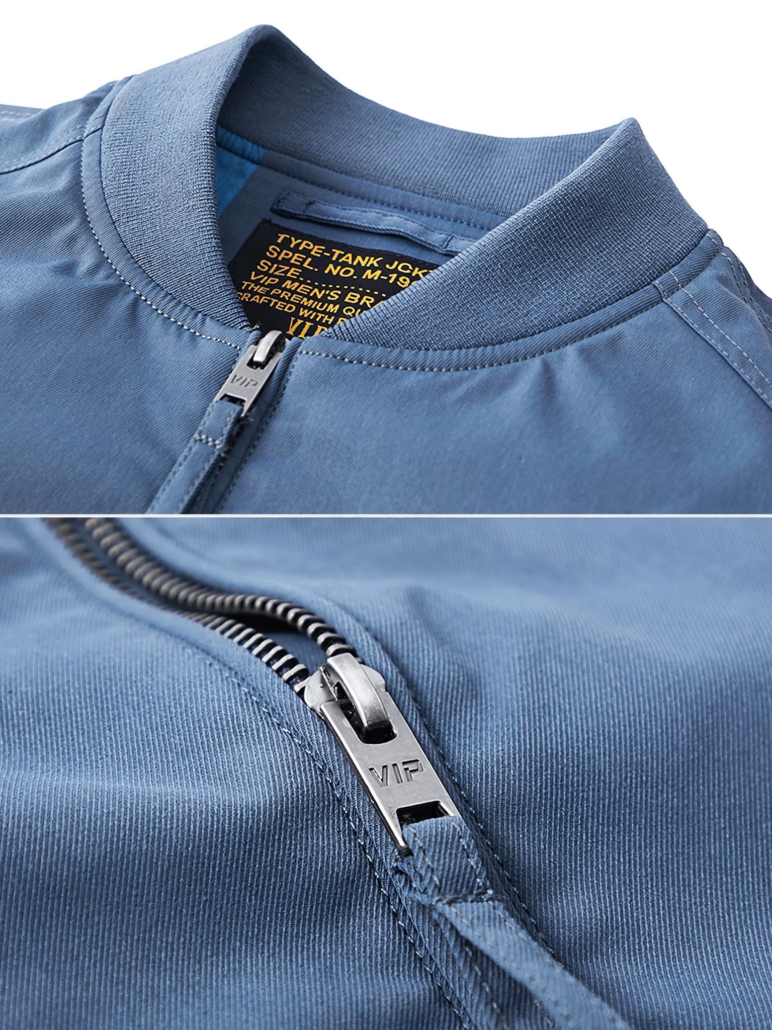 純綿生地は、通常のフライトジャケットとは異なる肌触りを提供します。両色のデニムブルーはどんなスタイルにも合います。