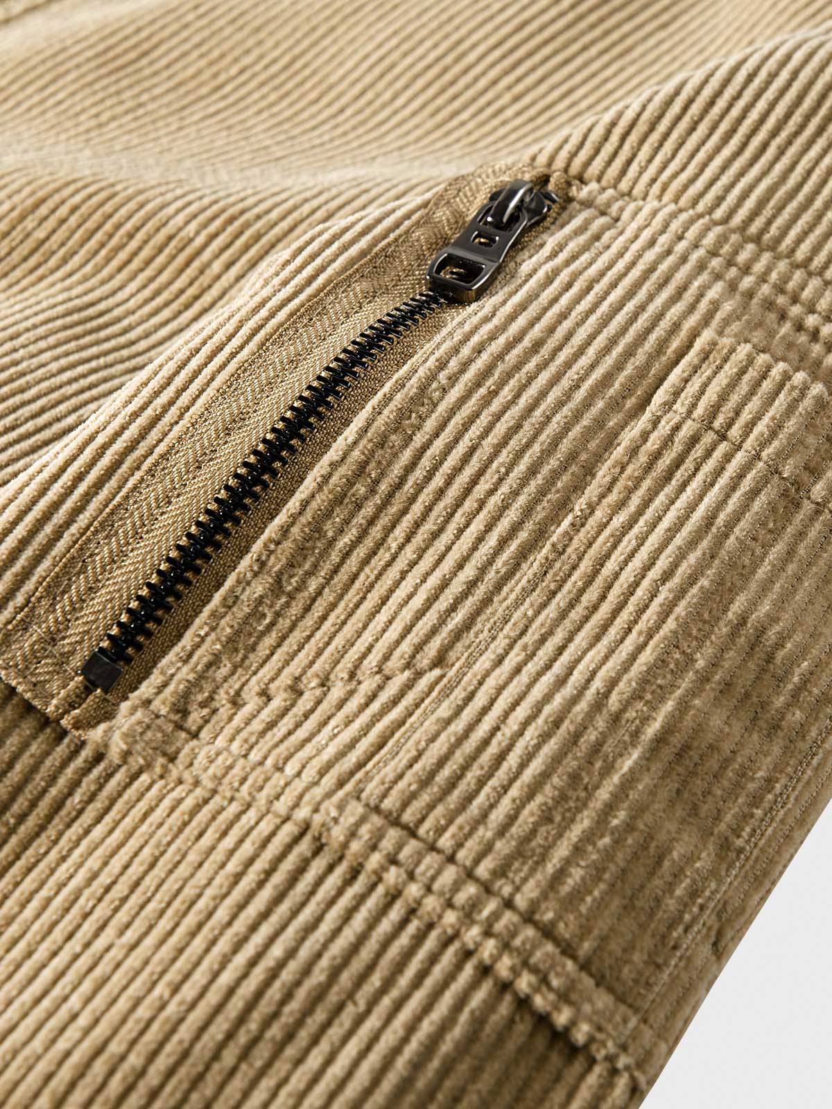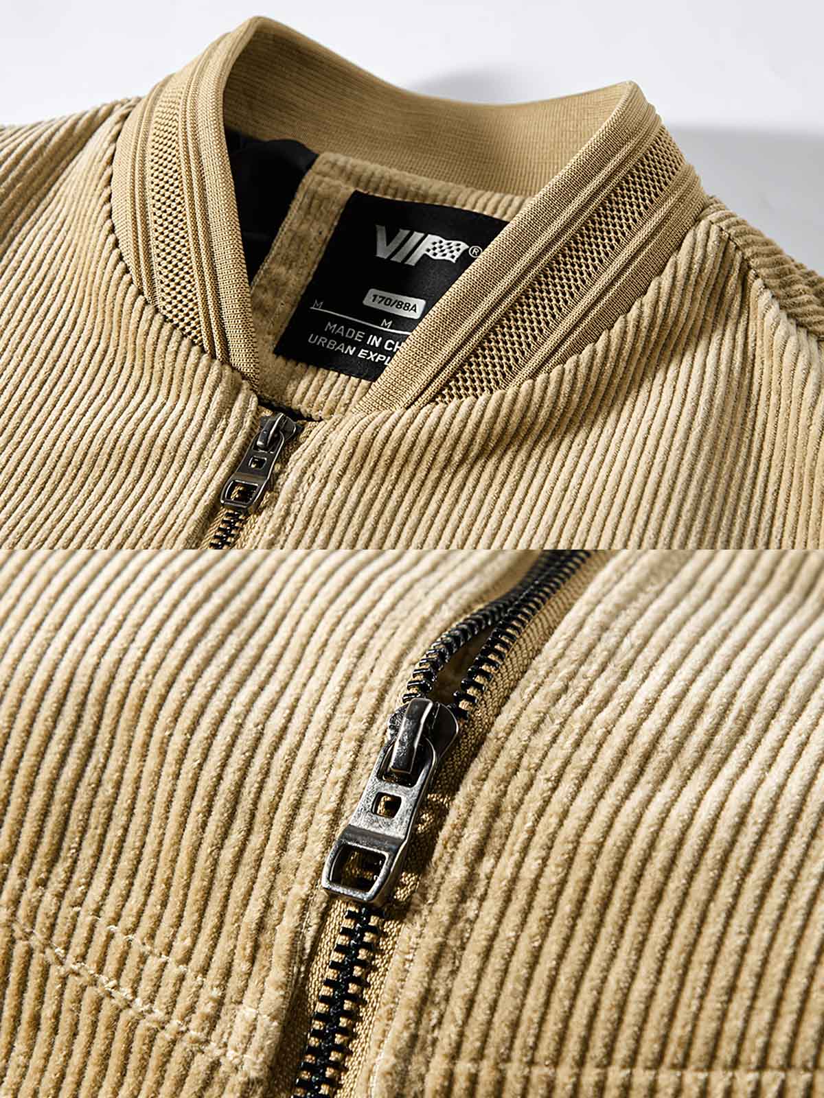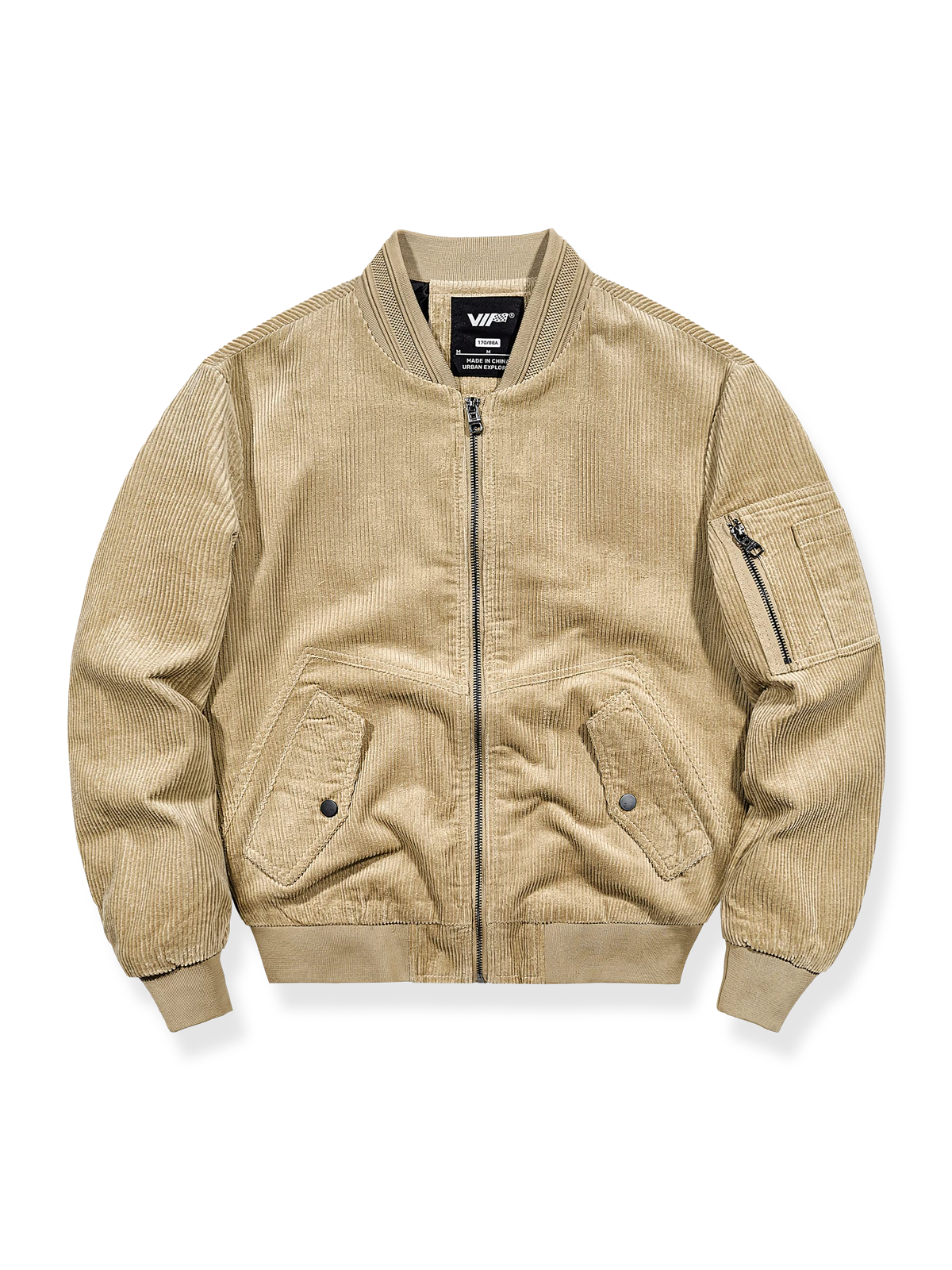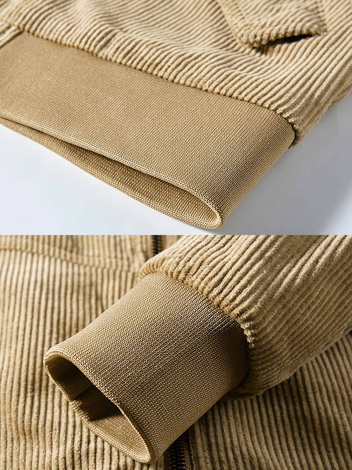 袖口のジッパーポケットやフロントのパッチポケットなど、クラシックなパイロットジャケットのディテールは、オリジナルのデザインの実用性を保持しています。コーデュロイ素材は魅力的で耐久性があり、さまざまな気候条件に適しています。