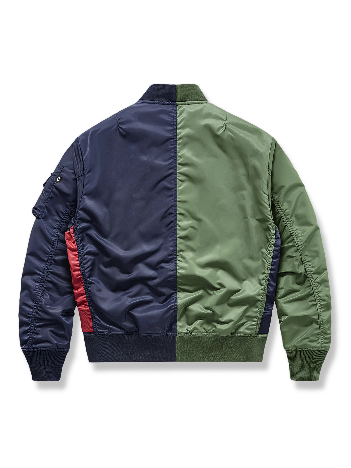このカラーブロッキングのパイロットジャケットは、ベーシックなジーンズやカジュアルパンツと合わせて、カジュアルながらも個性的なファッション感を表現できます。シンプルなスニーカーやカジュアルシューズを合わせることで、全体のスタイルに活気を加えることができます。