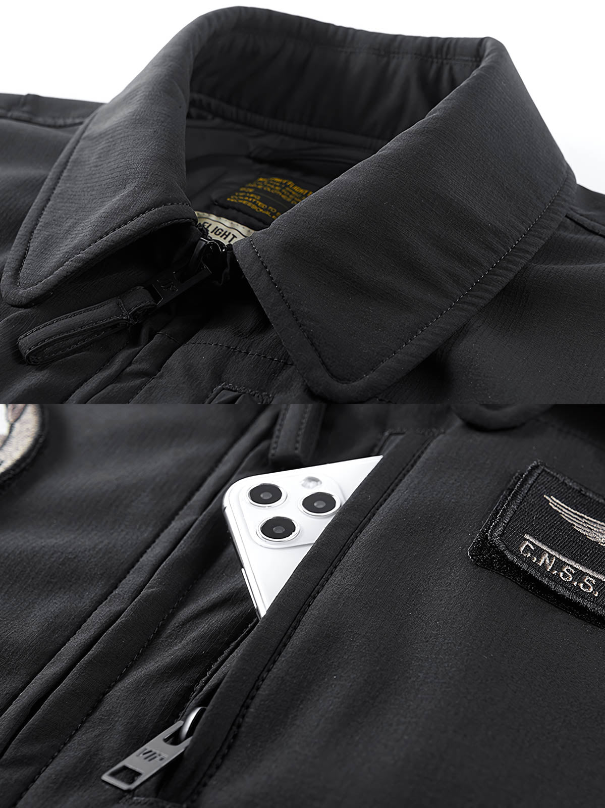 このジャケットは、伝統的なフライトジャケットを基に現代の戦術要素を取り入れています。レトロな刺繍バッジのデザインは、軍事装備の歴史を反映しており、細部にわたるデザインは、軍事精神への敬意と継承を表しています。そのダークトーンと控えめなバッジデザインは、現代都市のシンプルスタイルと軍事服の融合を表現しています。