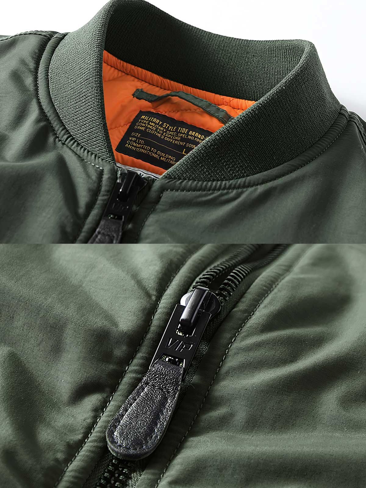 クラシックなパイロットジャケットのディテール、例えばアームポケット、フロントポケット、タイトな袖口と裾は、オリジナルのデザインに忠実でありながら実用性も向上しています。耐久性のある素材と厚手のライニングを使用し、保温性を強化しています。