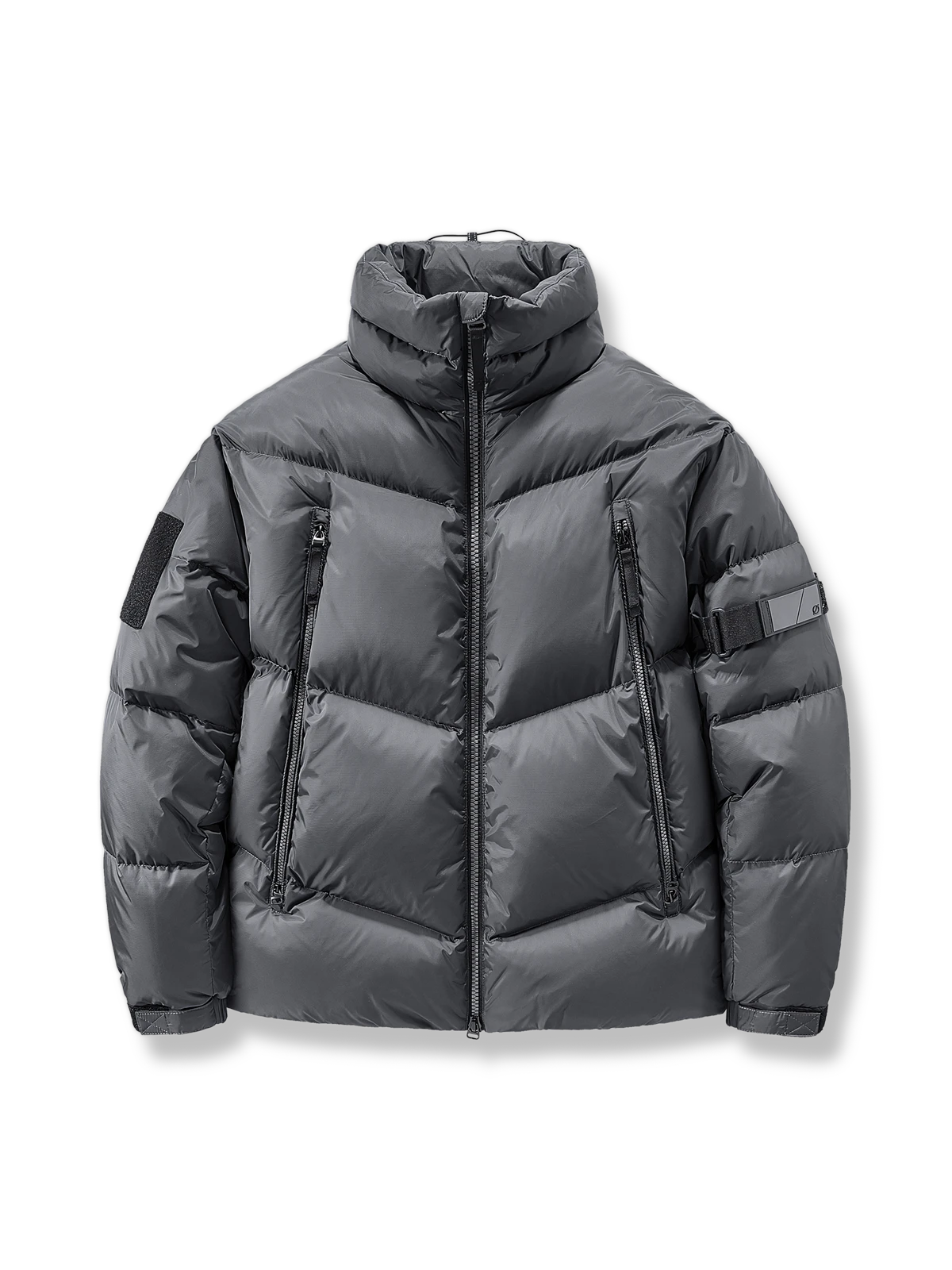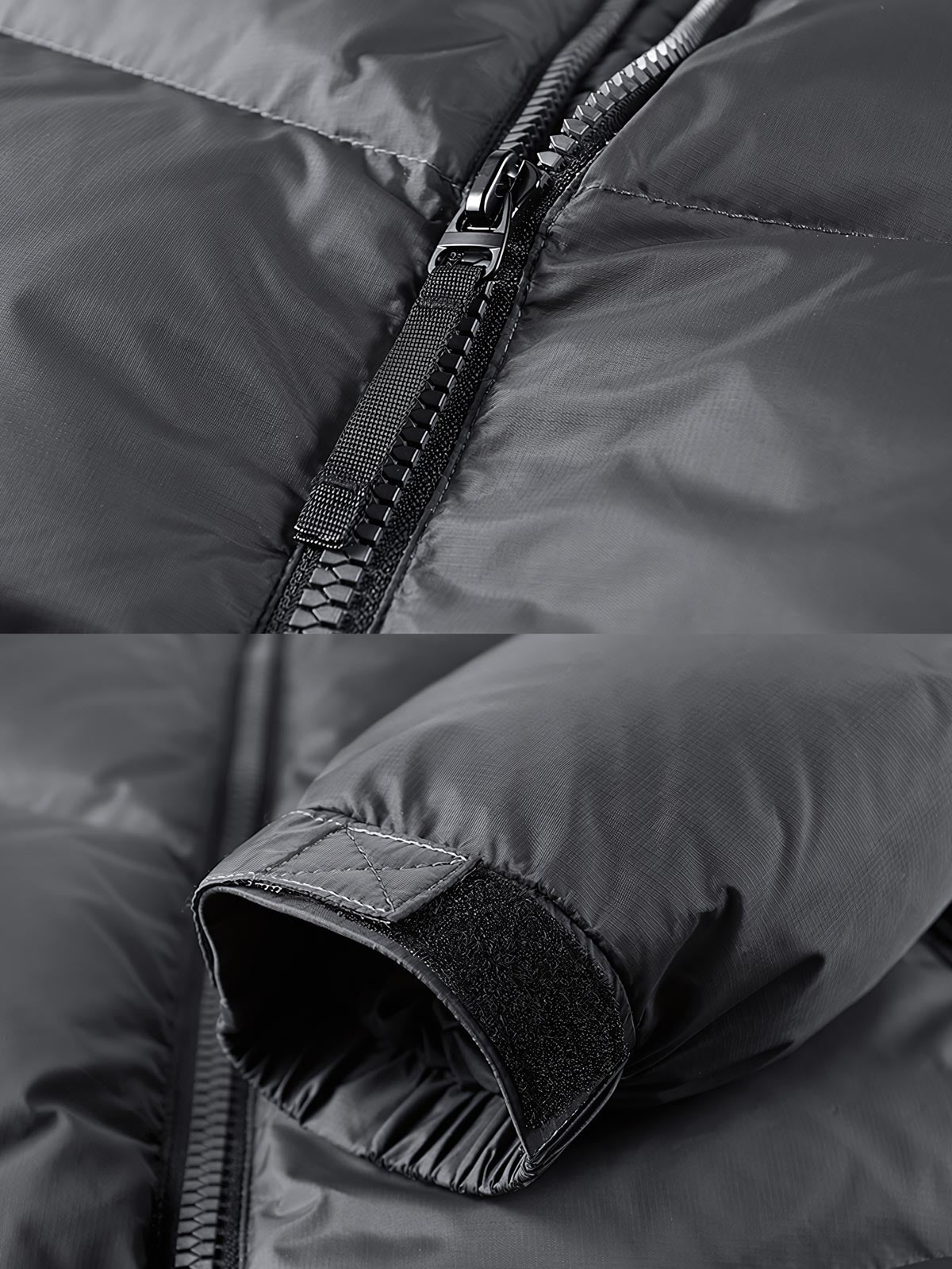 この短丈の機能性ファッション防寒ジャケットは、現代都市生活と極端な天候条件下での理想的な装備です。そのデザインは、現代の都市生活の機能美学を取り入れつつ、伝統的な防寒服の実用性にも学び、現代の都市環境における機能性とファッションの両立を追求しています。機能的なウェビング装飾とマジックテープで調節可能な袖口は、実用性と快適さを高め、同時にジャケットに少しのハードな軍事スタイルを加えています。