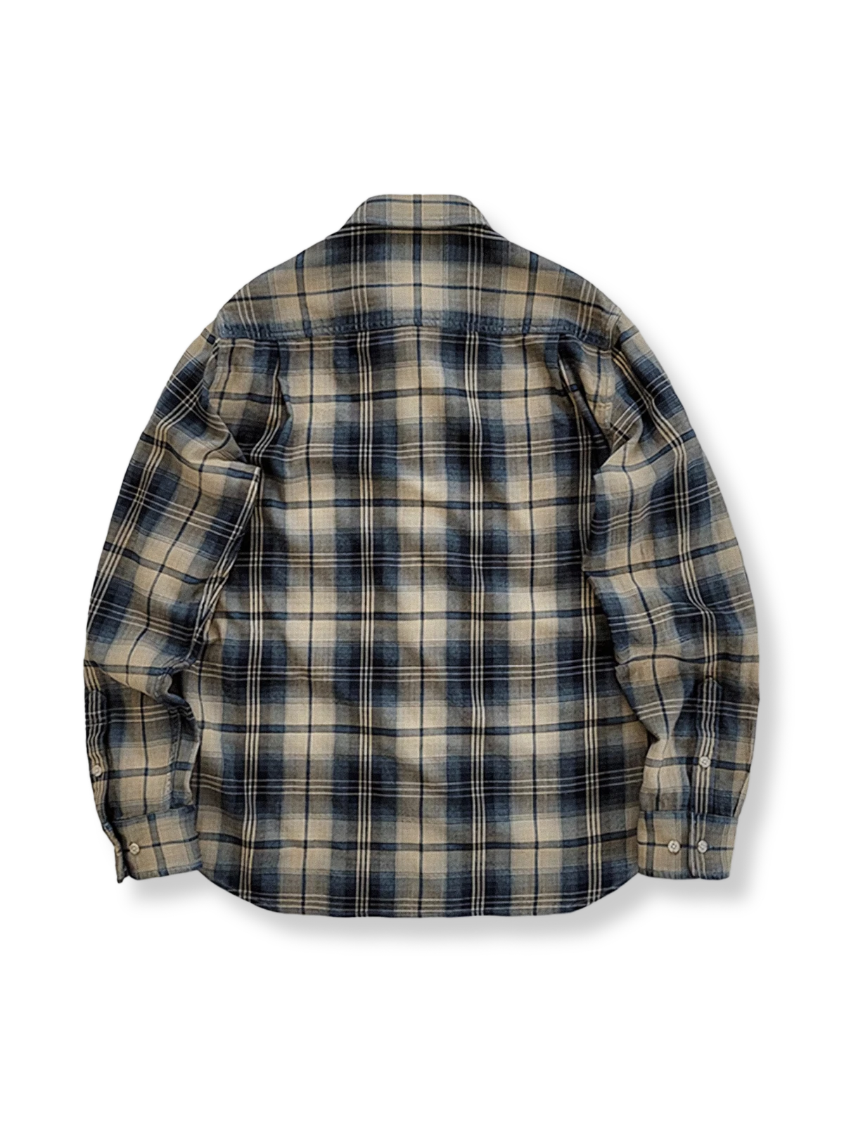 クラシックなアメリカンヴィンテージスタイルのチェックシャツ、独自の染色技術で個性的な風合いを実現。