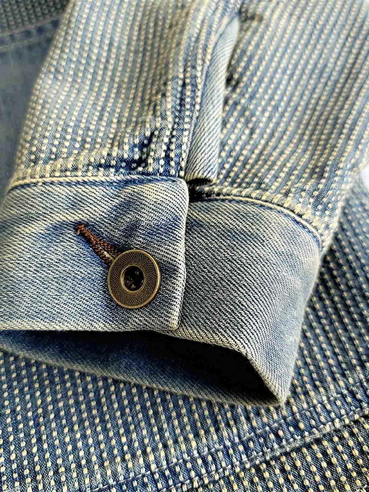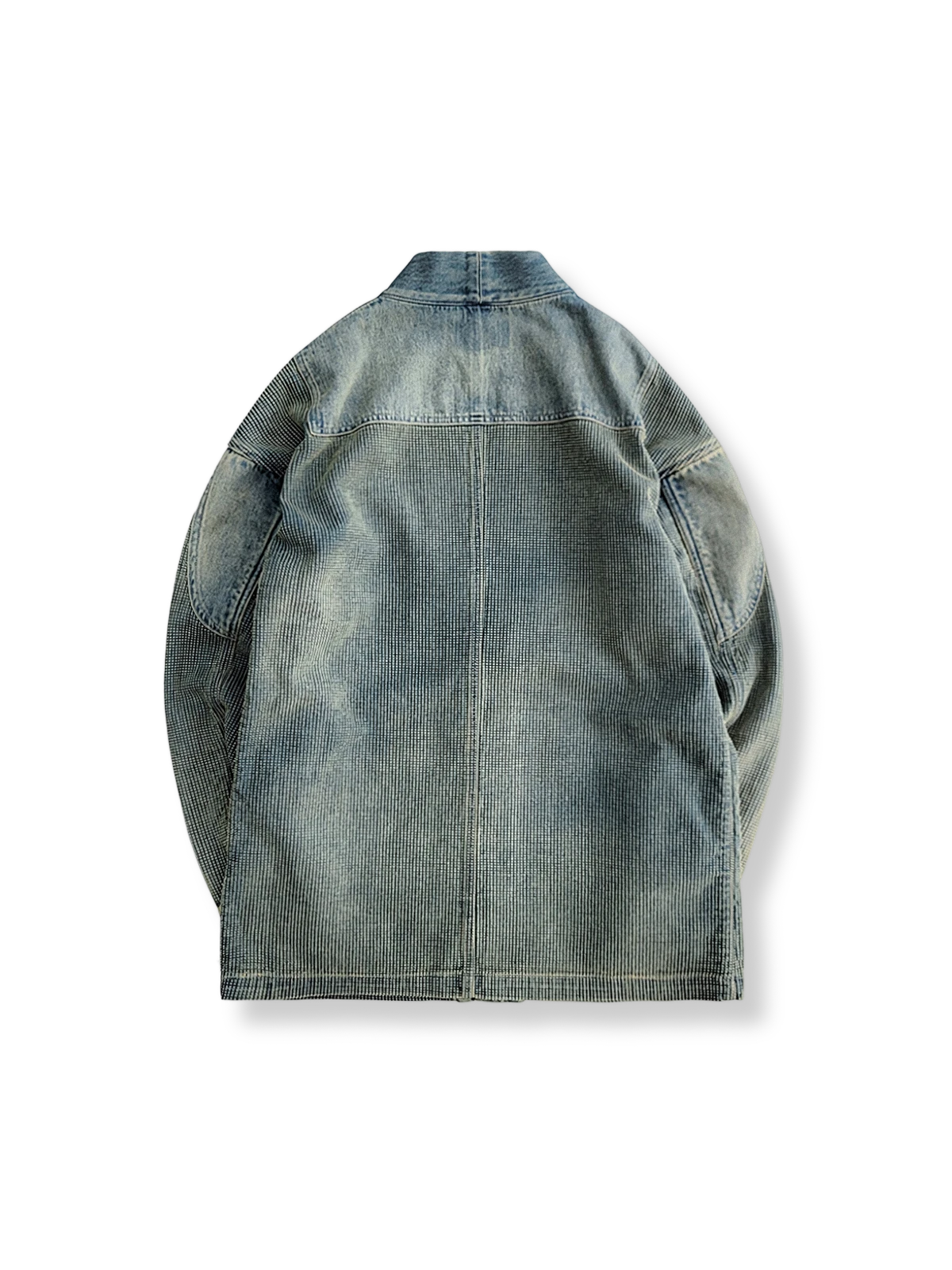 伝統的な藍染めと刺し子技法を融合した、ヴィンテージ風のウォッシュド袢纏ジャケット。