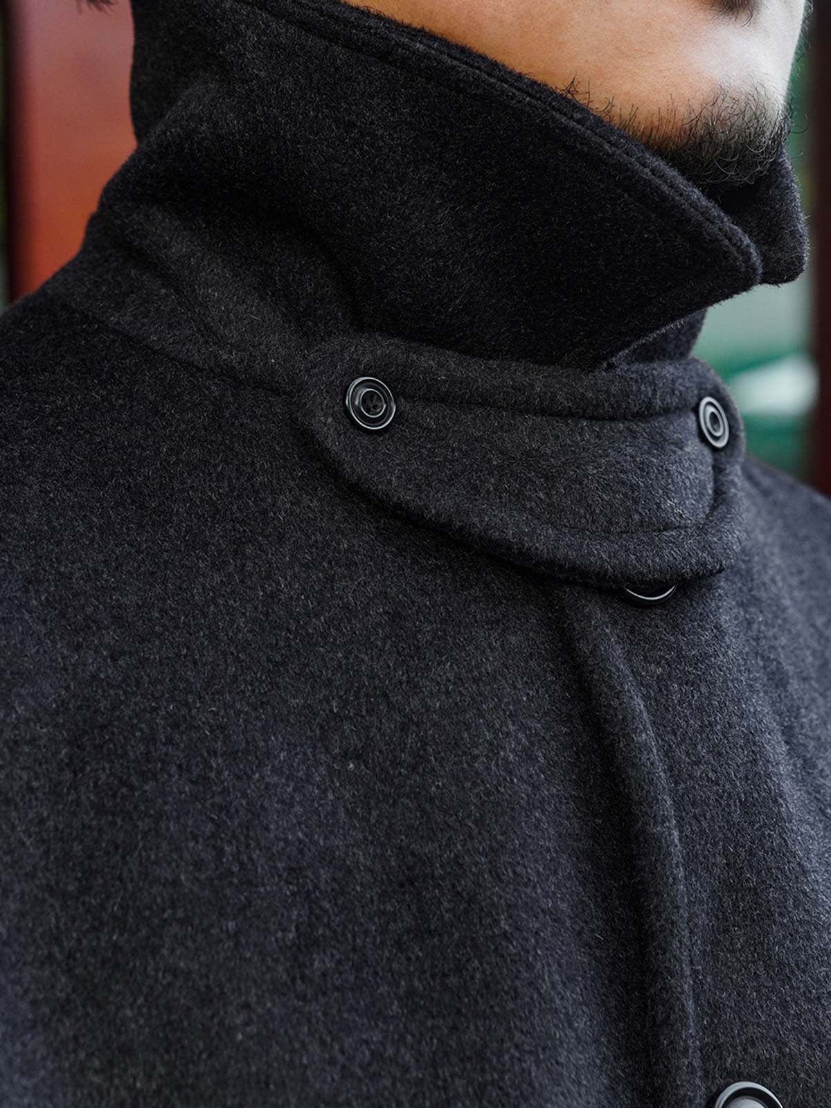 このバルマカーンウールコートは、760gのヘリンボーンウール生地を使用し、80%ウールと20%ポリエステルの混紡で作られています。優れた保温性があり、シワになりにくく、お手入れも簡単で、秋冬の着用に最適です。クラシックなツイードスタイルとロングコートのデザインが相まって、濃厚なヴィンテージ感を醸し出します。裏地にはレーヨンが使用され、通気性を確保しながら静電気を防止し、快適な着心地を提供します。ウエストベルトが付属しており、ウエストラインを強調することができ、カジュアルな装いからフォーマルなスタイルまで幅広く活躍します。