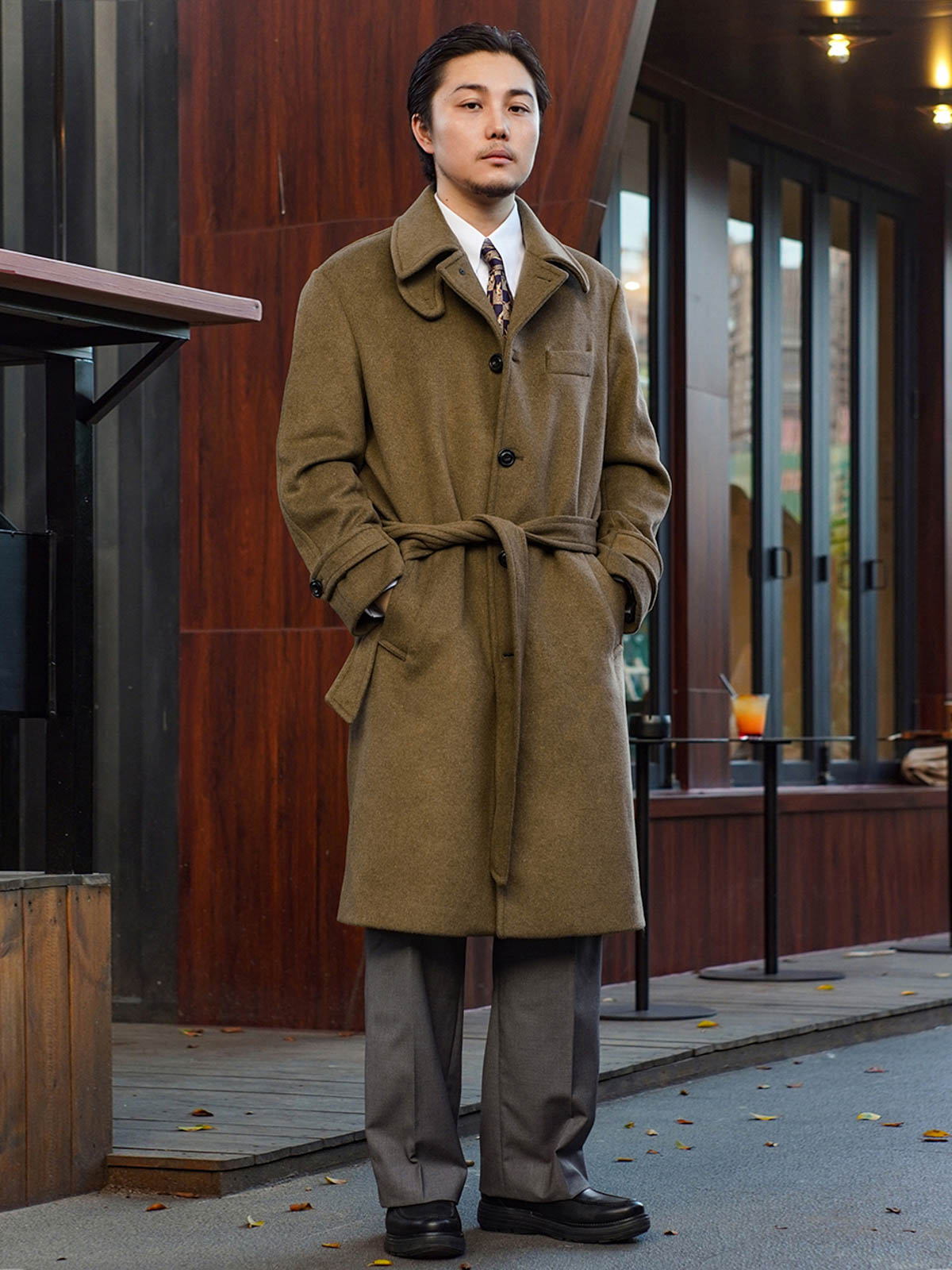 このバルマカーンウールコートは、760gのヘリンボーンウール生地を使用し、80%ウールと20%ポリエステルの混紡で作られています。優れた保温性があり、シワになりにくく、お手入れも簡単で、秋冬の着用に最適です。クラシックなツイードスタイルとロングコートのデザインが相まって、濃厚なヴィンテージ感を醸し出します。裏地にはレーヨンが使用され、通気性を確保しながら静電気を防止し、快適な着心地を提供します。ウエストベルトが付属しており、ウエストラインを強調することができ、カジュアルな装いからフォーマルなスタイルまで幅広く活躍します。