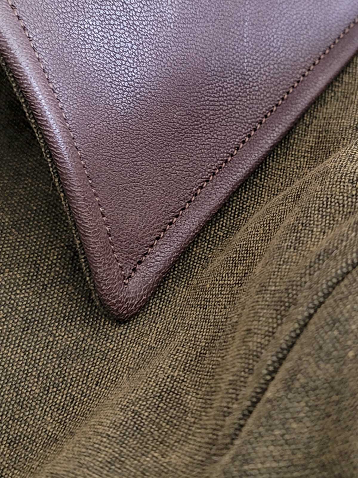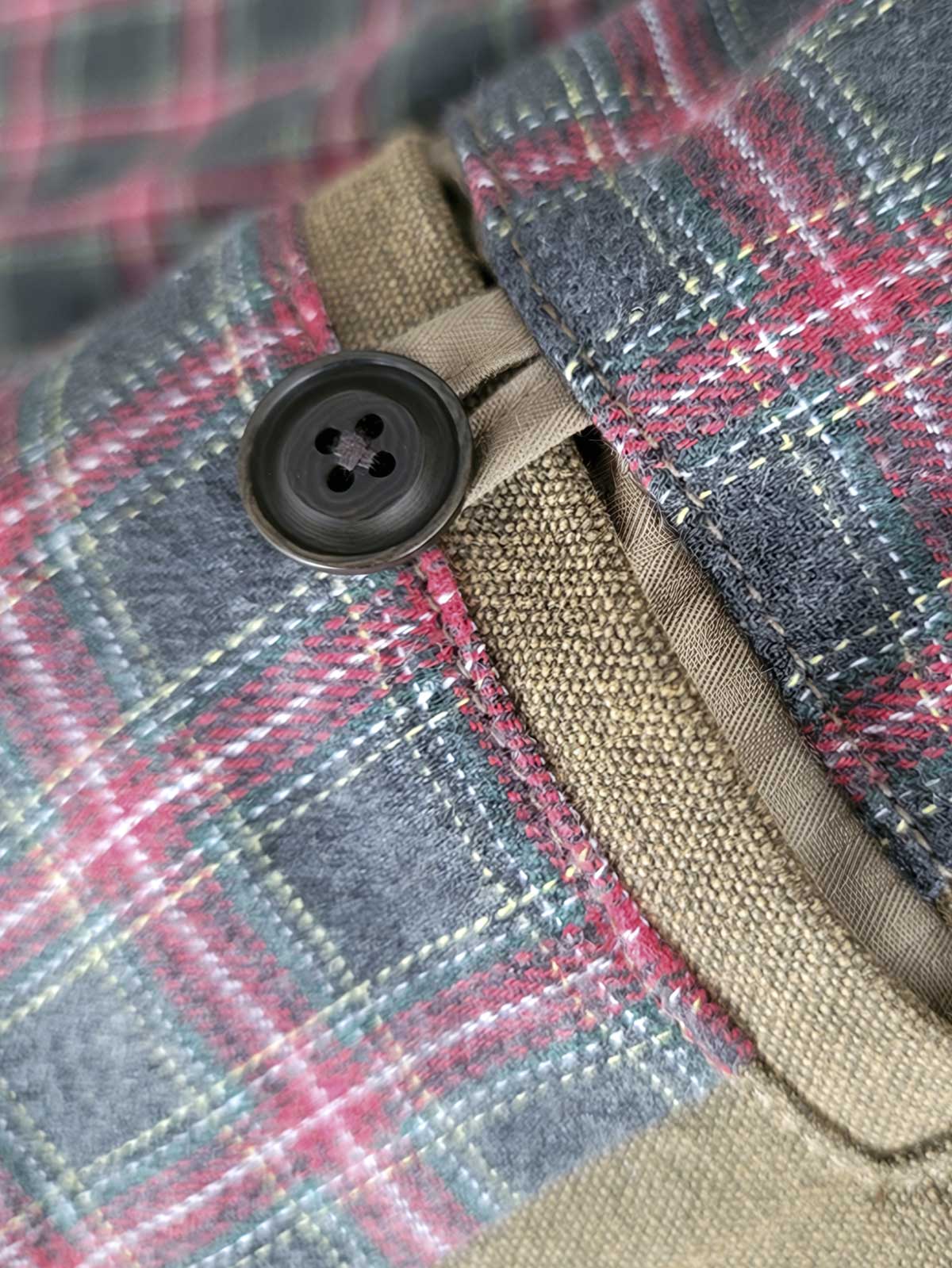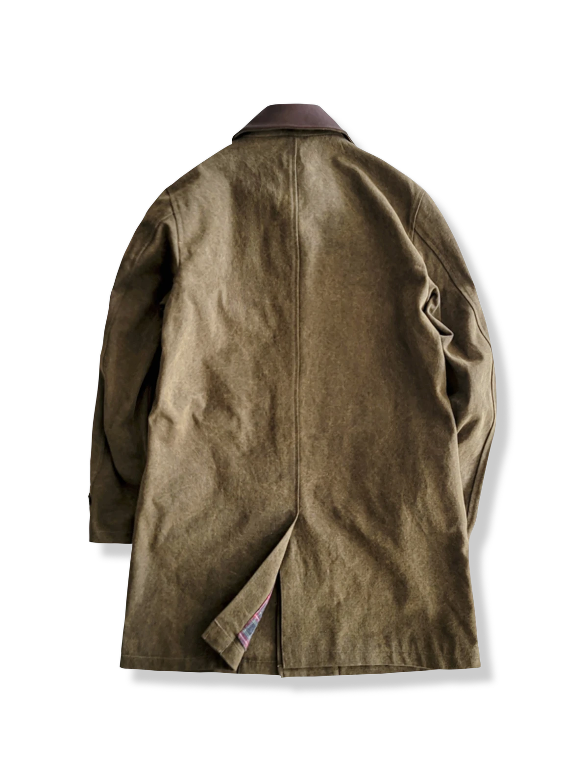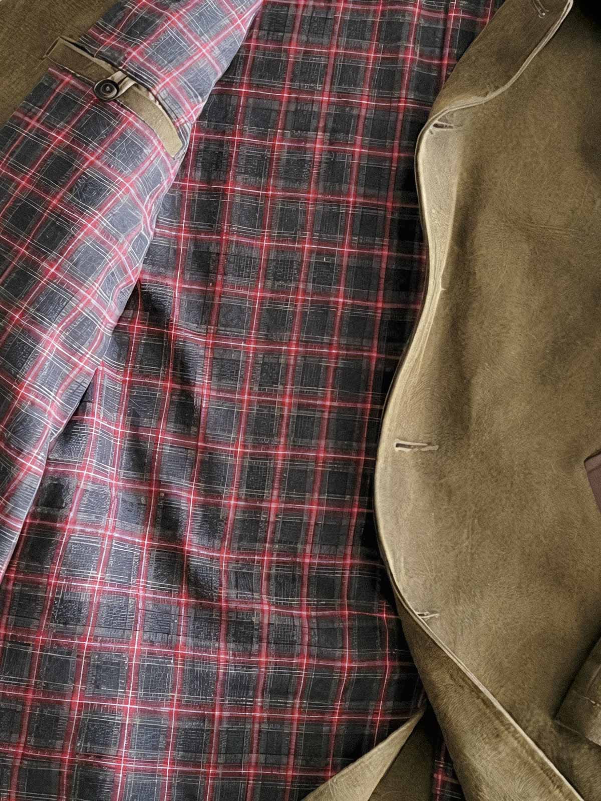 高品質の生地を使用し、耐久性と快適さを提供します。キャメル色は、レトロなエレガンスを加え、内側のチェック柄ライニングはクラシックなデザインに独特なディテール感を加えています。さらに、ポケットのレザートリムも細部へのこだわりを表現しています。