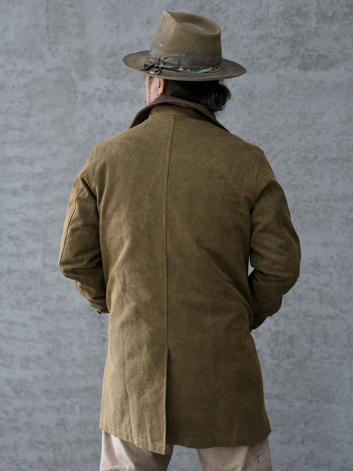 トレンチコートは20世紀初頭に起源し、兵士が戦場で悪天候に対抗するための実用的な服装でした。このミディアム丈のコートは、ターンダウンカラーとシングルブレストデザインを採用し、その時代のデザインを反映しており、クラシックでありながらファッショナブルな雰囲気を演出しています。