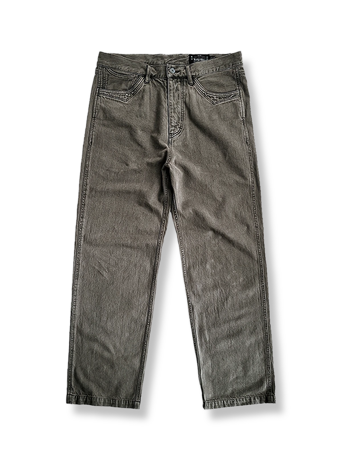 クラシックな鉱山作業スタイルを再現した、100%コットンのヴィンテージ直筒デニムパンツ。