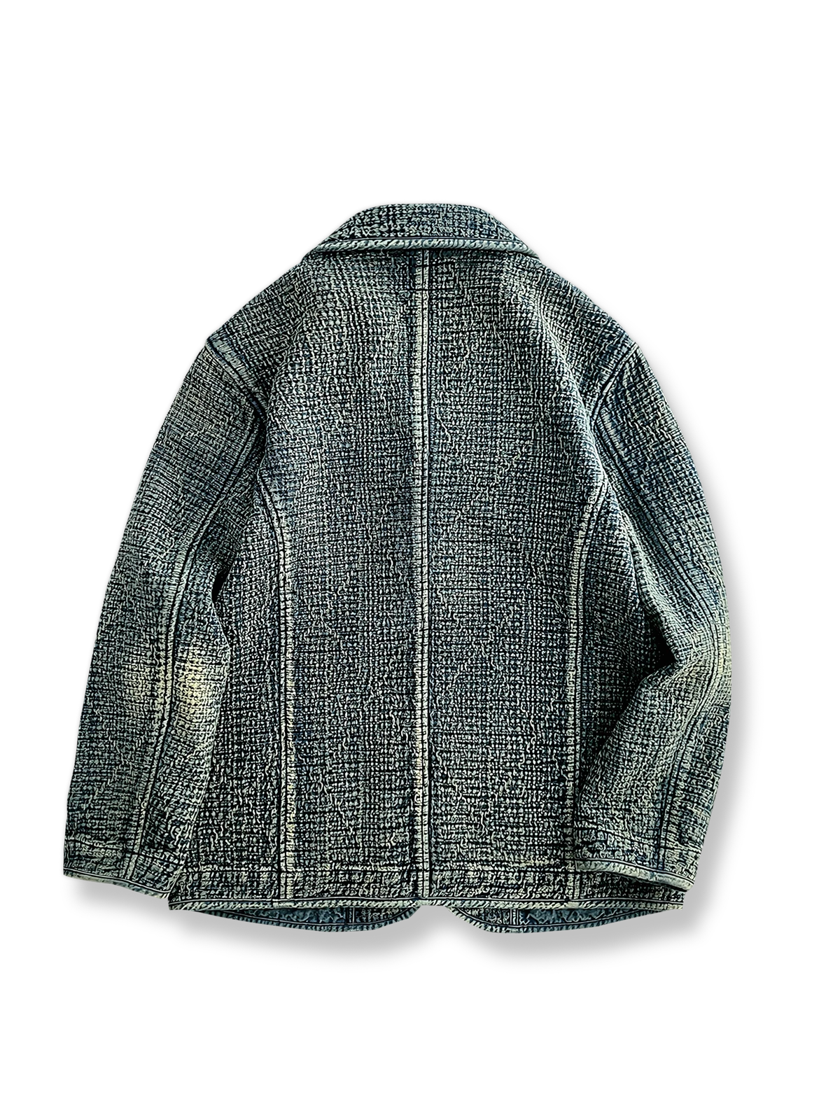 藍染刺子布と抜染加工を組み合わせた、独自の風合いを持つヴィンテージテーラードジャケット。