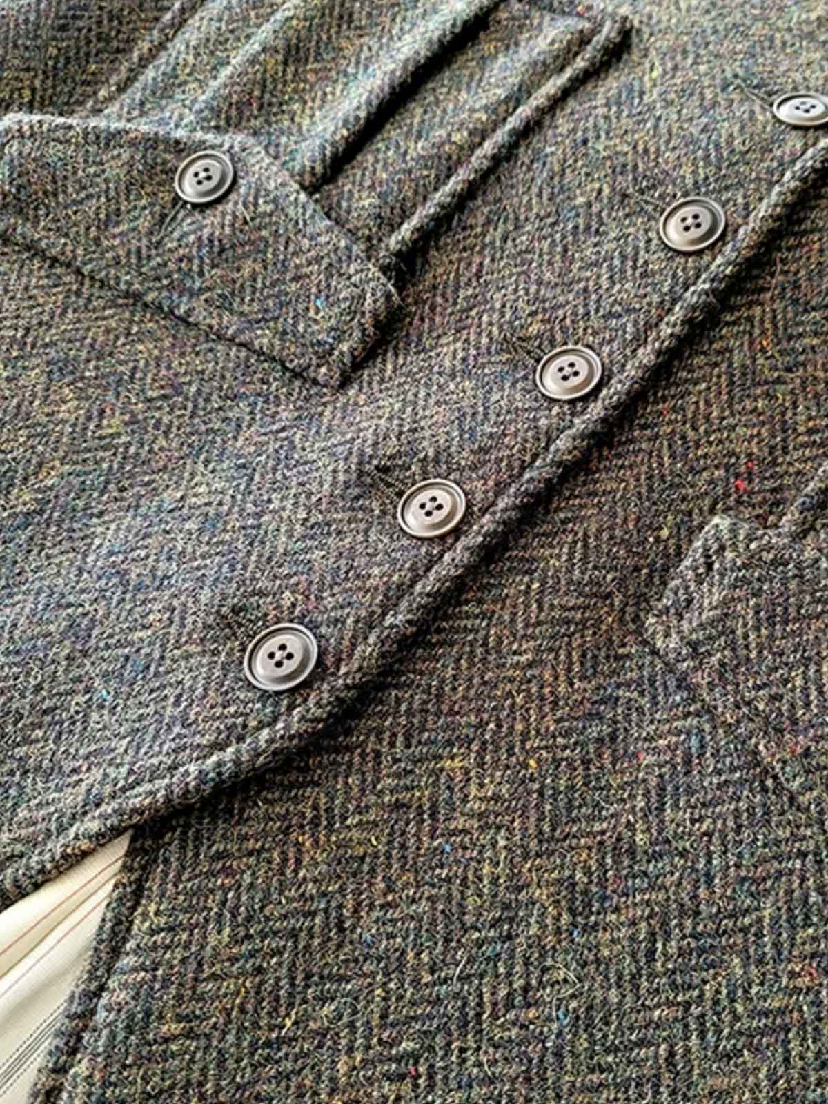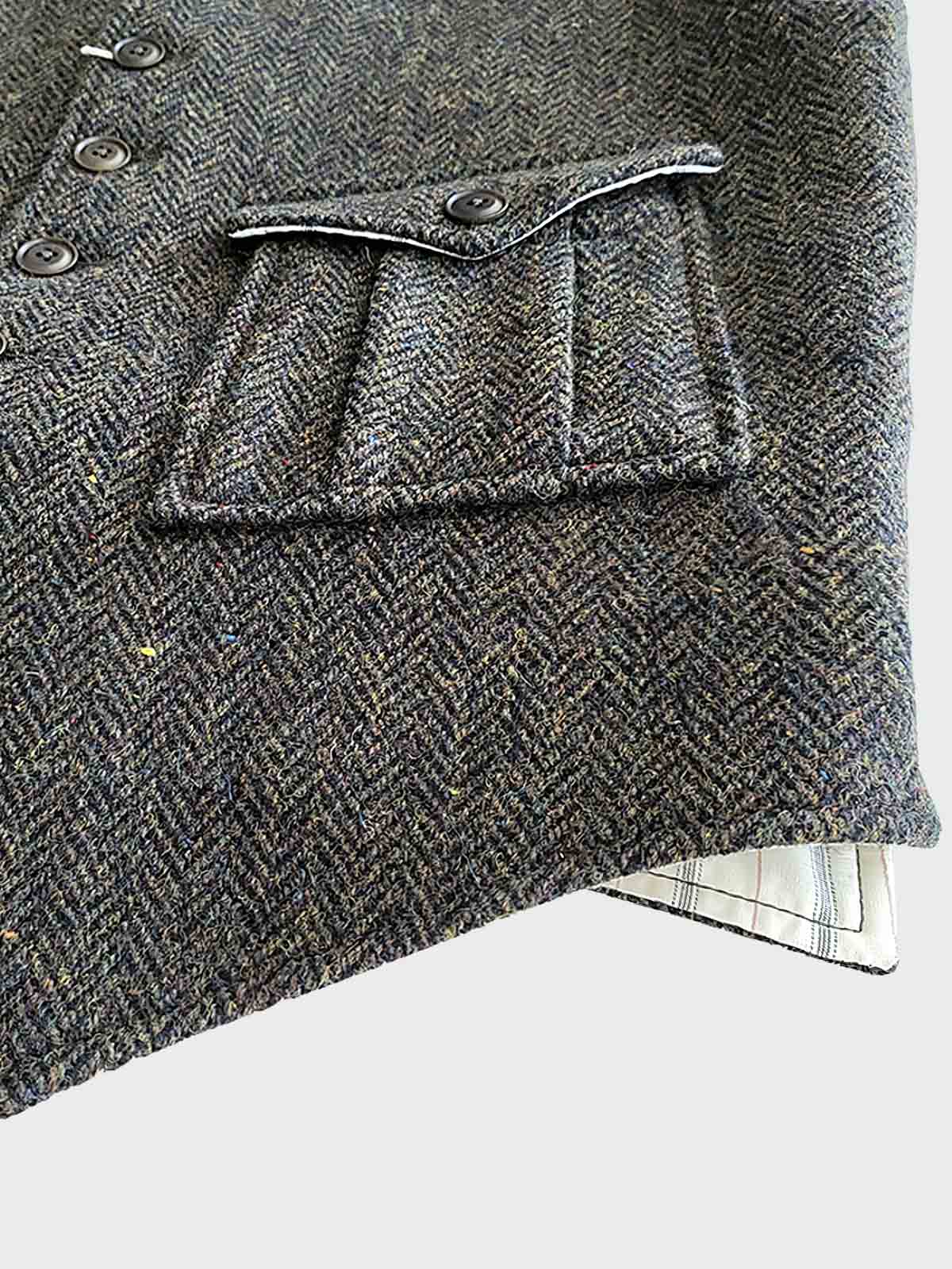 このベストはクラシックなヘリンボーンツイード織りとダークグリーンのカラーを組み合わせ、濃厚なヴィンテージビジネススタイルを演出します。100%ウール素材で優れた保温性と快適性を提供します。前面には複数のポケットがあり、実用性を高めつつ、全体の見た目に深みを加えています。精巧なボタンデザインと背面の調整可能なストラップにより、フィット感が向上。シャツやカジュアルなTシャツと合わせることで、簡単にヴィンテージビジネススタイルを作り出すことができます。