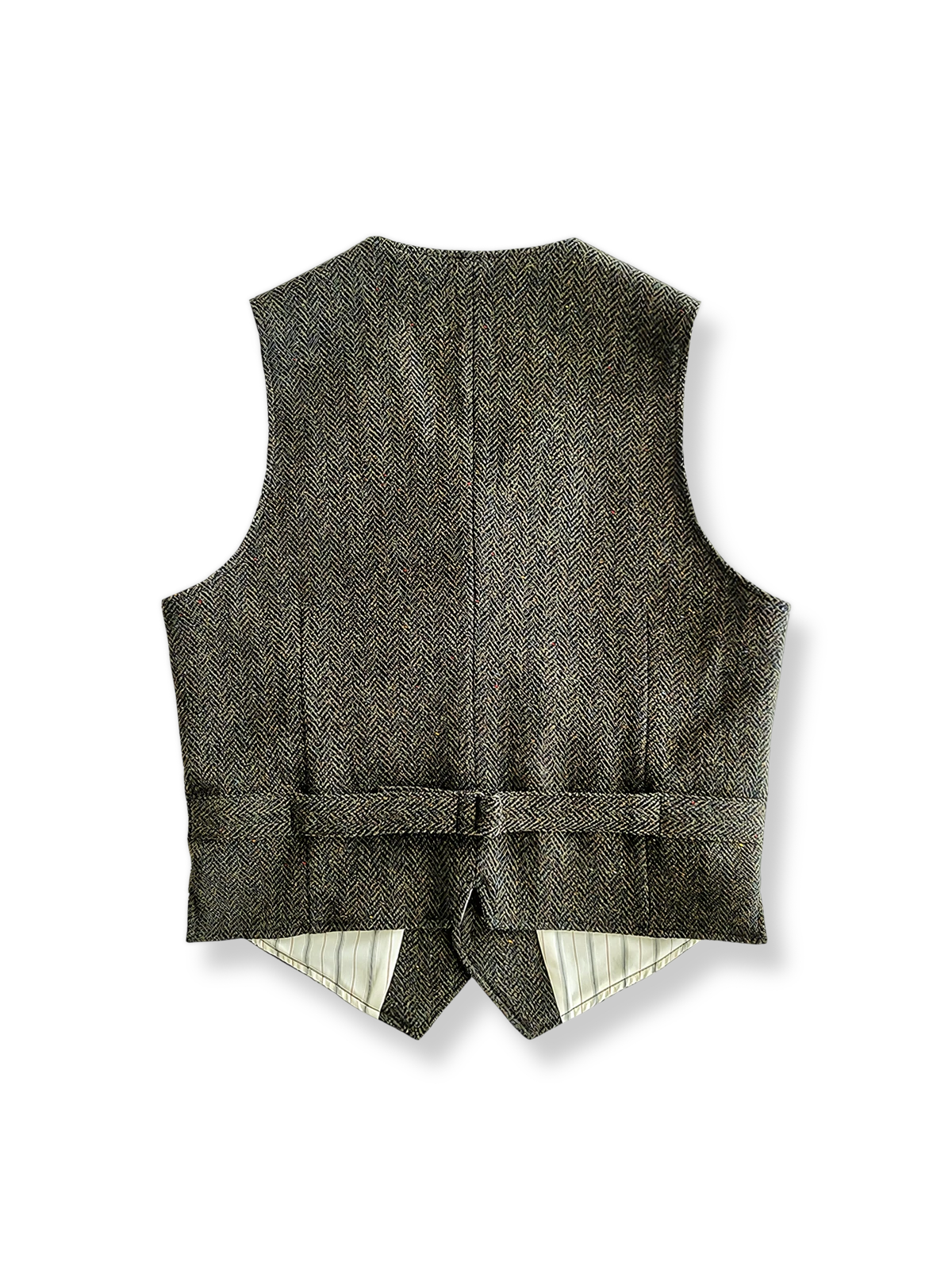 ラシックなヴィンテージとビジネススタイルを融合させたダークグリーンのヘリンボーンツイードベスト。