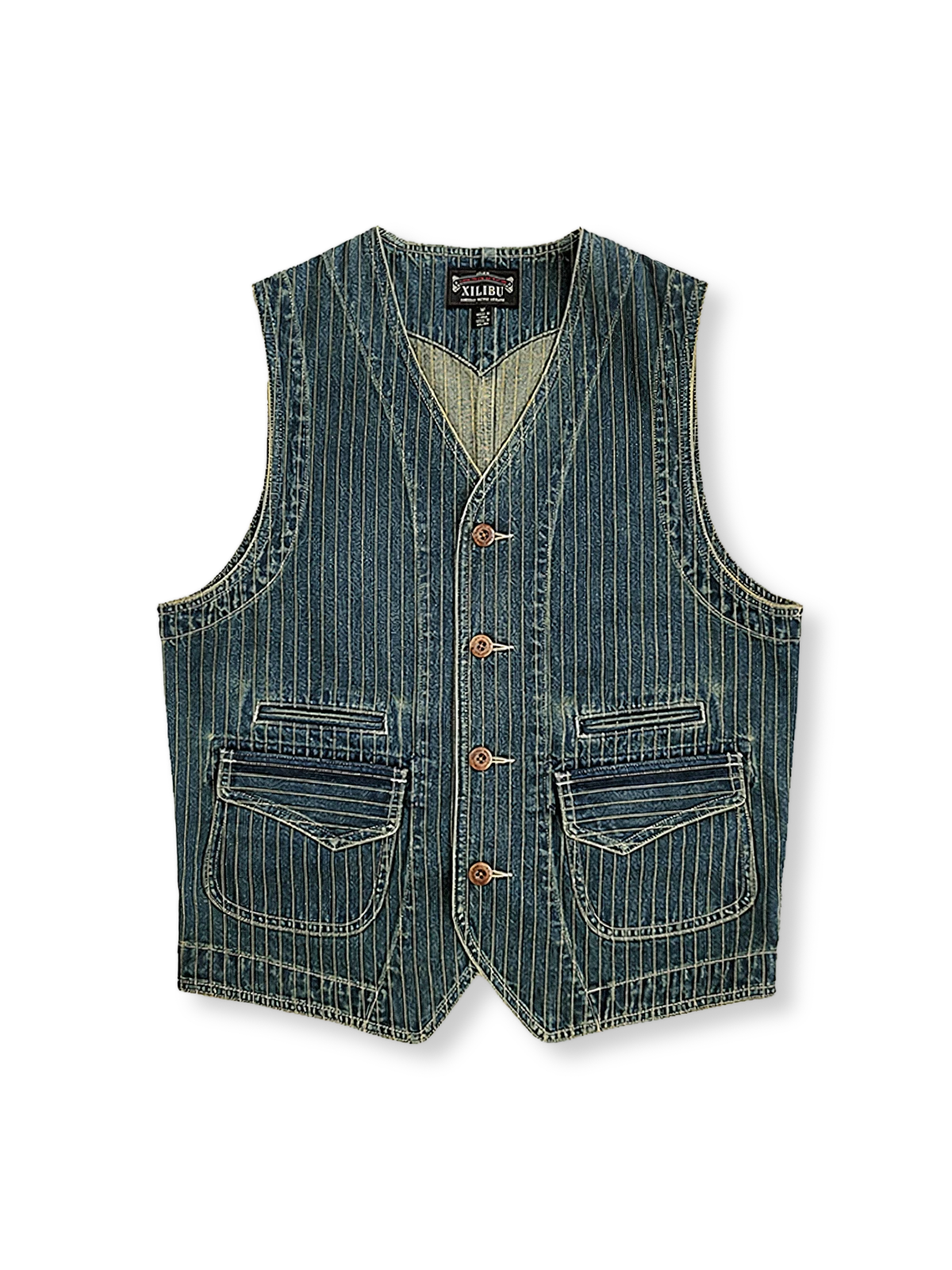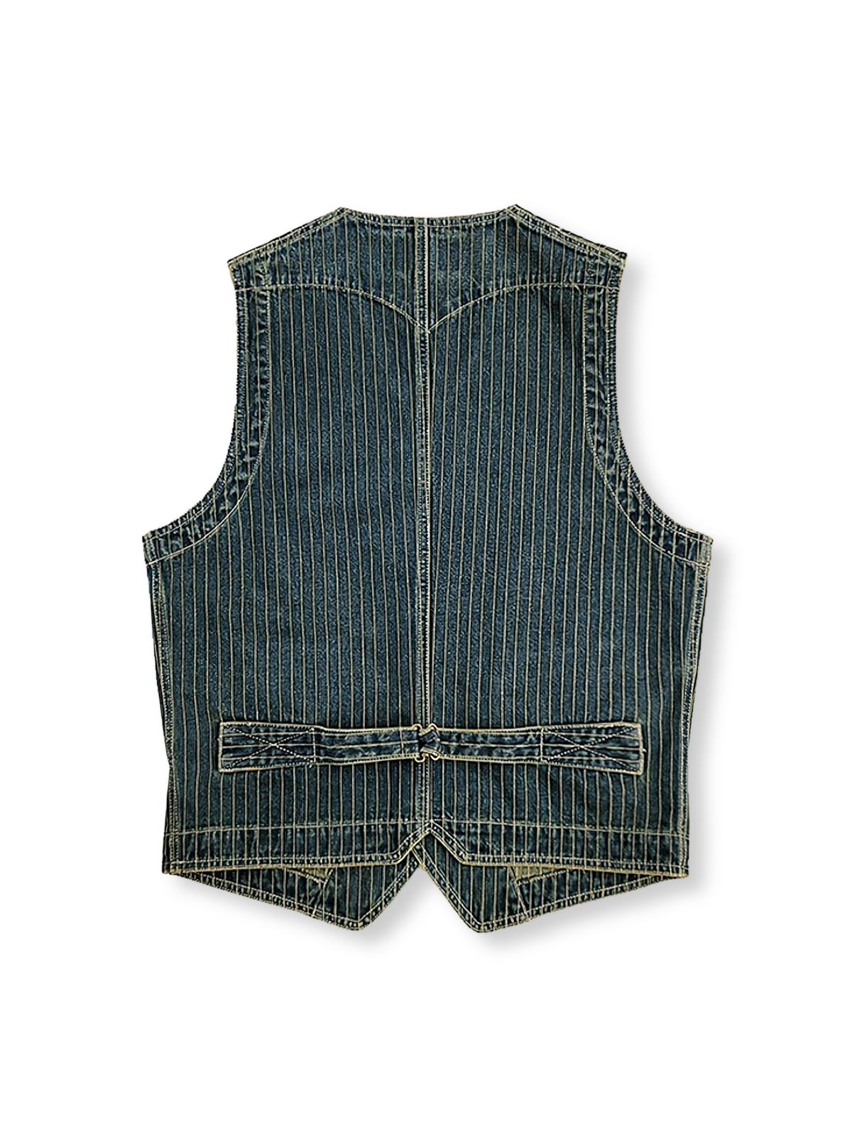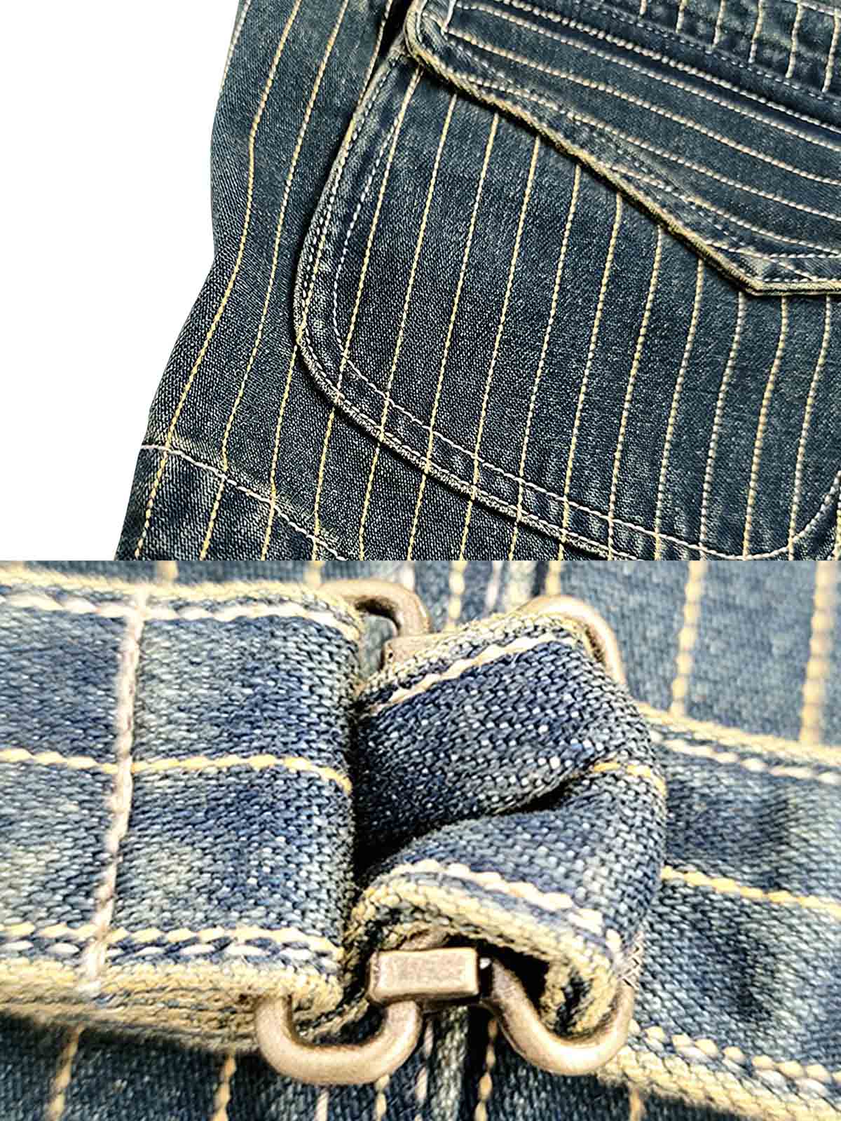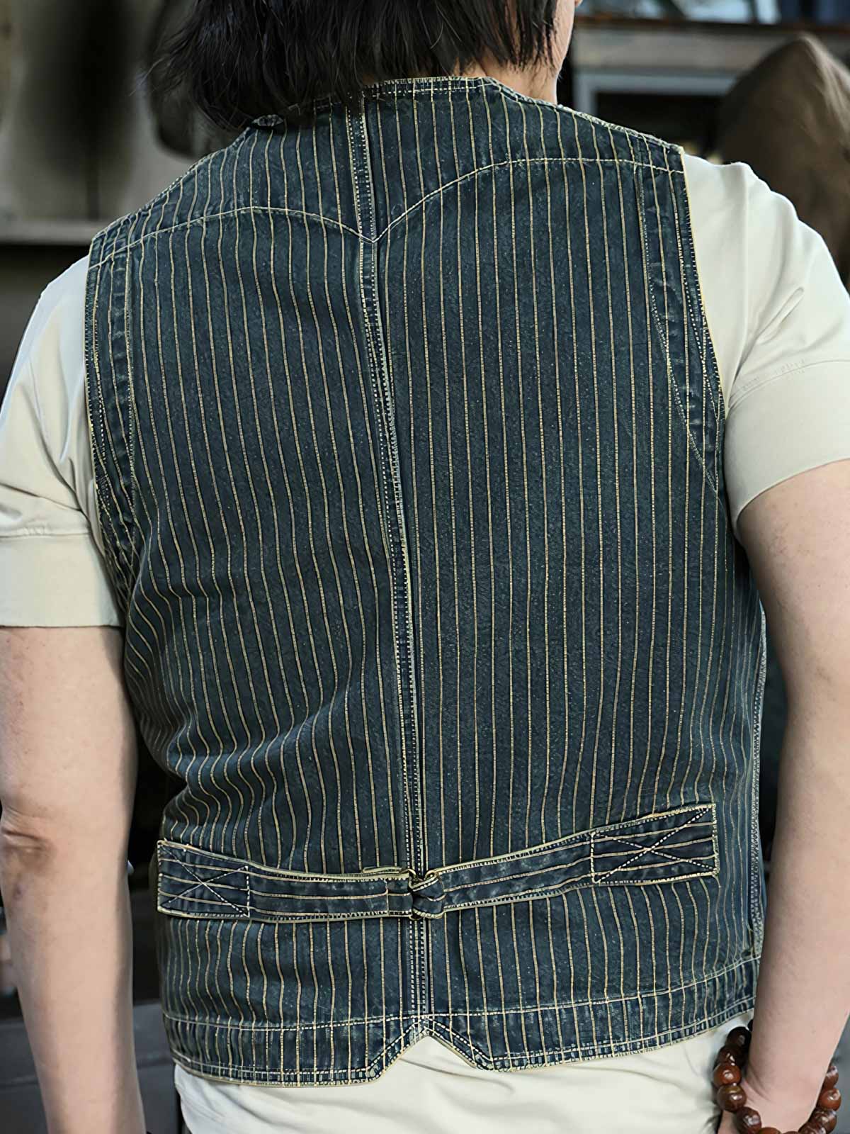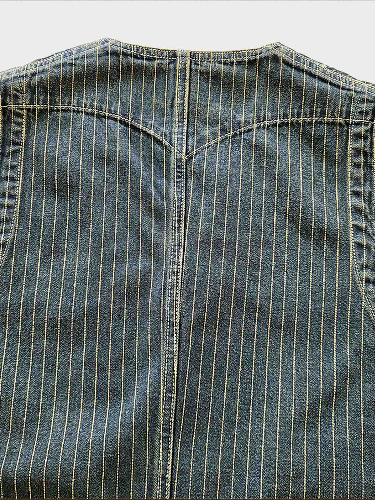 クラシックなストライプデザイン、オールコットン素材のヴィンテージデニムベスト。