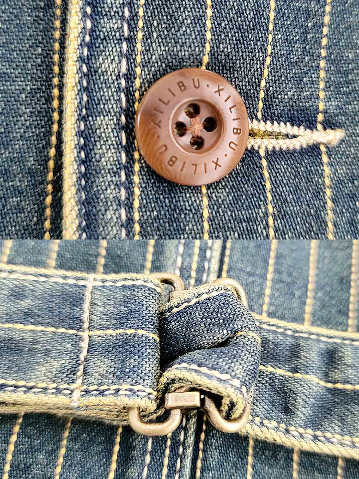 このベストは100%こうきゅうコットンデニム素材を使用しており、柔らかく通気性が良く、着心地も快適です。クラシックなストライプデザインとパリスバックル、懐中時計用ポケットが組み合わさり、濃厚なヴィンテージスタイルと精巧なディテールを演出しています。前面の複数のポケットデザインは実用性を高めるだけでなく、全体のデザインに奥行きを加えています。日常のカジュアルなシーンからフォーマルなシーンまで、さまざまな場面で着用でき、異なるヴィンテージスタイルを簡単に作り出すことができます。独特のファッションセンスを表現するのに最適です。