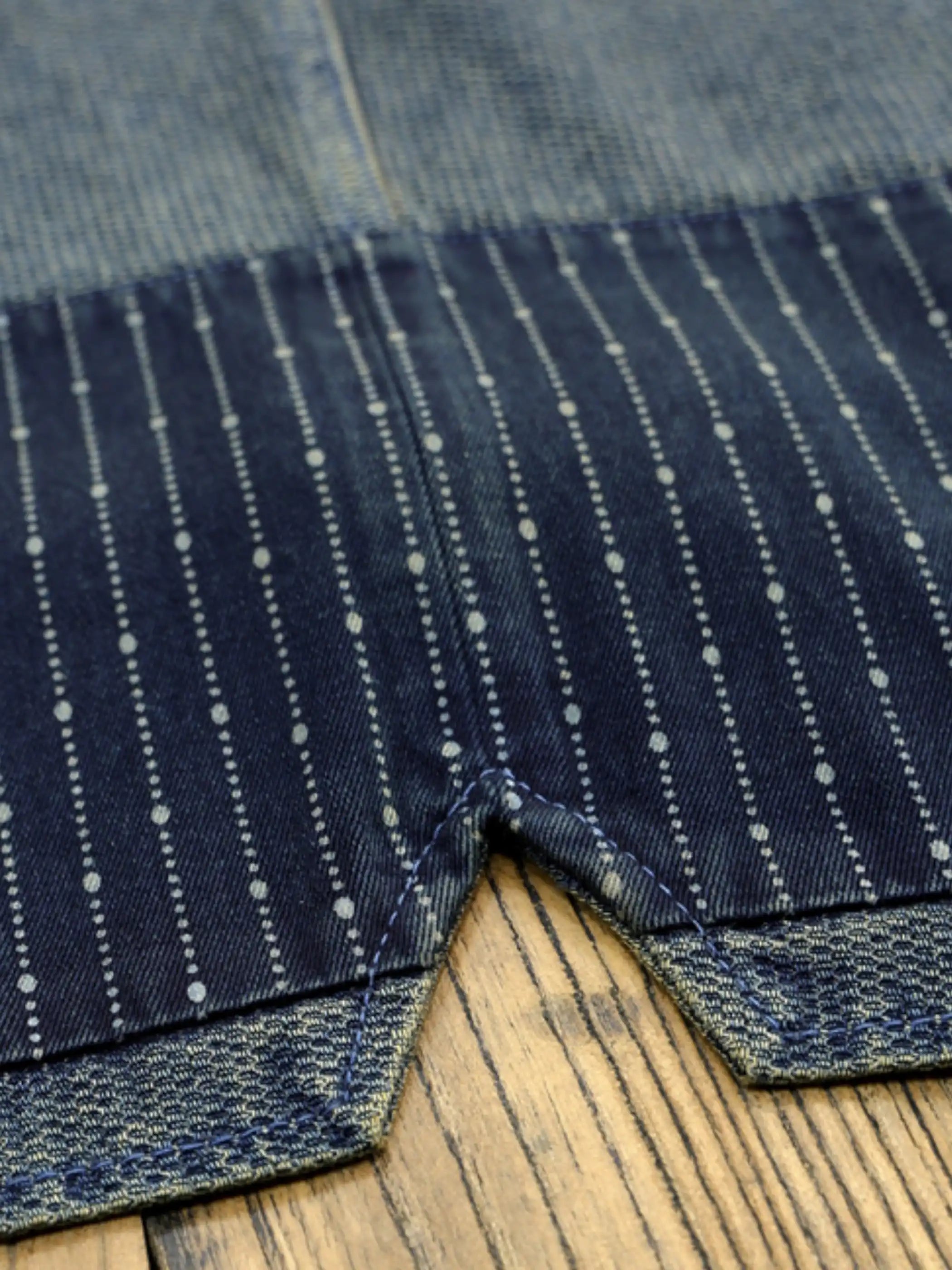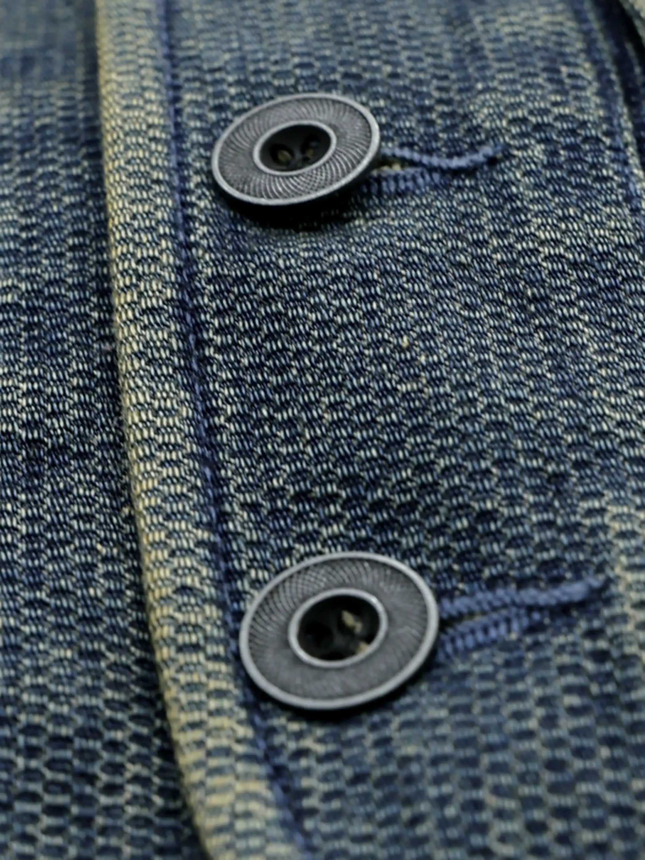 このデニムベストは、ハニカム模様の個性と使い勝手の良さを兼ね備え、ユニセックスに楽しめるレトロな逸品です。