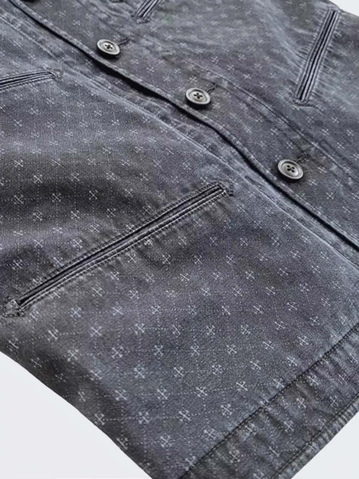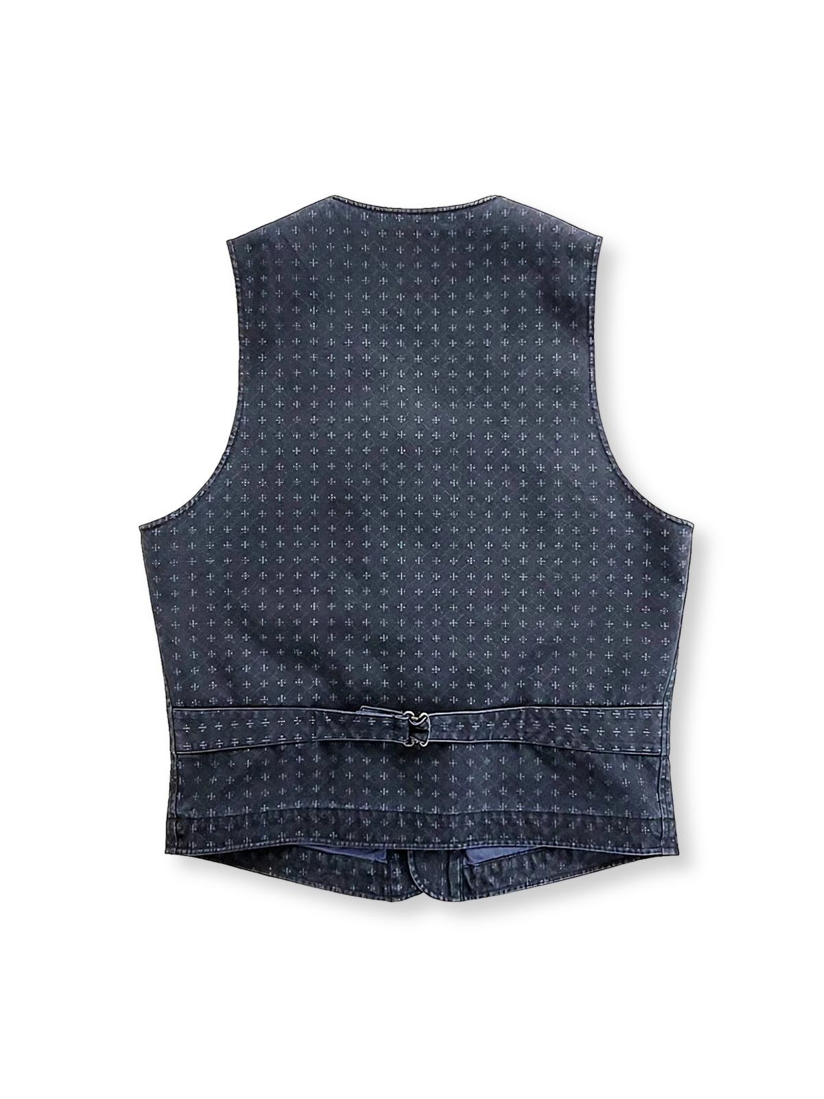 ヴィンテージ感溢れるウォッシュドジャカードベスト、独特な工芸で一つ一つがユニークな仕上がり。