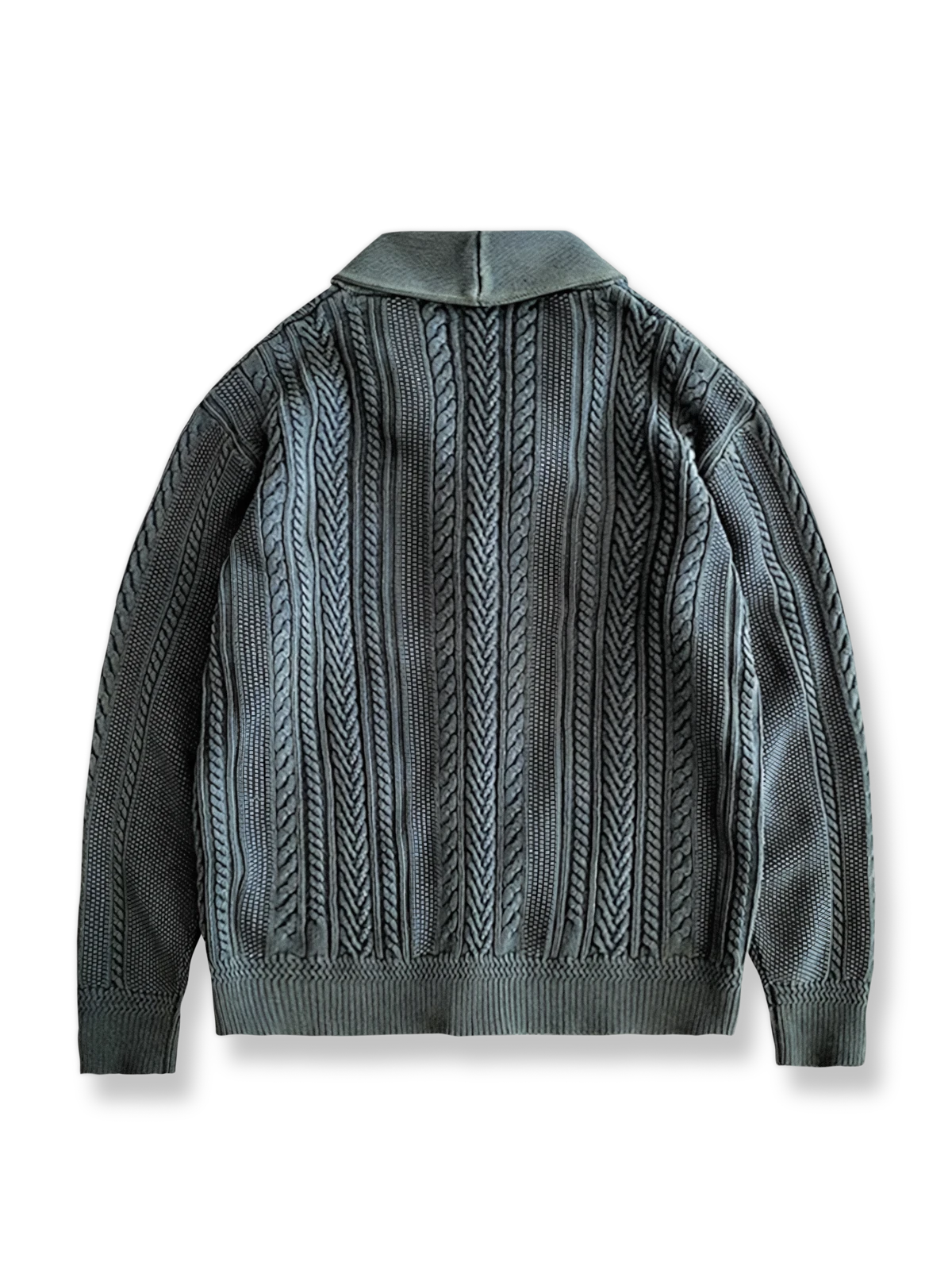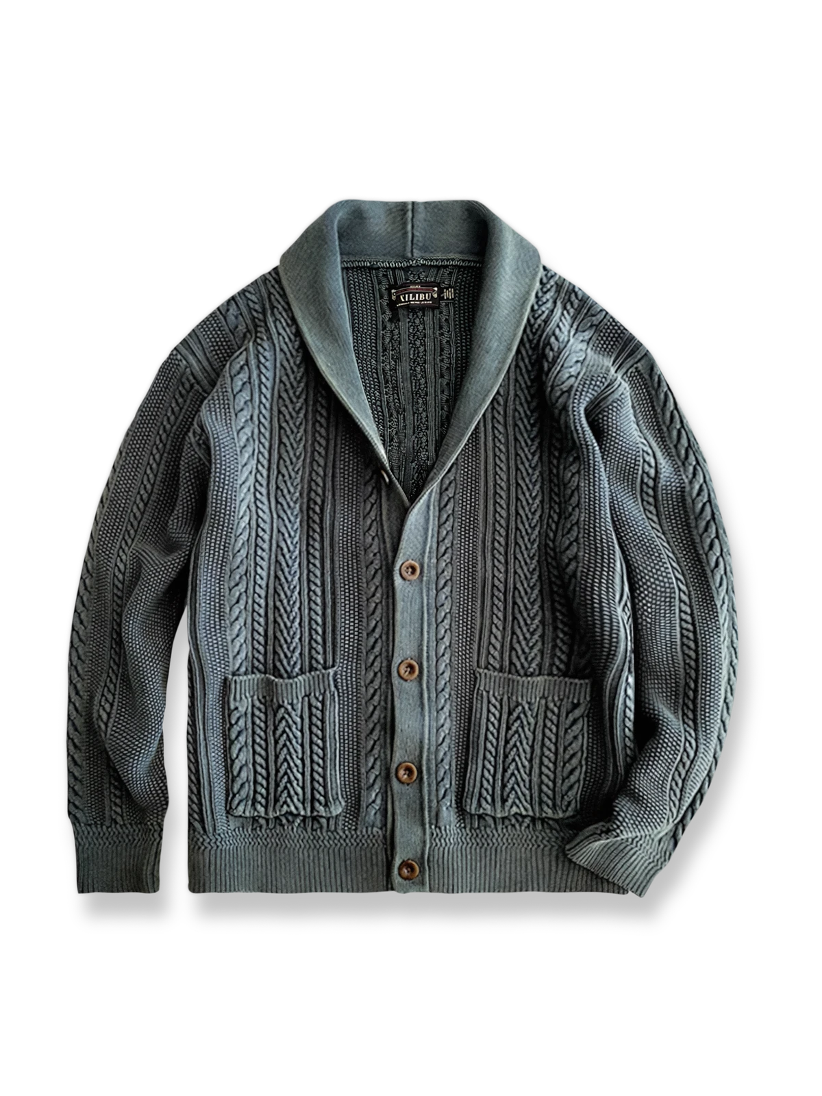 このニットカーディガンは、32番手のコットン糸を使用し、バツ染め加工で独特なストーングレーの色合いを表現しています。ヴィンテージ感のある経年変化を再現した視覚効果が特徴です。クラシックなショールカラーと精巧な木製ボタンが組み合わされ、全体の質感と品位が向上しています。ゆったりとした快適なシルエットで、春秋冬の3シーズンに適しており、ヴィンテージとモダンなデザインを兼ね備えた多機能なアイテムです。