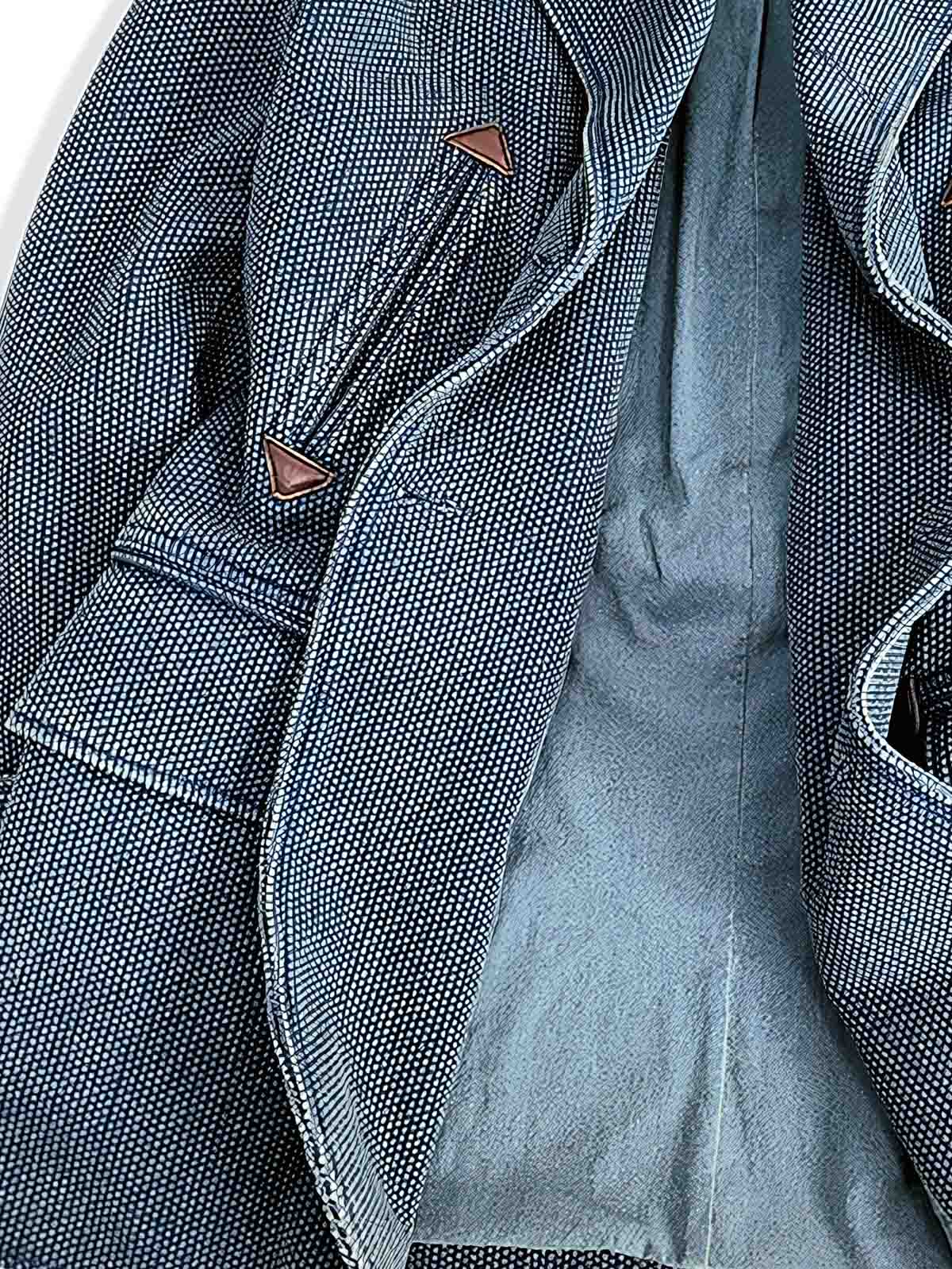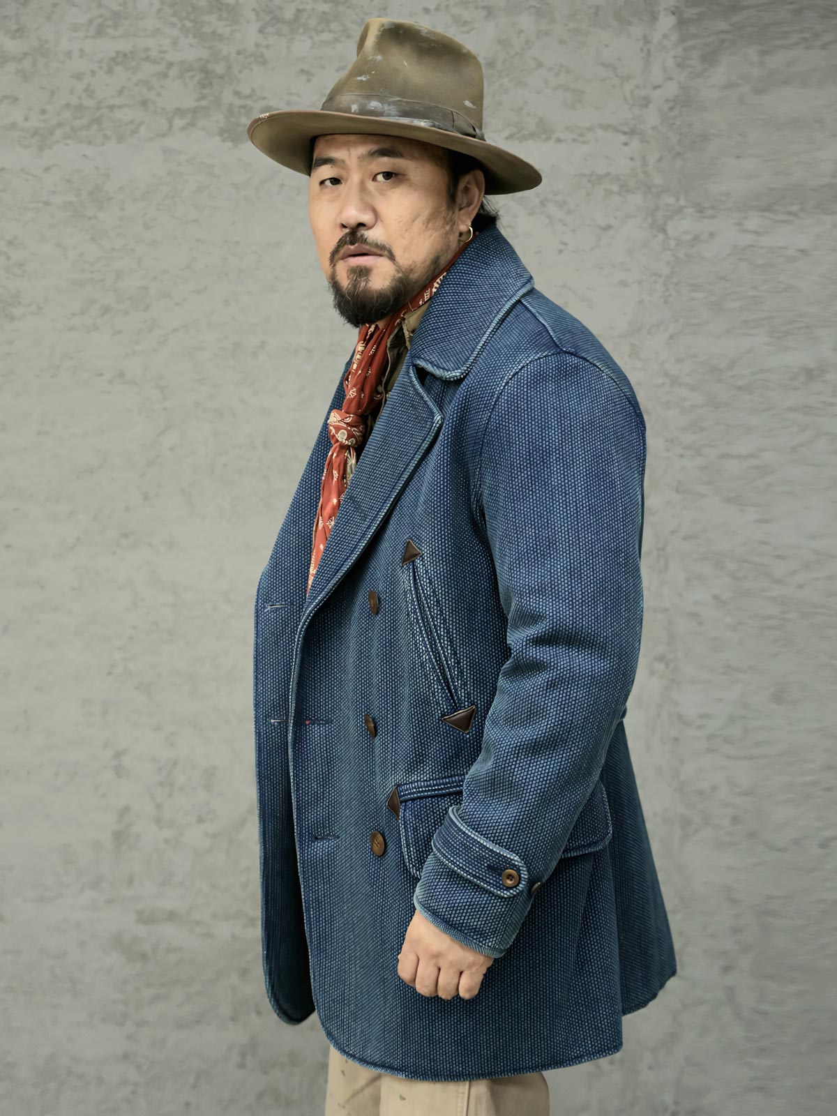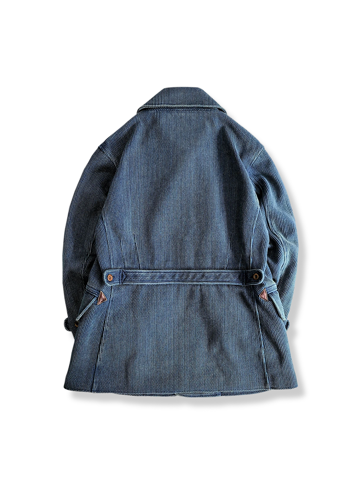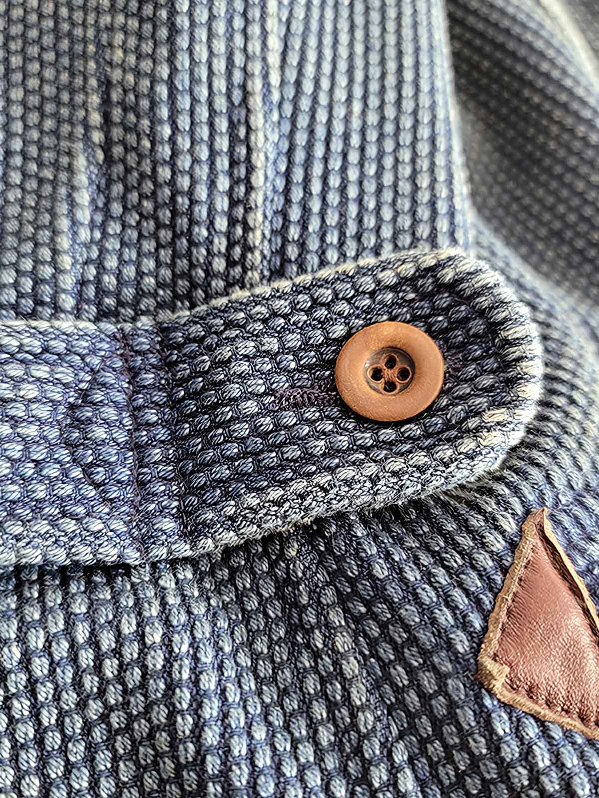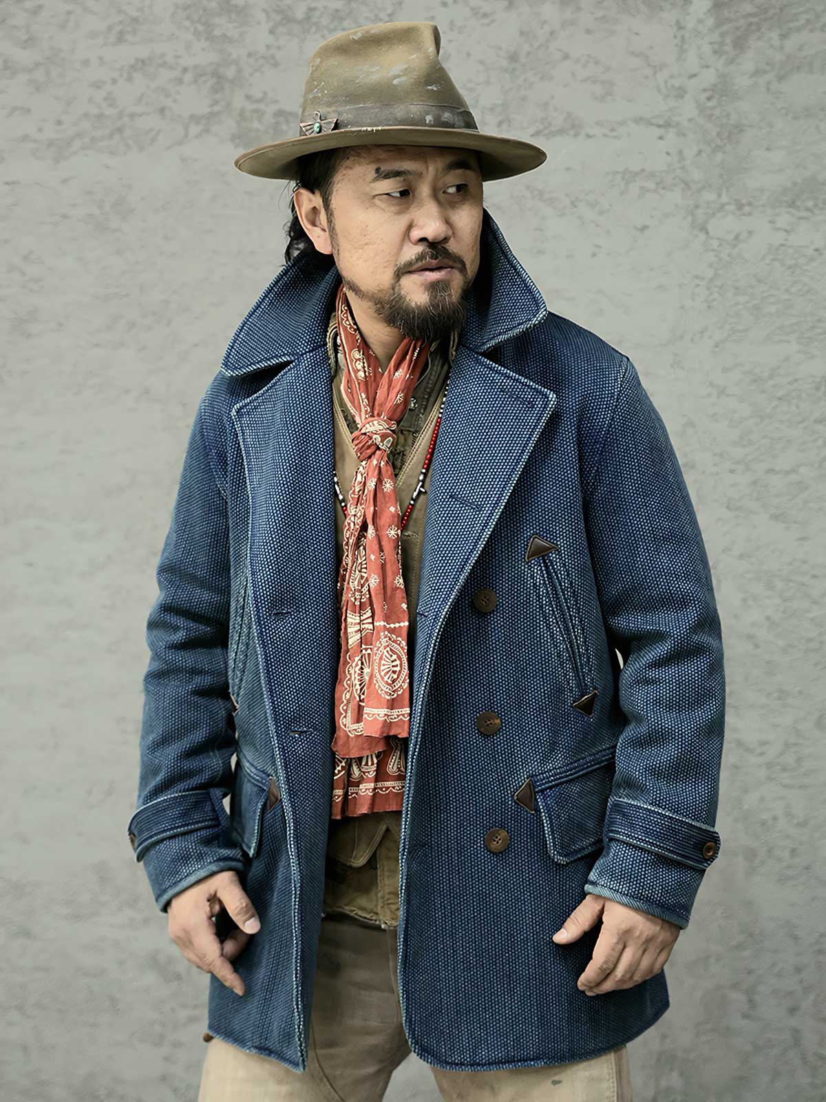 藍染は長い歴史を持つ染色技術で、日本の工芸と美学と結びついています。ダブルブレストのデザインは19世紀のヨーロッパ海軍のユニフォームから来ており、そのフォーマルで権威ある外観が好まれています。
